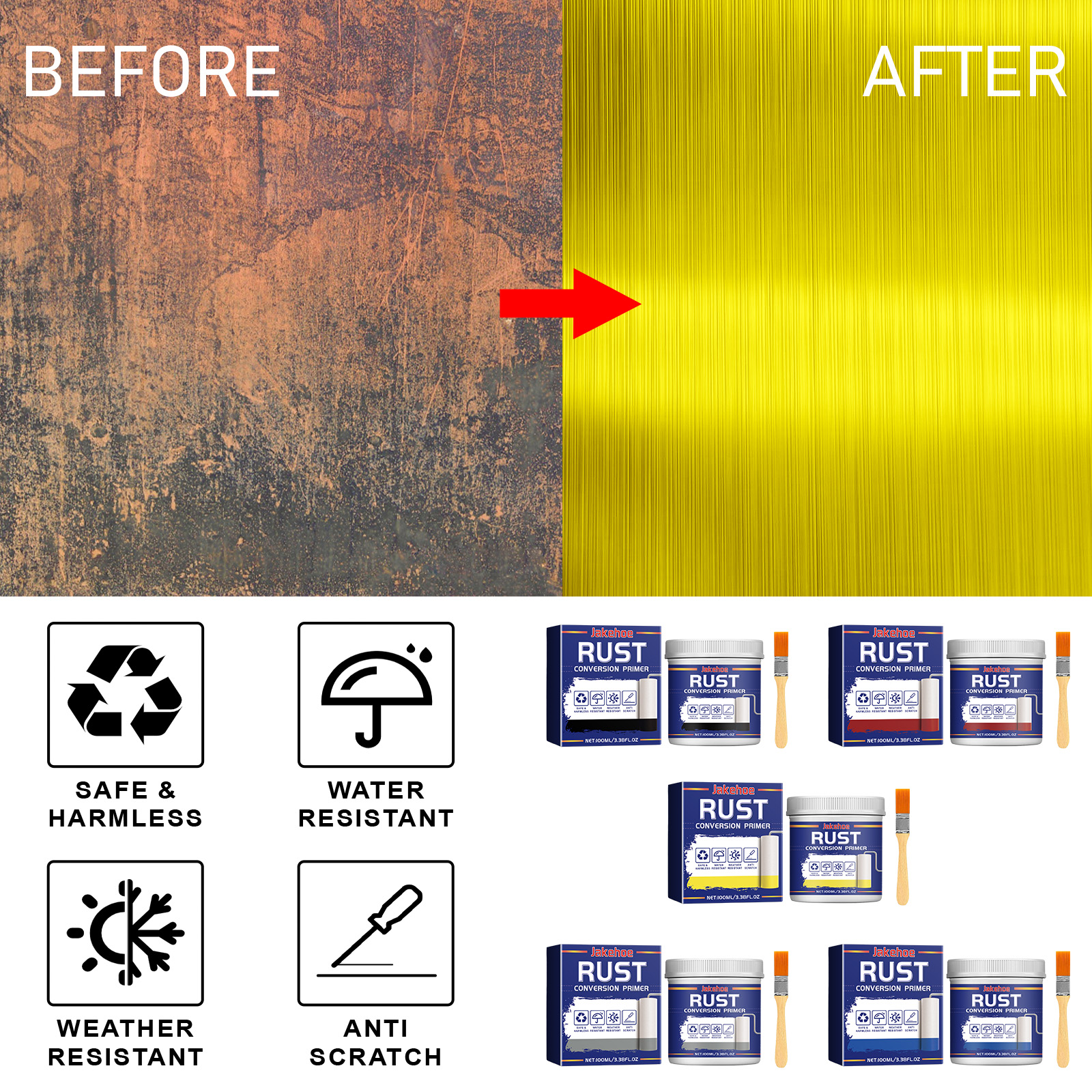 Jakehoe Rust Conversion Primer, Iron Door Metal Gear Bracket Rust Stair Handrail Corrosion Remover