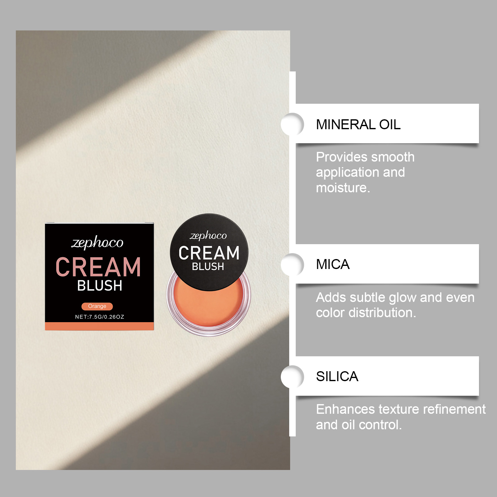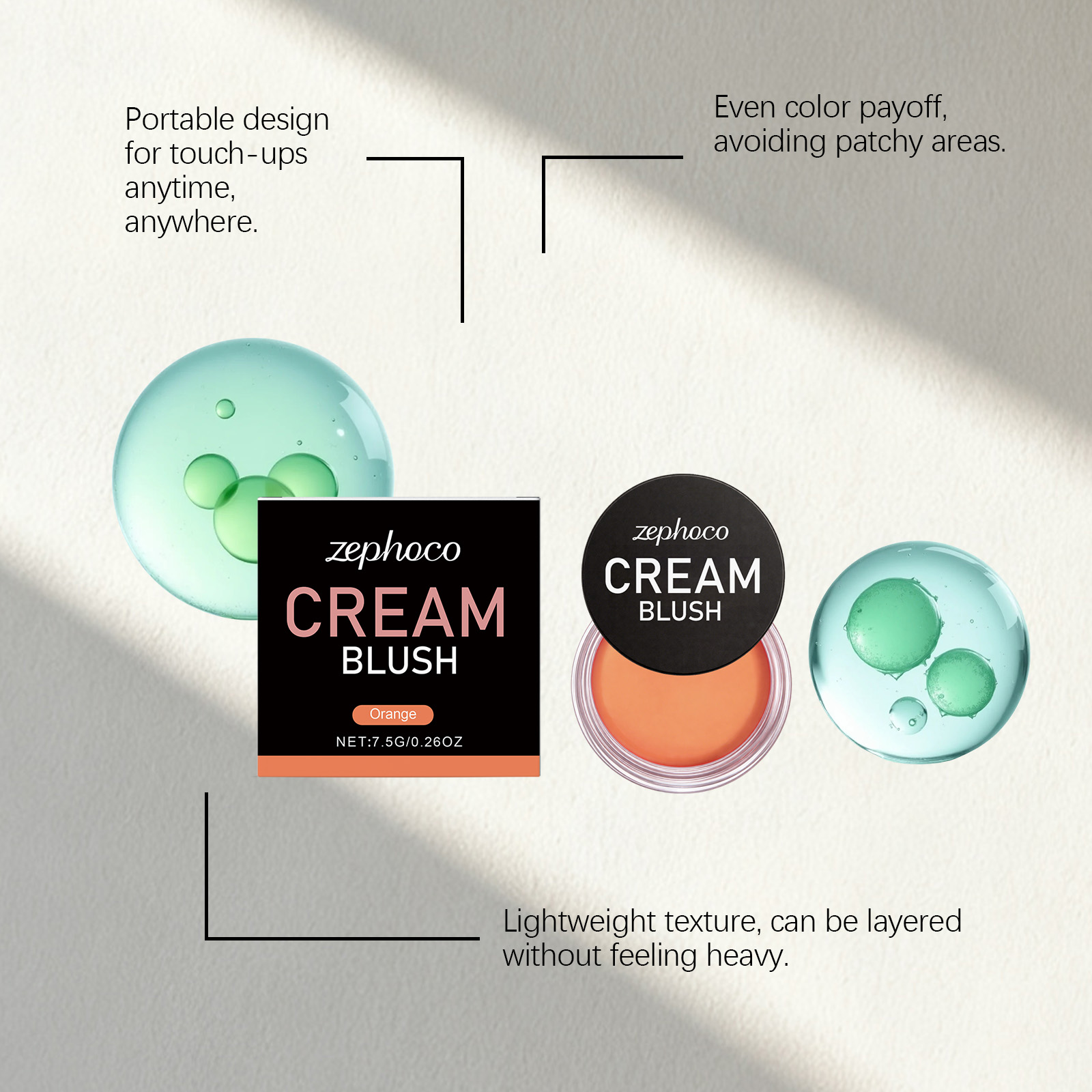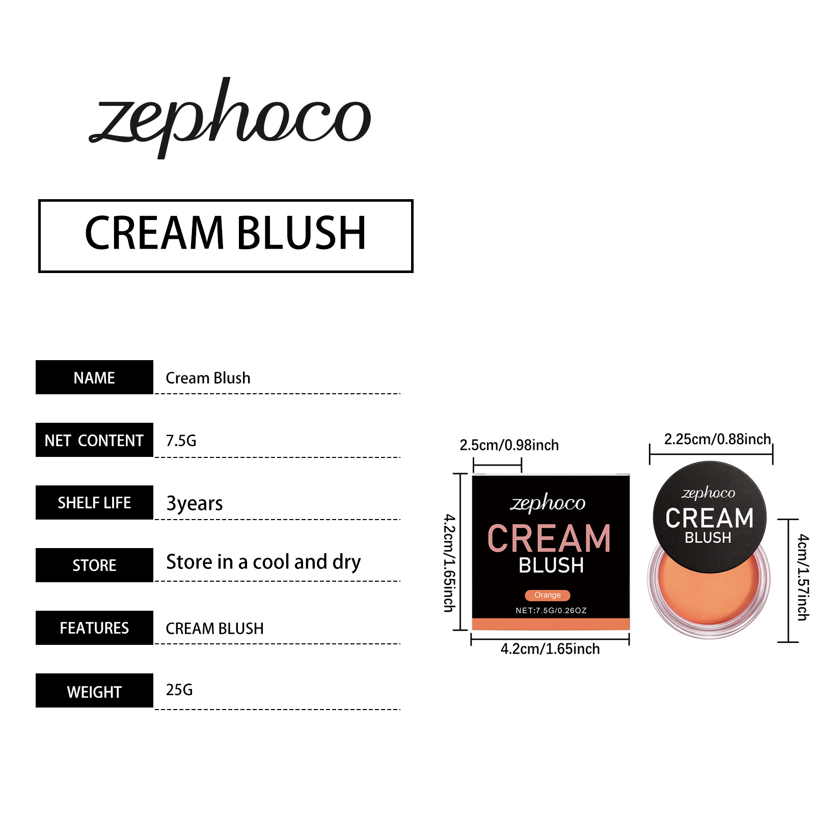 zephoco Orange Silky Moisturizing Blush Makes The Face Naturally Rosy, With A Fine, Smooth And Lustrous Glow