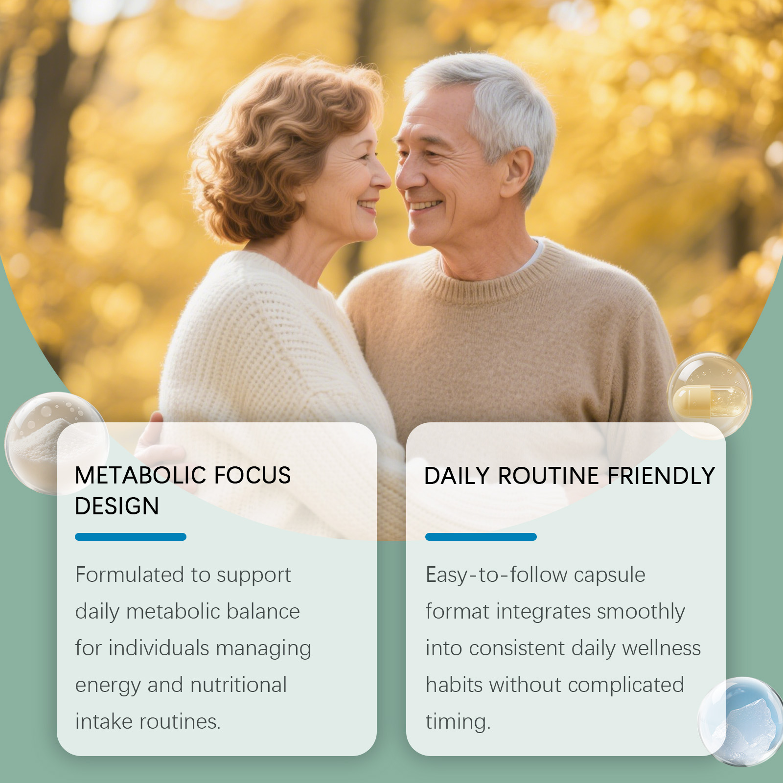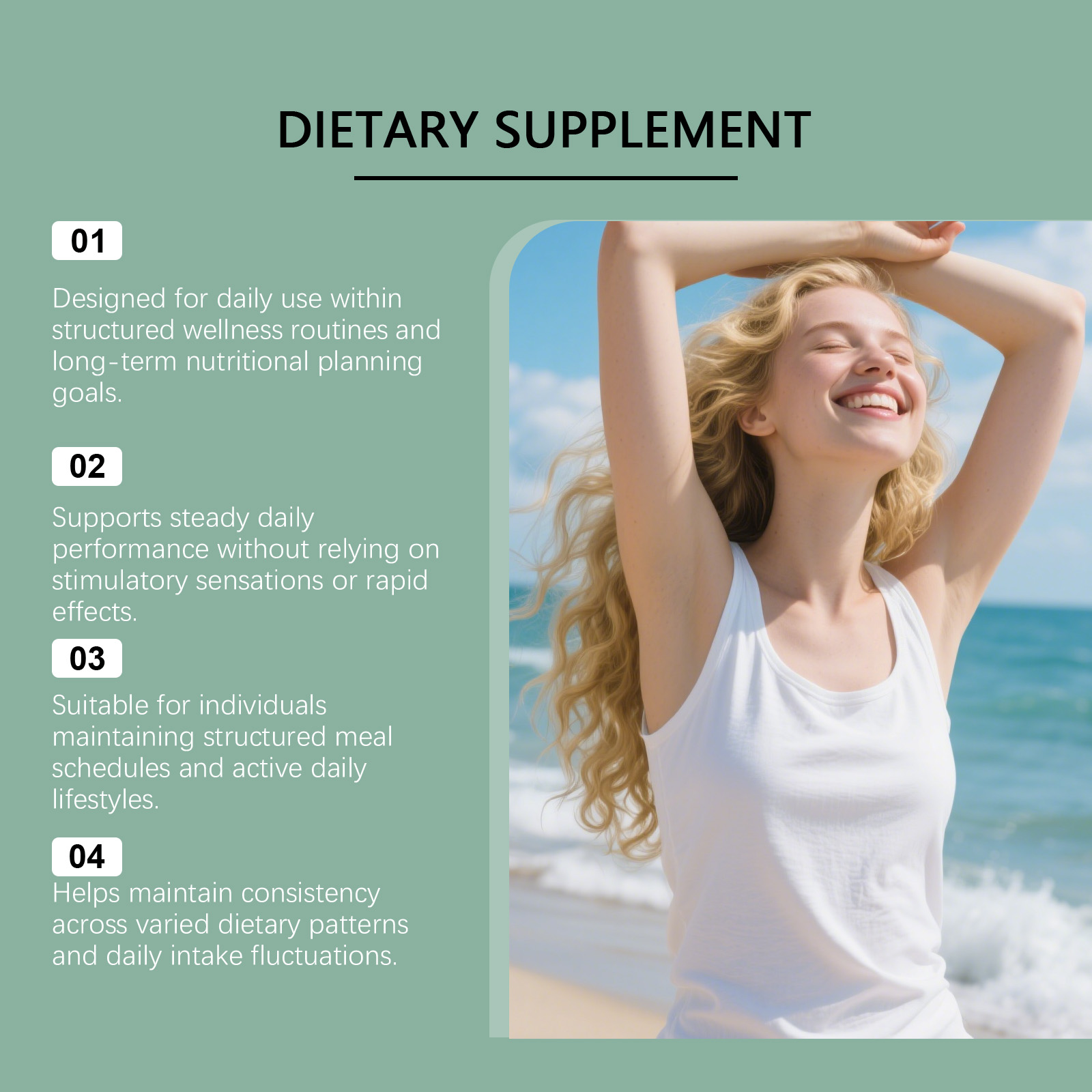 我们的小檗碱胶囊,由维生素B6(以盐酸吡哆醇的形式)、小檗碱精心调配而成。专为管理能量和营养摄入习惯的个体设计,以支持日常代谢平衡设计。使用方法极为便捷:每天服用2粒胶囊。并且它可以无缝融入日常健康习惯,无需复杂的时间安排。