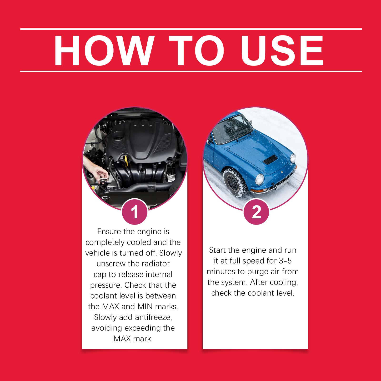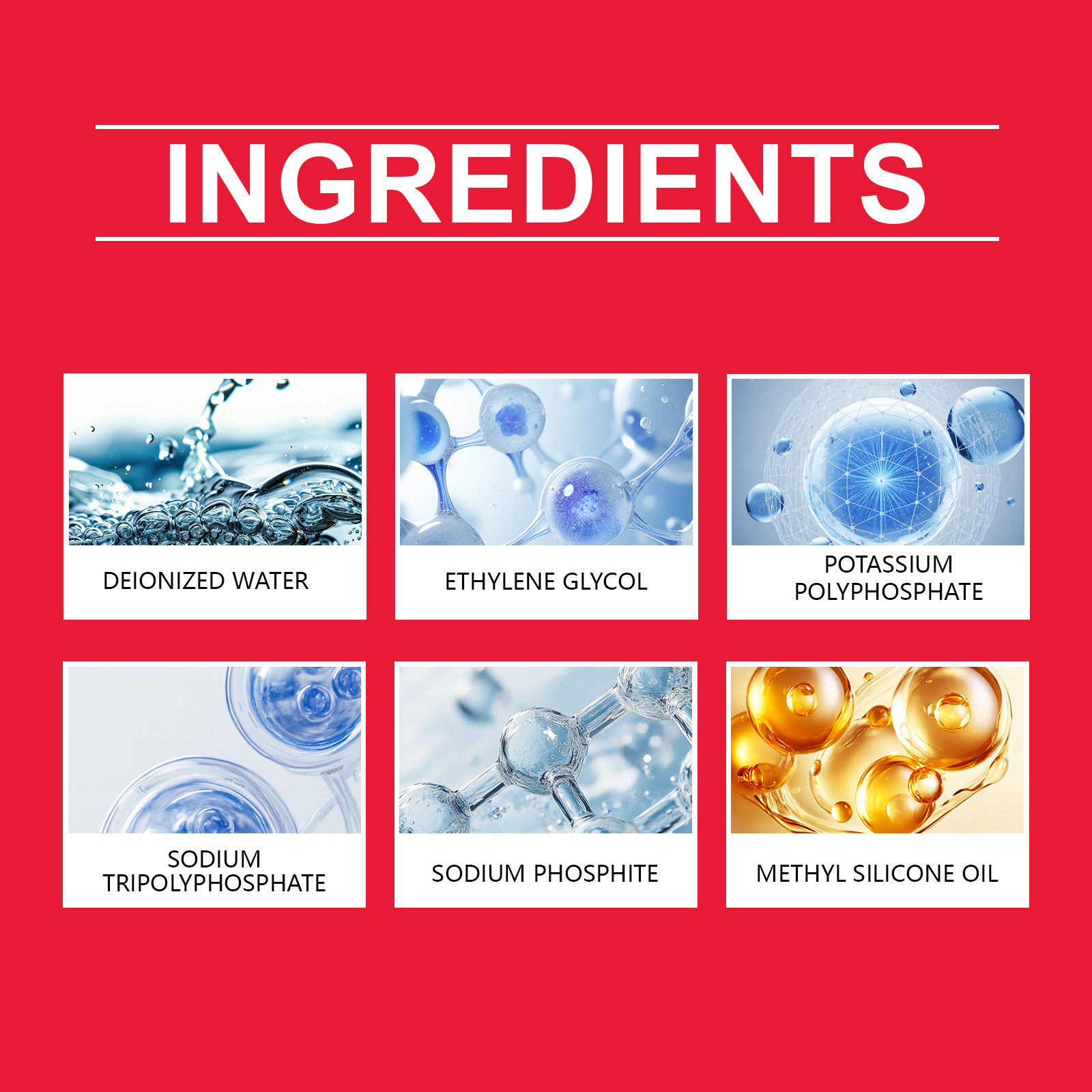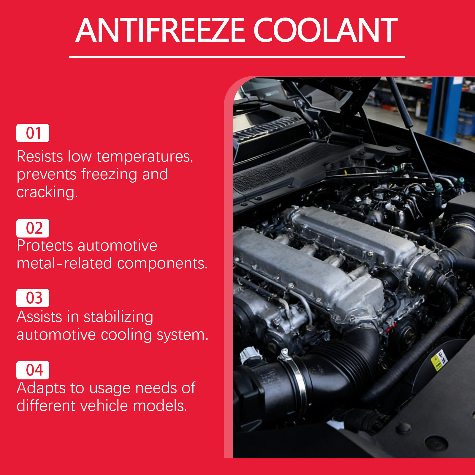我们的防冻液,由乙二醇、去离子水精心调配而成。专为保护汽车金属相关部件设计。使用方法极为便捷:确保发动机已完全冷却且车辆已关闭。缓慢旋开散热器盖以释放内部压力。检查冷却液液位是否处于“MAX”和MIN”标记之间。缓慢添加防冻液,避免超过“MAX”标记。启动发动机并以全速运行3至5分钟,以排出系统中的空气。冷却后检查冷却液位。并且它可以保护金属部件并减少磨损。