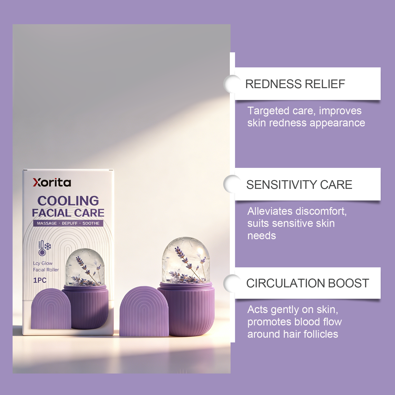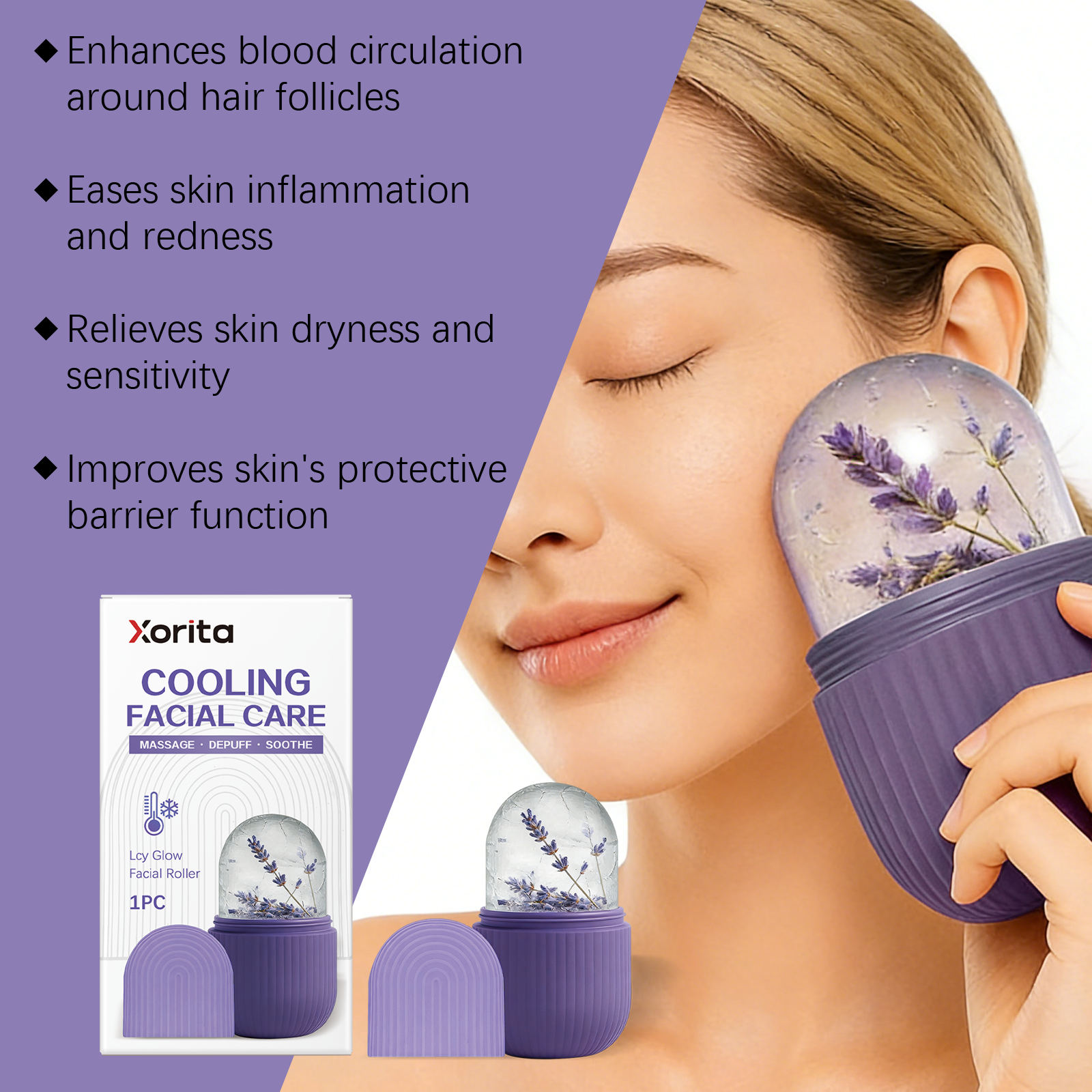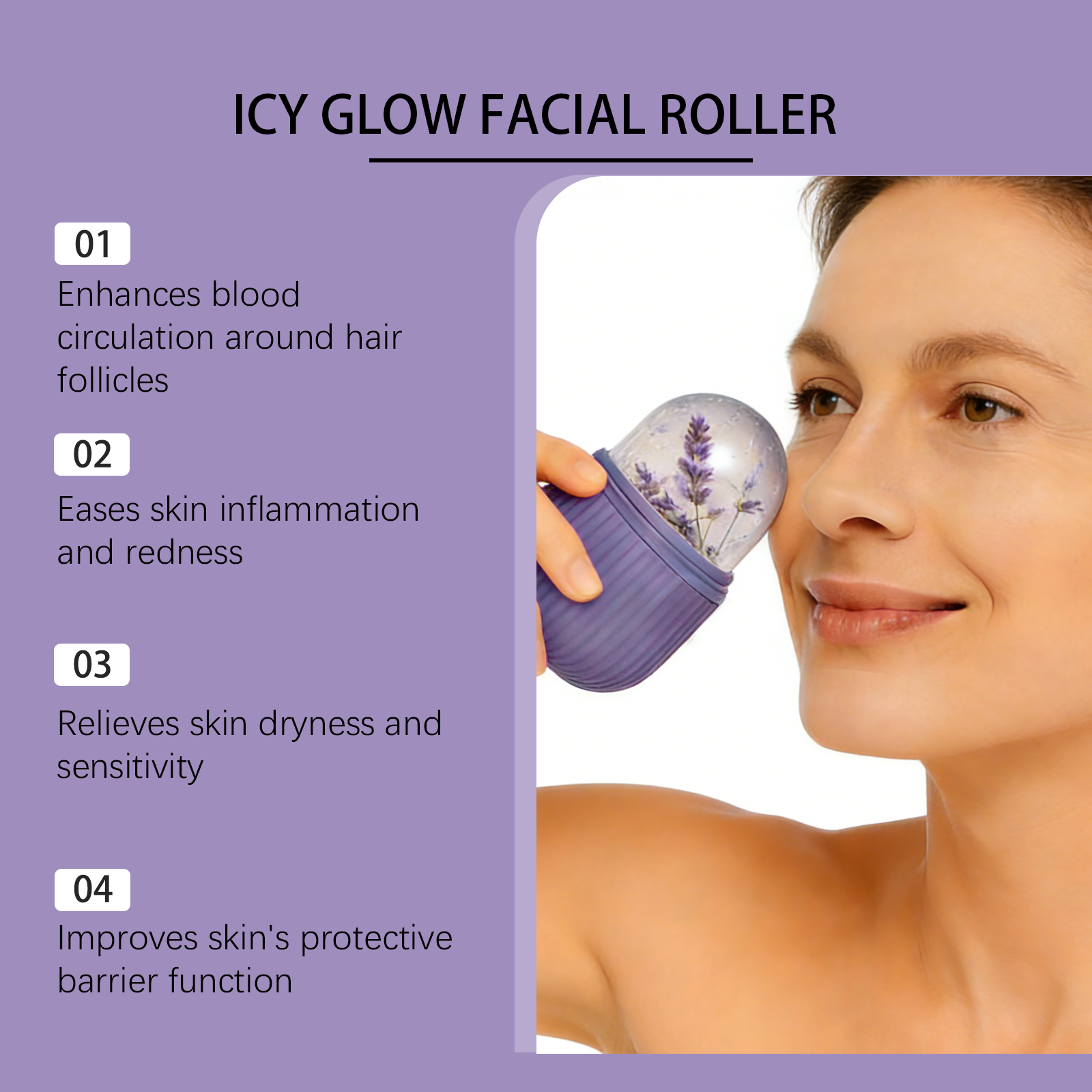 我们的冰凉面部滚轮,由硅胶精心制作而成。专为增强毛囊周围的血液循环,缓解皮肤炎症和红肿设计。使用方法极为便捷:1. 向硅胶模具注水(预留膨胀空间)。2. 放入冰箱冷冻 2-4 小时至结冰。3. 在洁净面部轻柔滚动 5-10 分钟。4. 使用后清洁模具与底座,阴凉处存放。并且它可以缓解皮肤干燥和敏感性,改善皮肤的保护屏障功能。