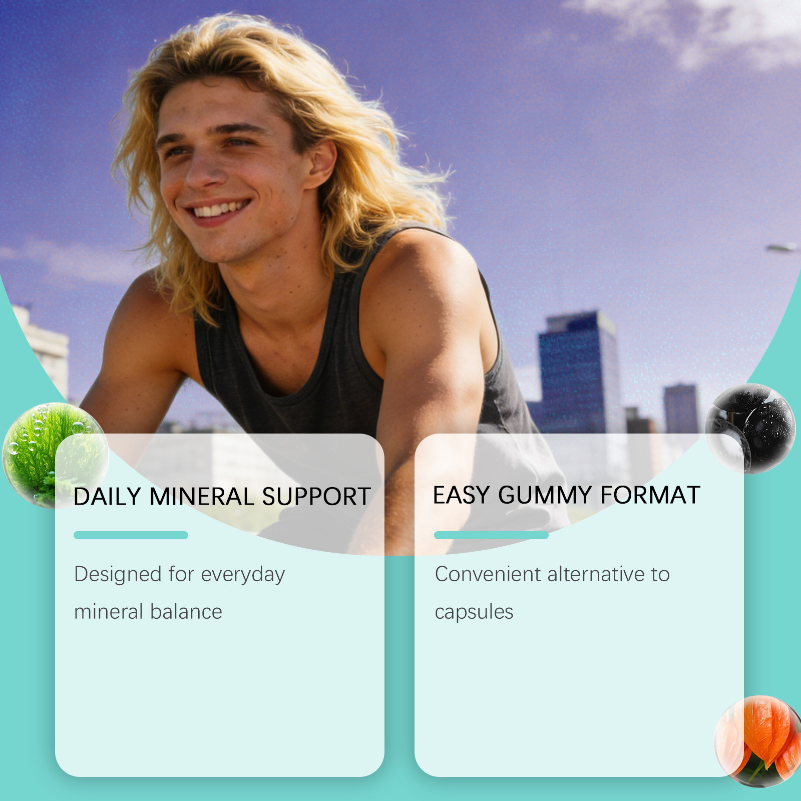 我们的矿物复合软糖,由海藻、接骨木果精心调配而成。专为日常矿物质平衡设计。使用方法极为便捷:每天服用2粒软糖,咀嚼食用。并且它可以符合现代生活方式习惯。