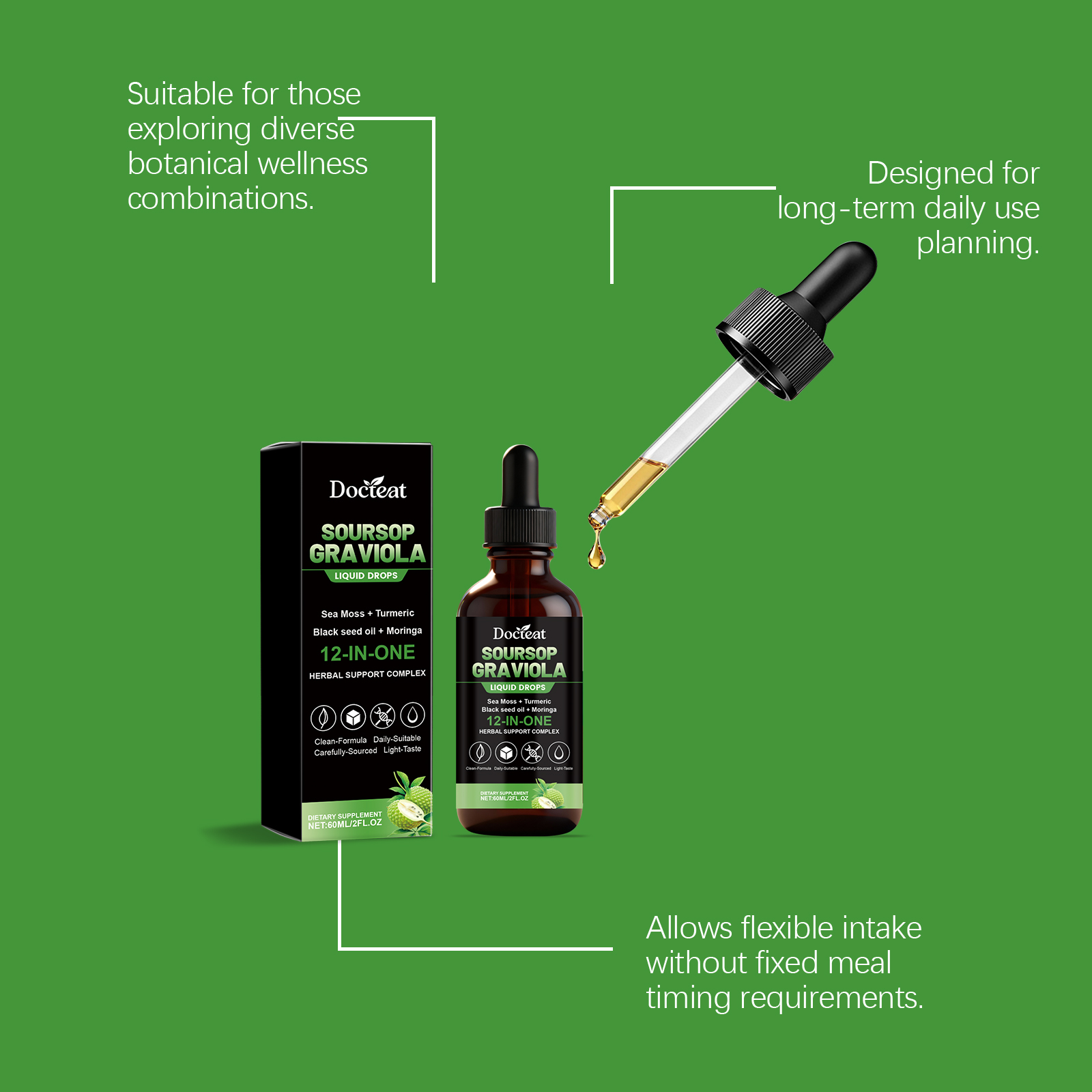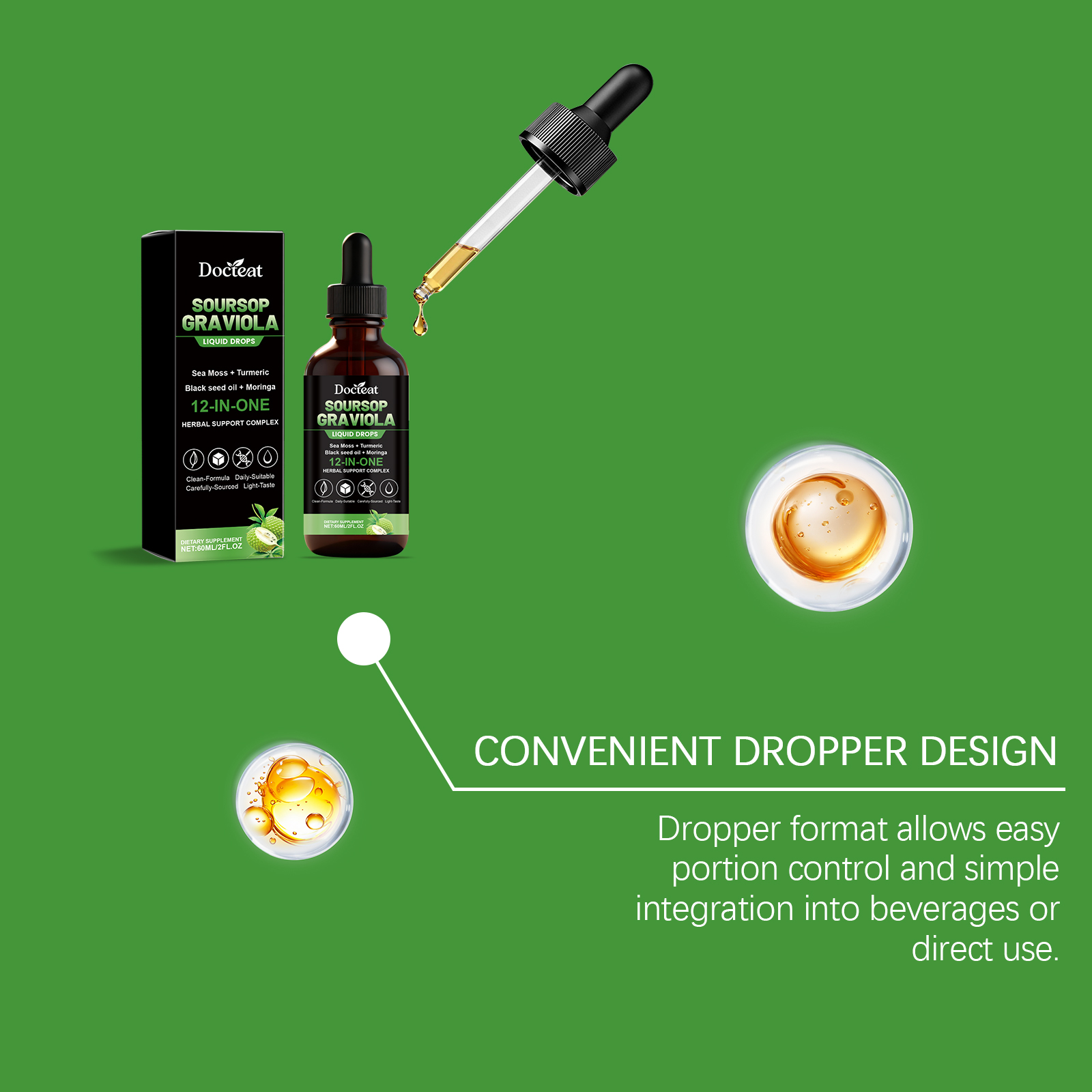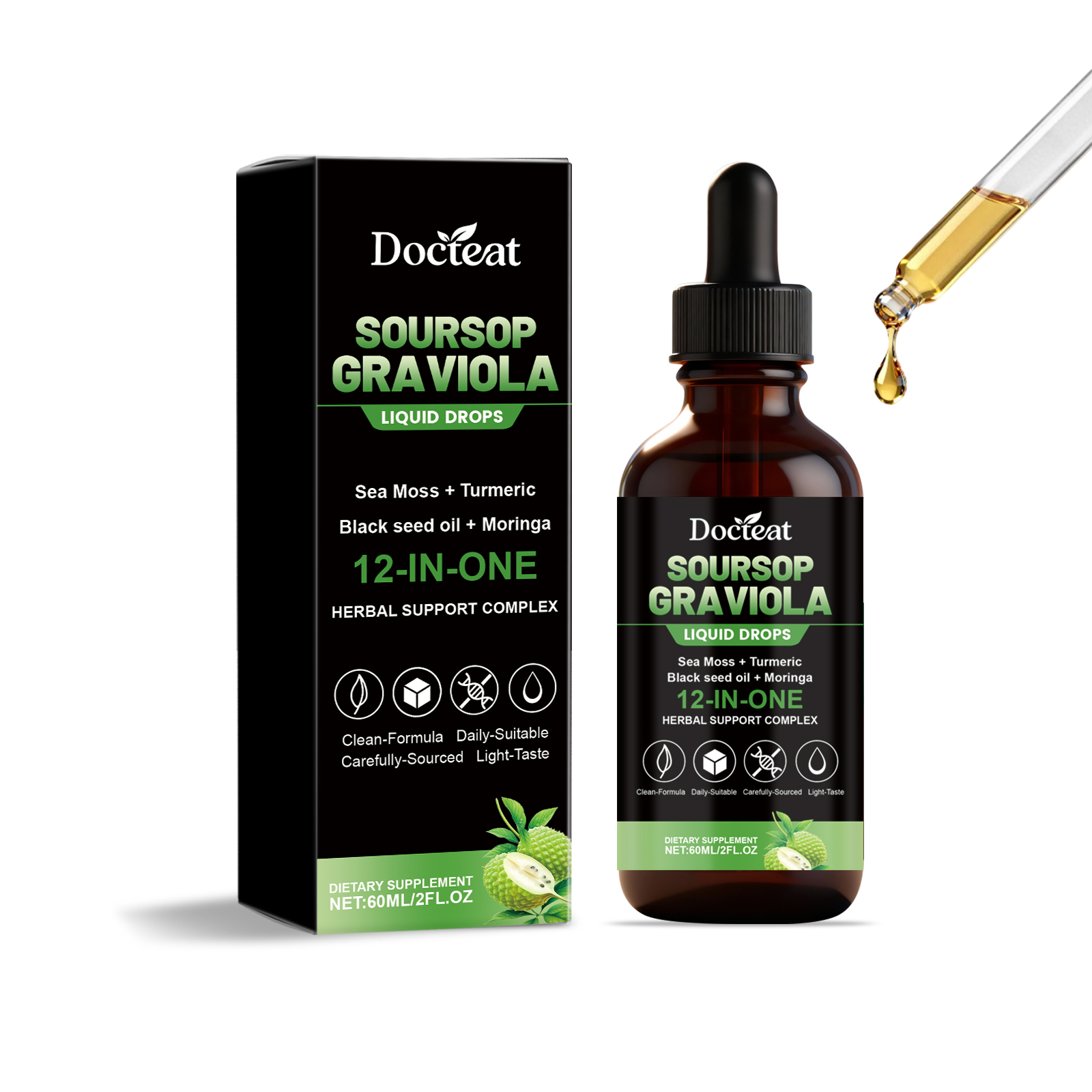 Docteat 12-In-1 Bitter Fruit And Sugar Apple Drops, A Mild Daily Dietary Supplement For Body Care