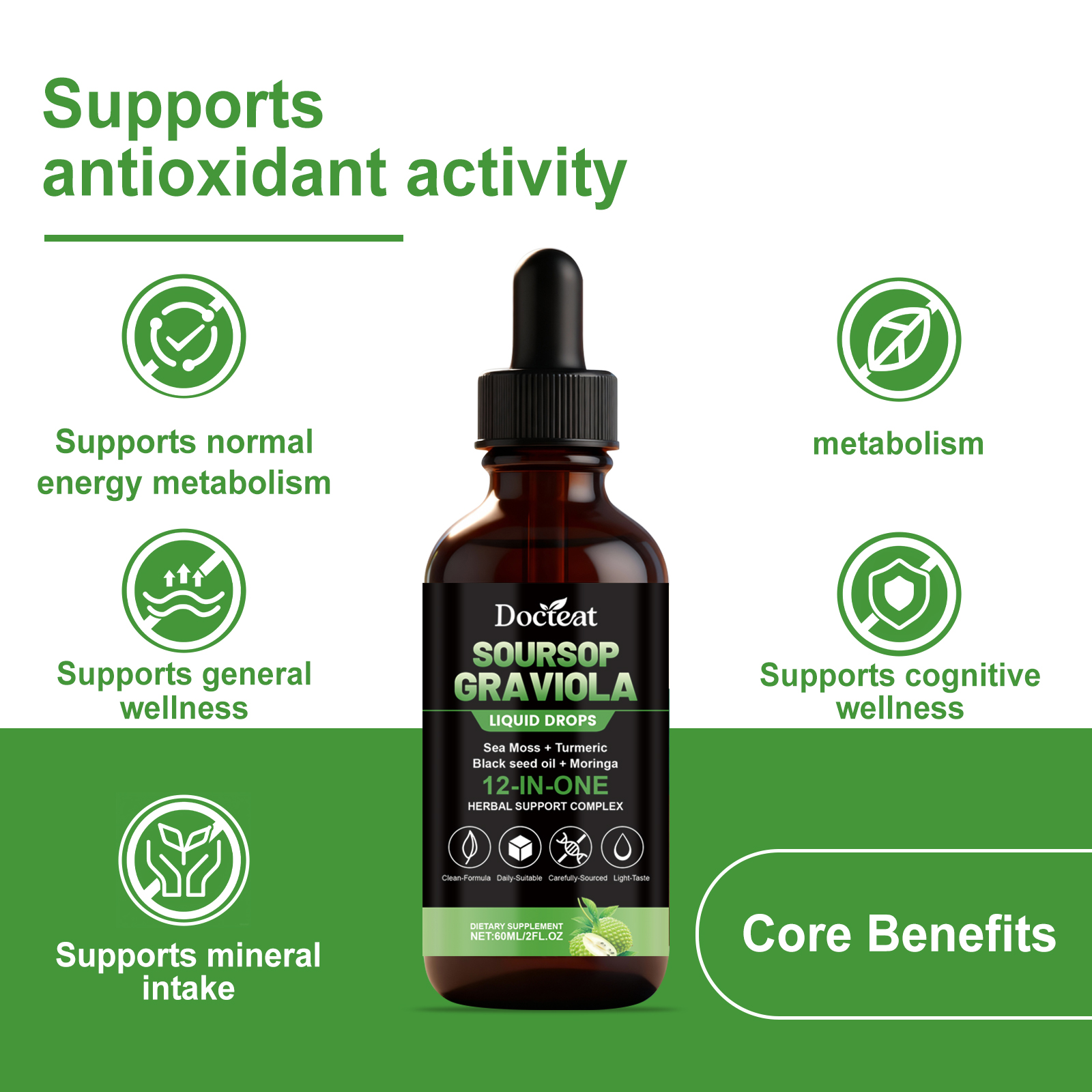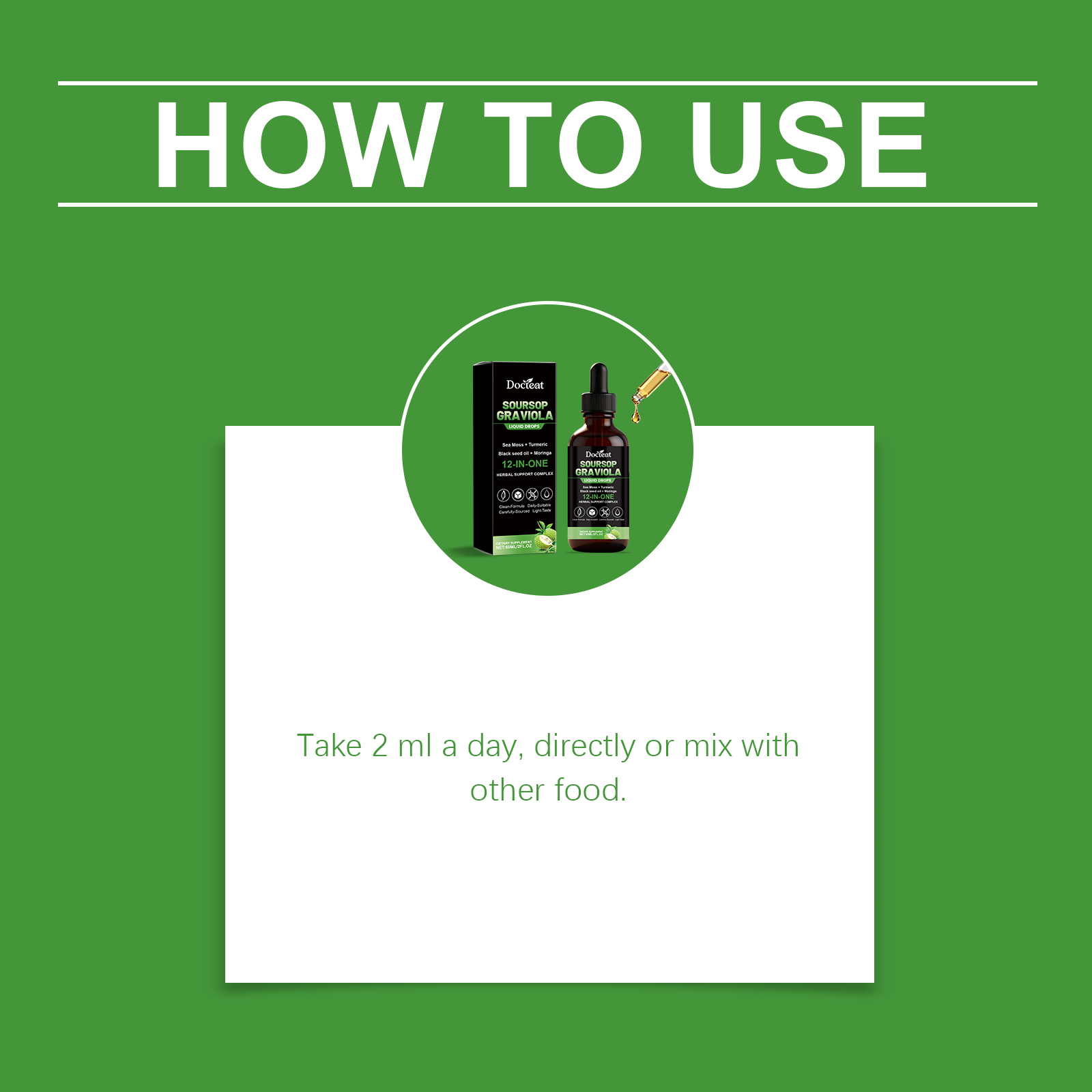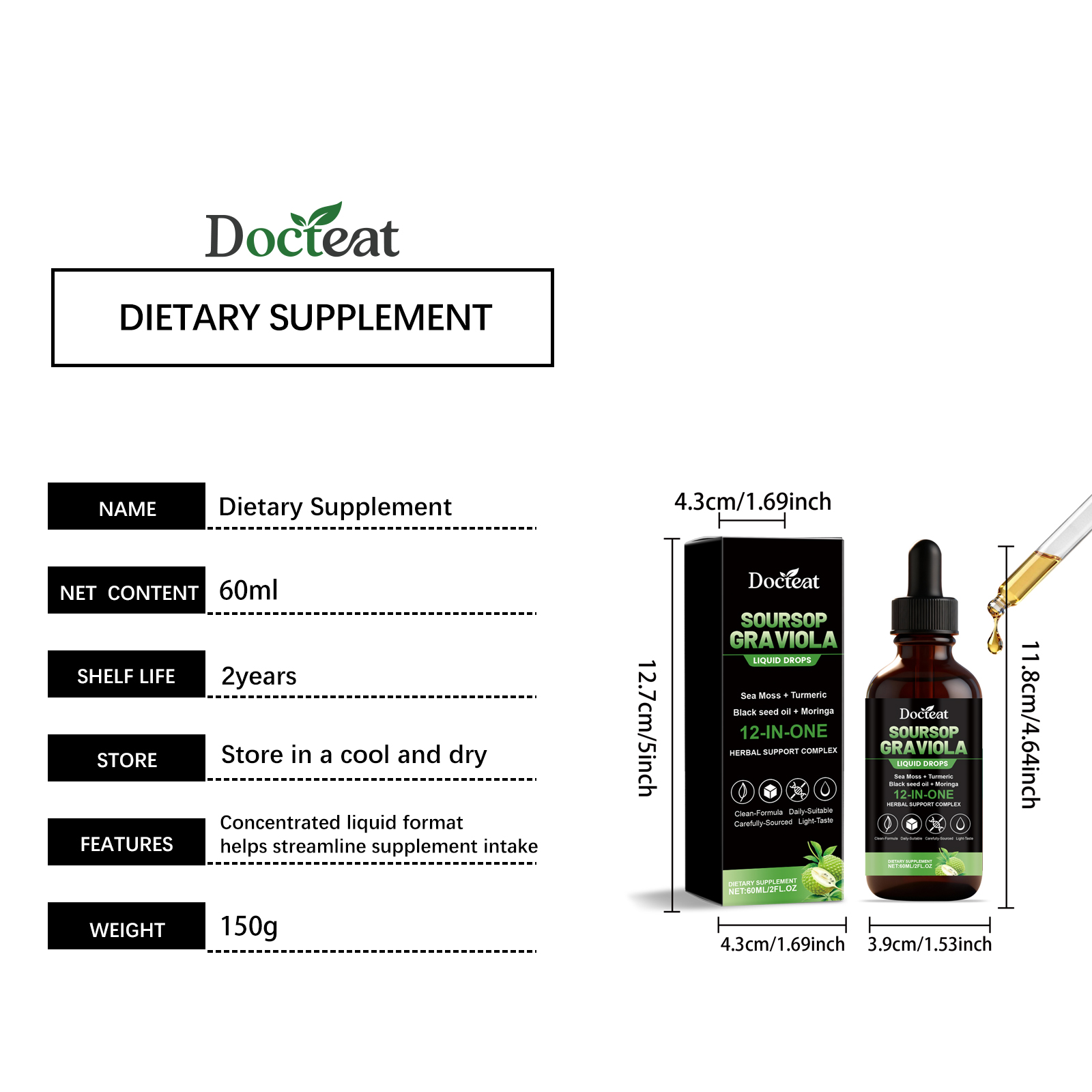 Docteat 12-In-1 Bitter Fruit And Sugar Apple Drops, A Mild Daily Dietary Supplement For Body Care