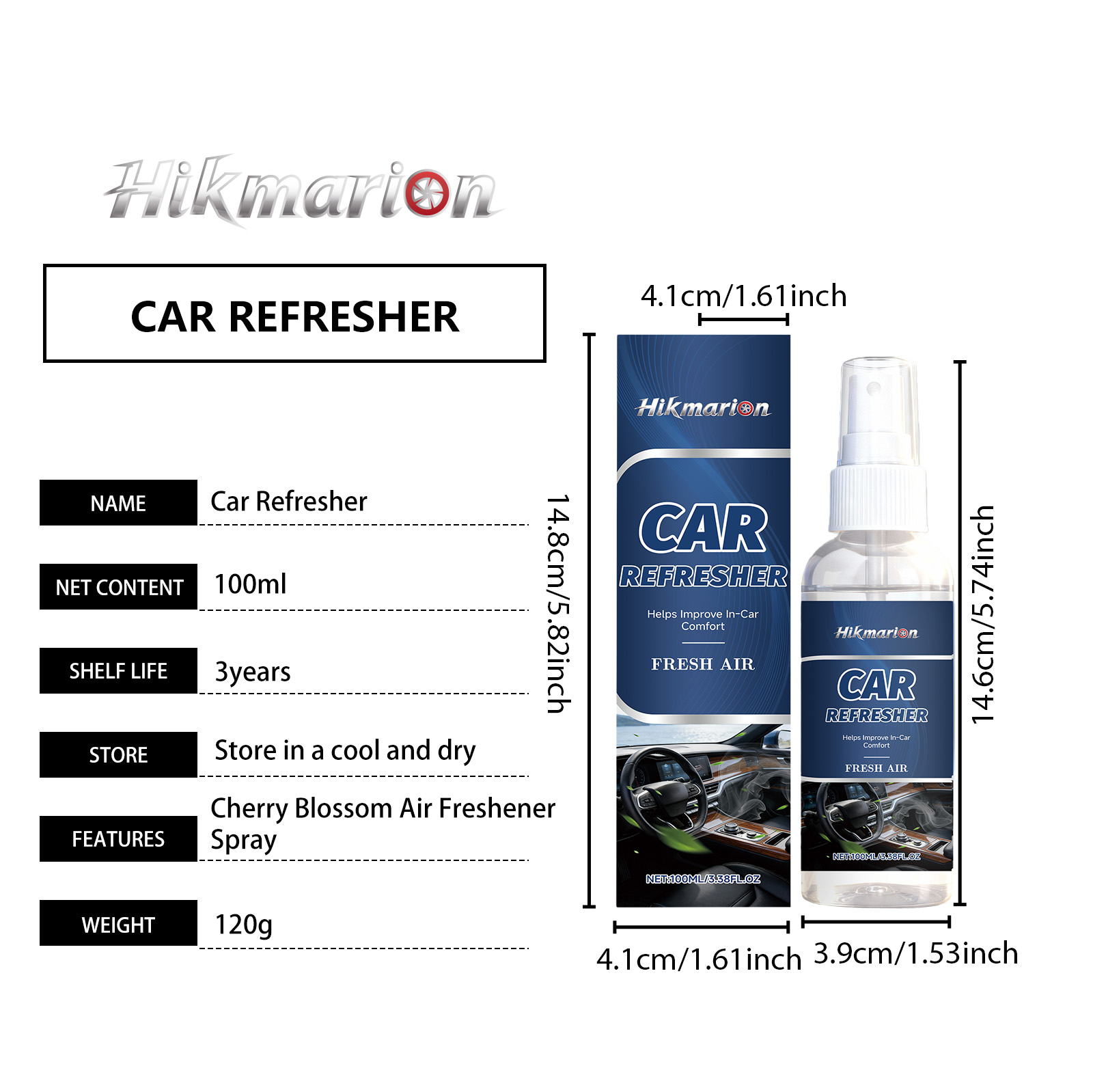 Hikmarion Cherry Blossom-Scented Air Freshener Spray Is A Portable And Long-Lasting Fragrance Freshener Suitable For Cars And Homes