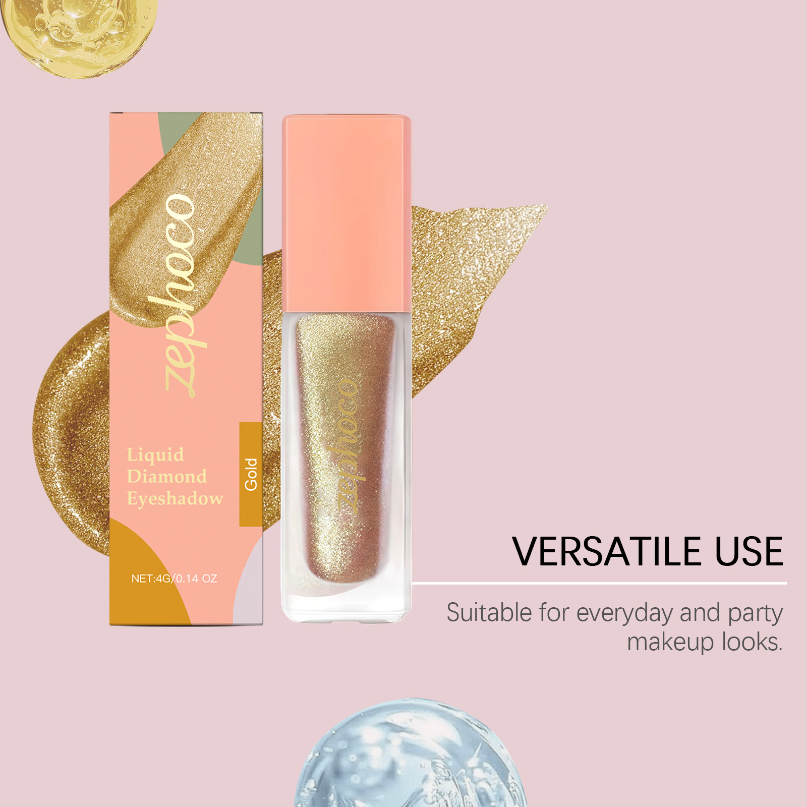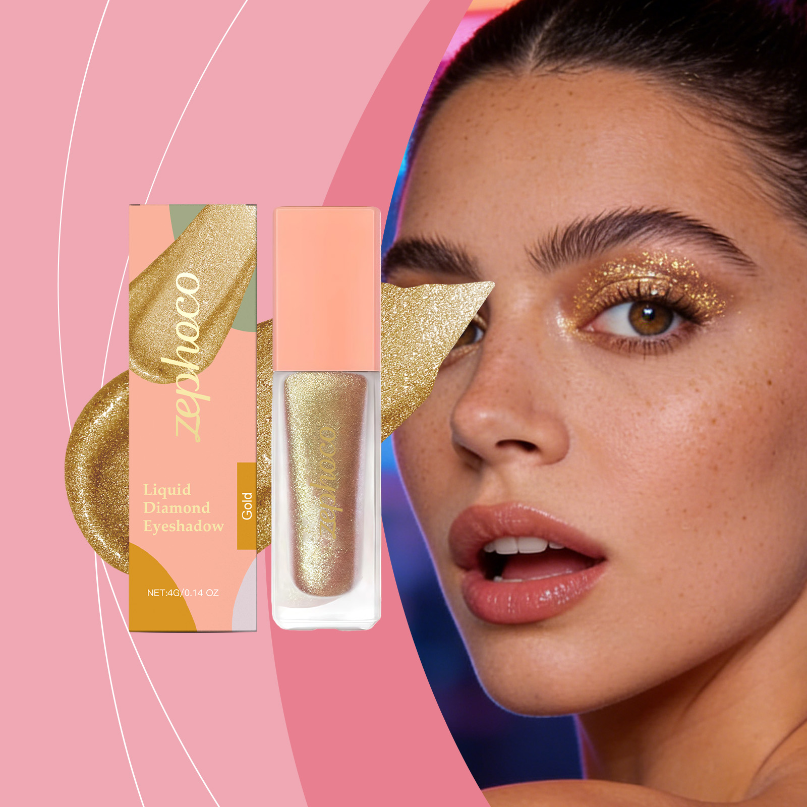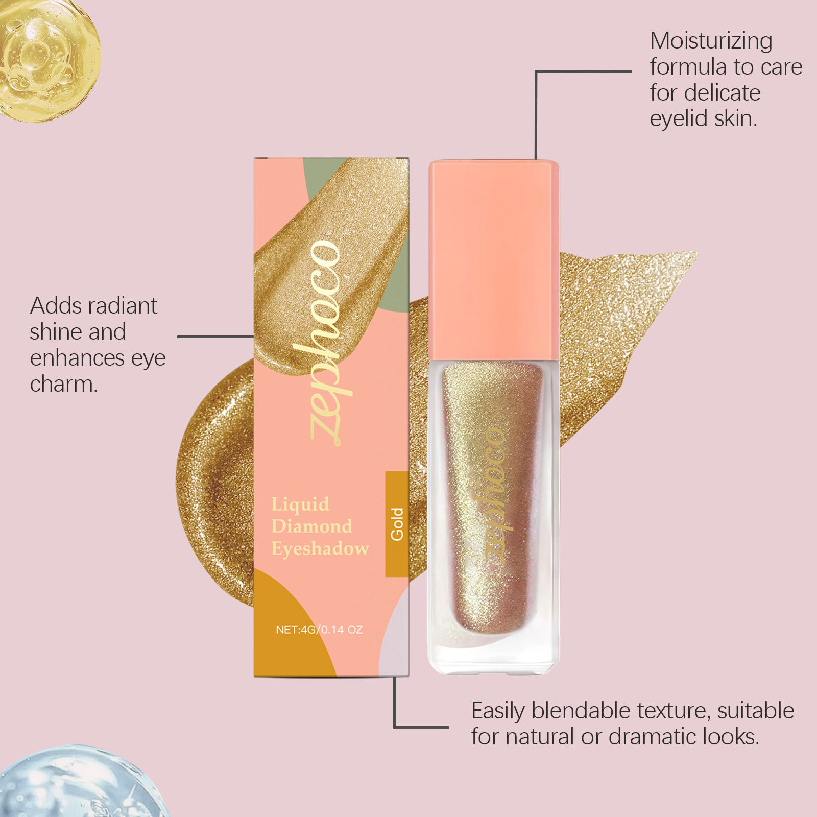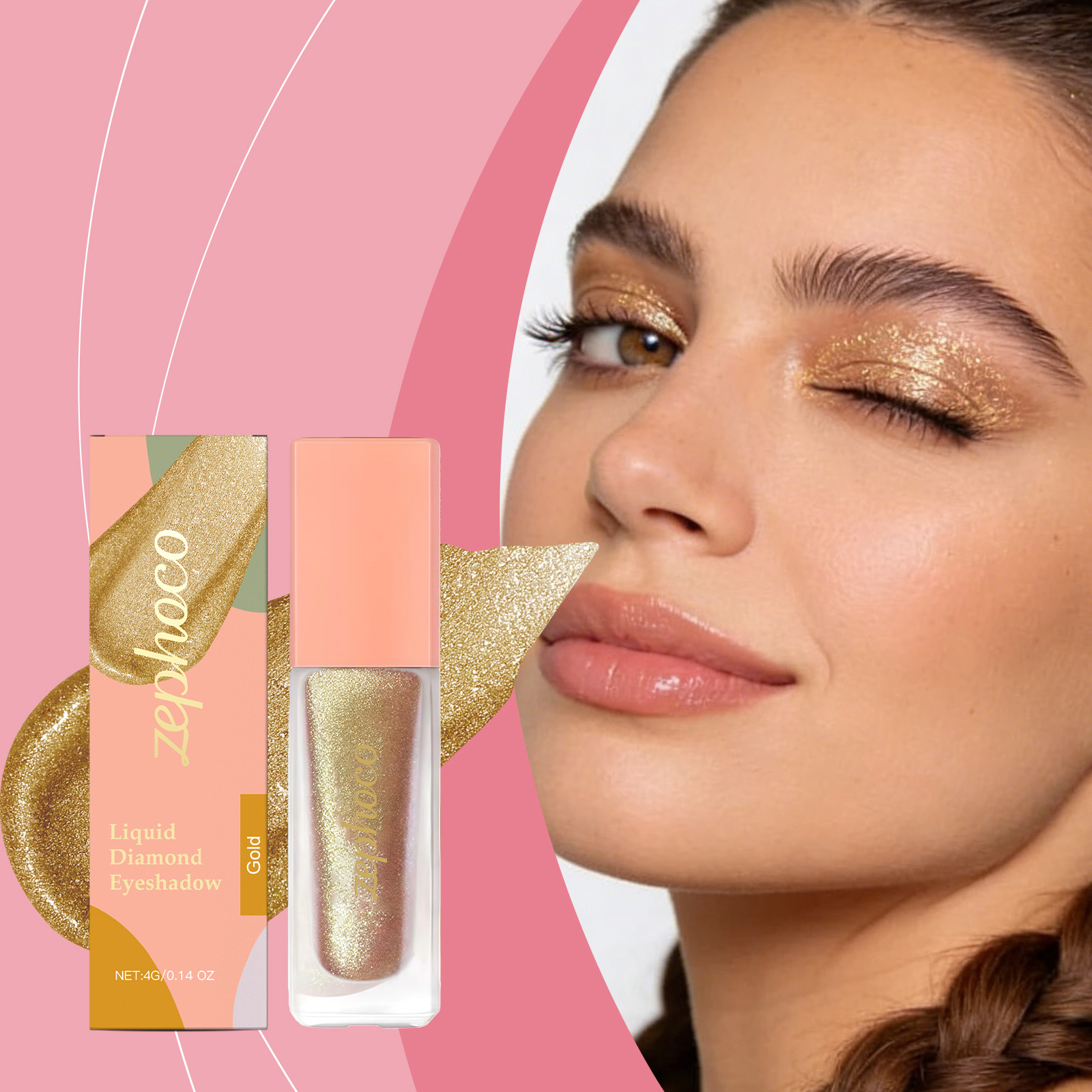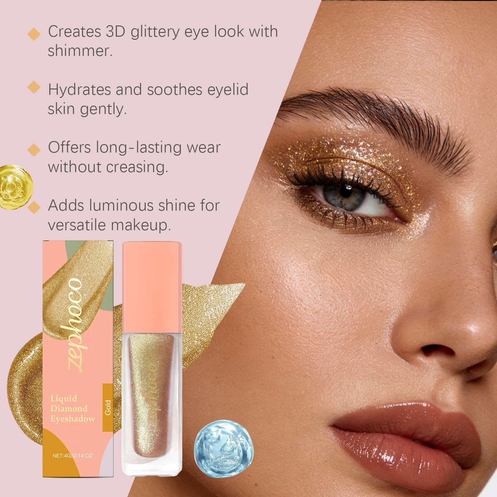zephoco Diamond Sparkling Eyeshadow (Gold) Delicate, Bright, Natural Color - Creates A Sparkling Eye Makeup Effect
