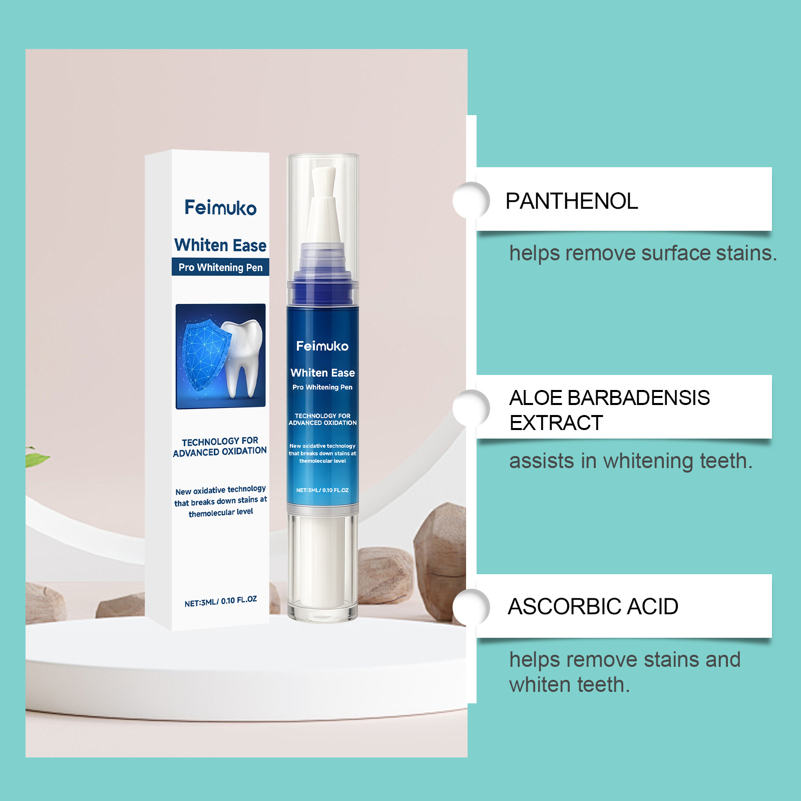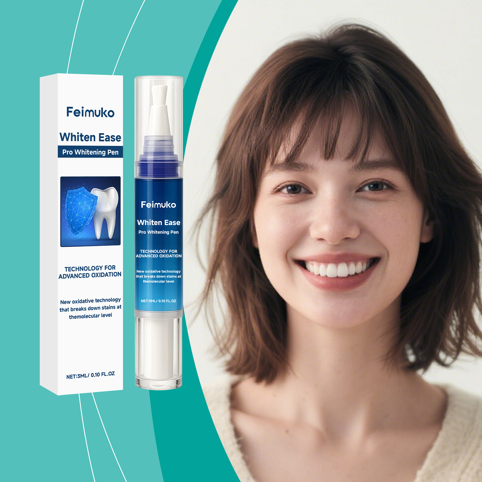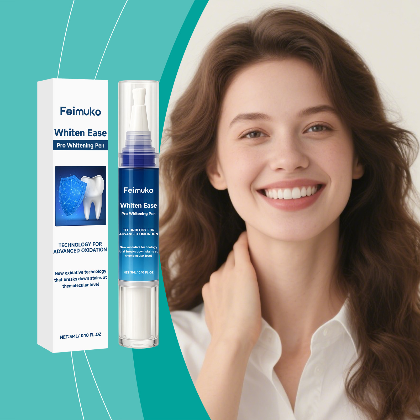 我们的牙齿护理笔,由库拉索芦荟提取物、抗坏血酸(维生素C)精心调配而成。专为即时美白效果设计。使用方法极为便捷:首先,确保你的牙齿清洁且干燥。2.打开笔帽,顺时针旋转底部以挤出适量产品,然后轻轻将薄层涂抹于每颗牙齿上,确保均匀覆盖。并且采用笔形设计,便于携带,随时随地使用。