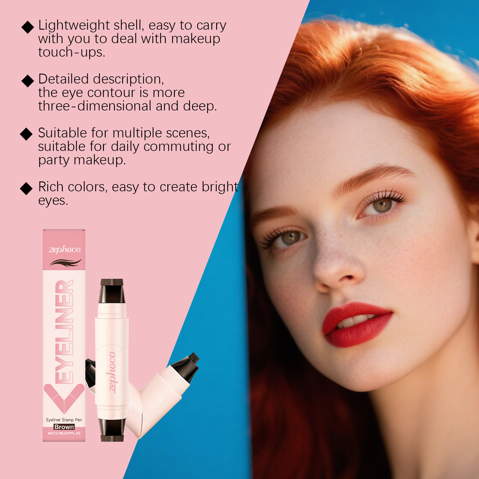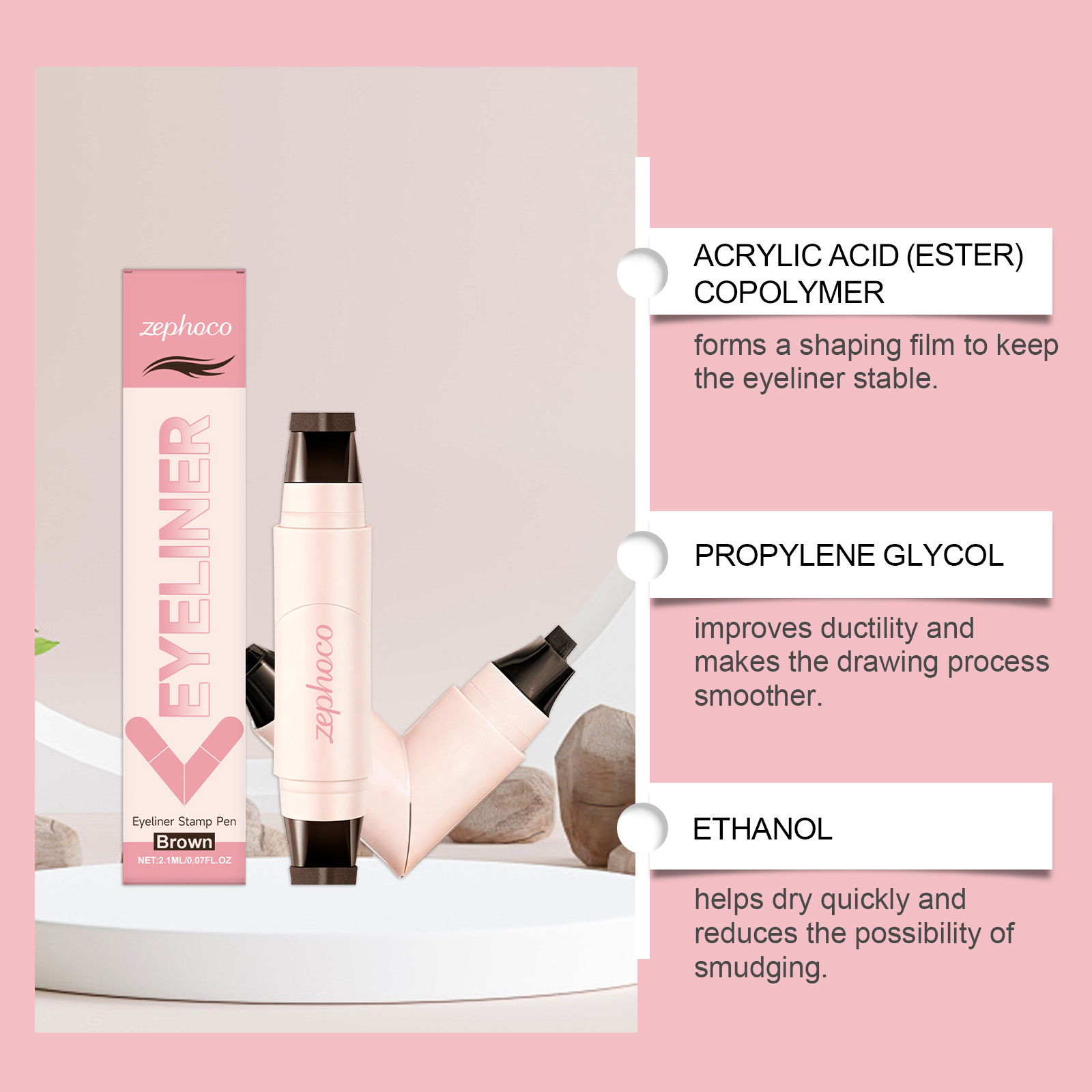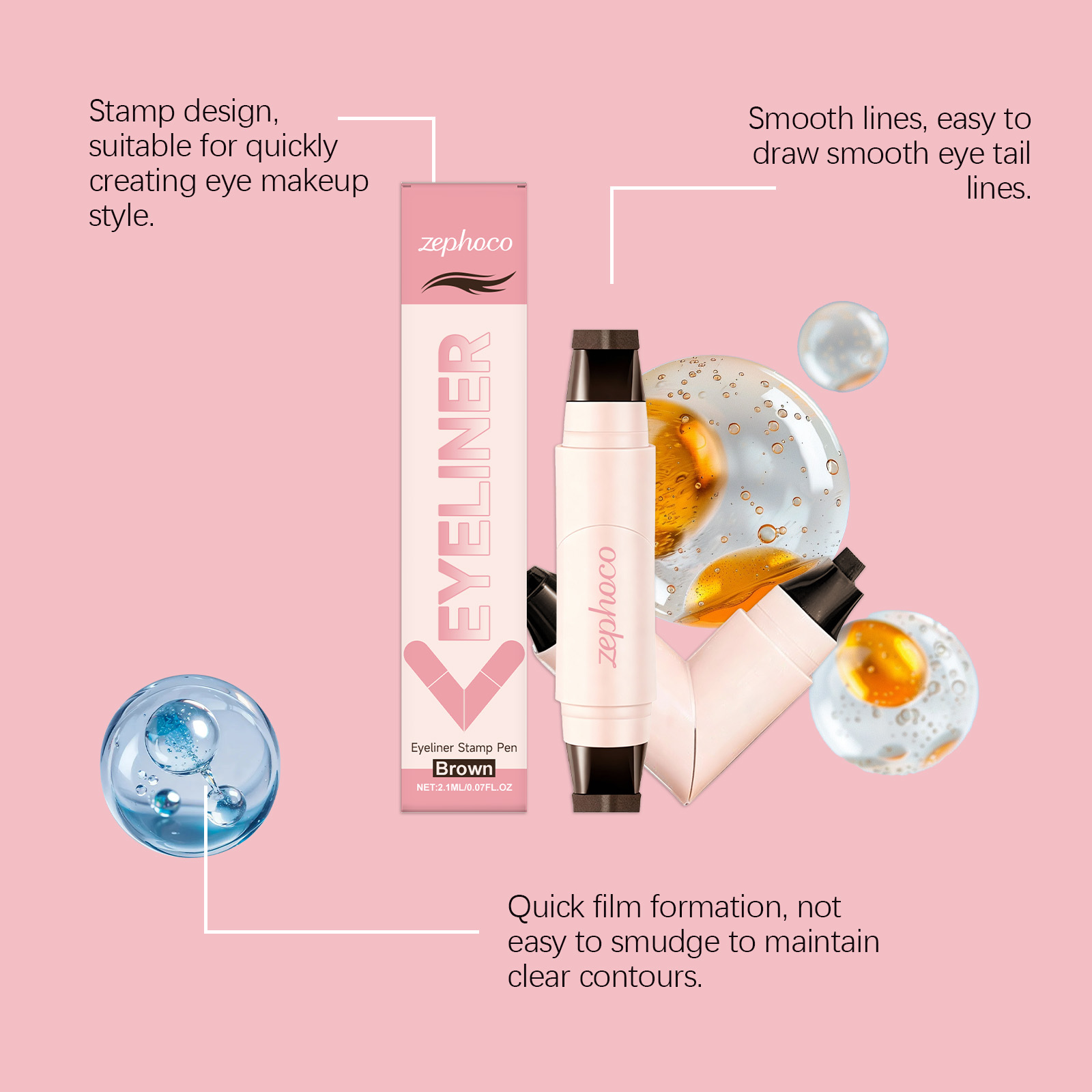 zephoco Double-Head Seal Eyeliner (Brown) Has A Natural Brown Tone, Smooth Color Development, And Is Not Prone To Smudging. It Is Versatile
