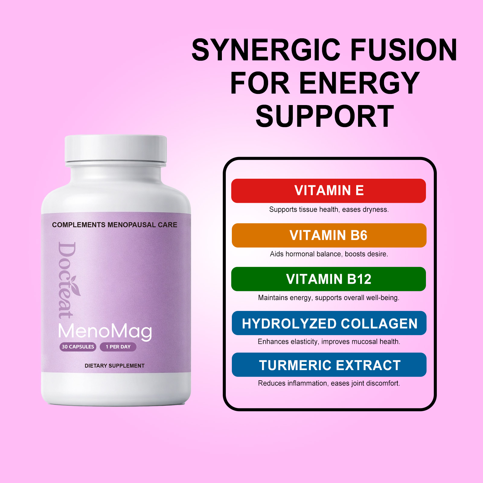 我们的女性护理营养胶囊,由维生素E、维生素B6精心调配而成。专为缓解阴道干涩,助力自然润滑,提升阴道弹性,改善黏膜状态设计。使用方法极为便捷:每天一次,一次1粒胶囊。并且它可以增进欲望,优化亲密体验,减轻潮热等更年期不适症状。
