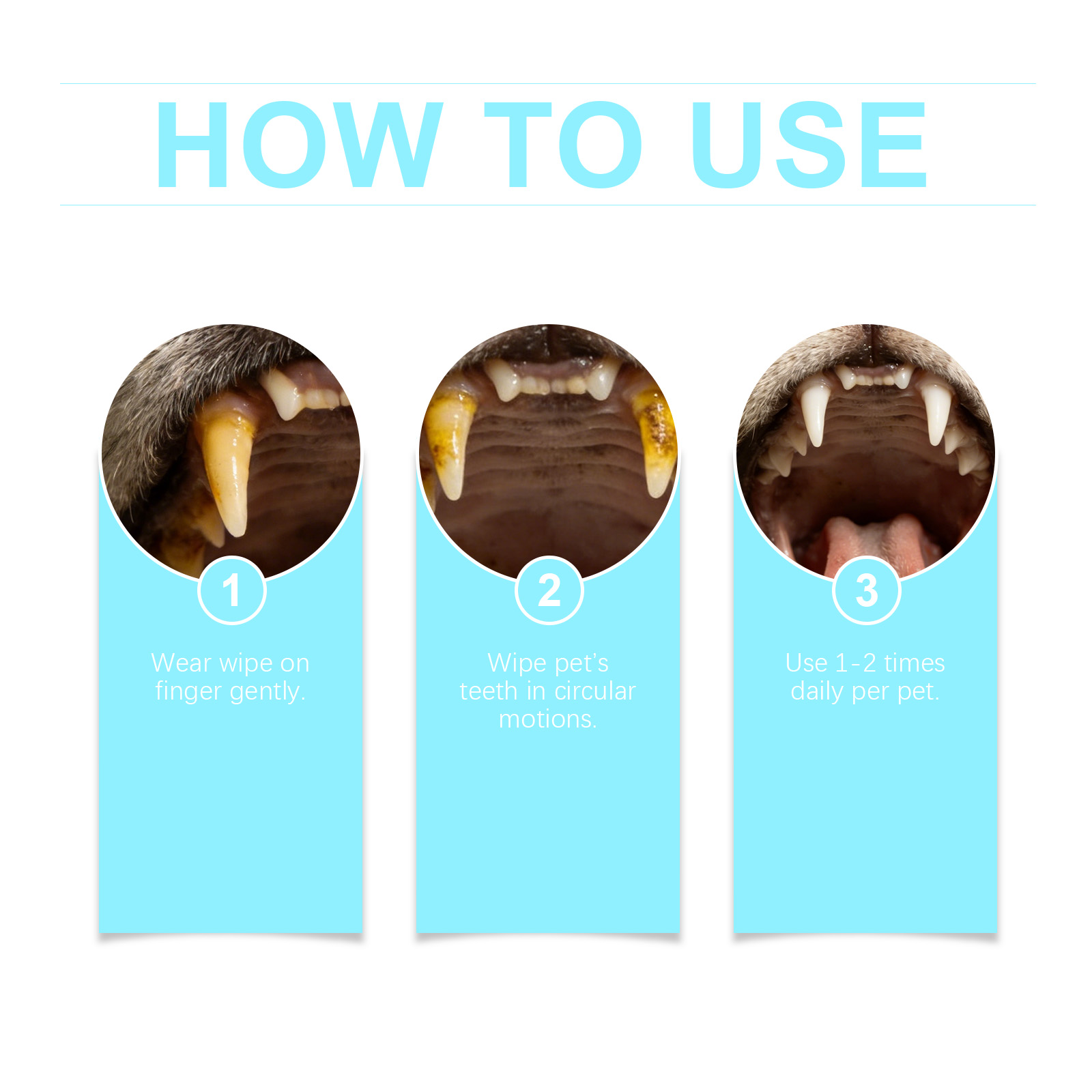 我们的宠物洁齿指套湿巾,由甘油、柠檬酸精心调配而成。专为使宠物的呼吸更清新,能很好地清洁牙齿表面设计。使用方法极为便捷:将湿巾轻轻贴在手指上。以打圈的方式擦拭宠物的牙齿。每只宠物每天使用1-2次。并且它可以适合猫和小型到中型犬。