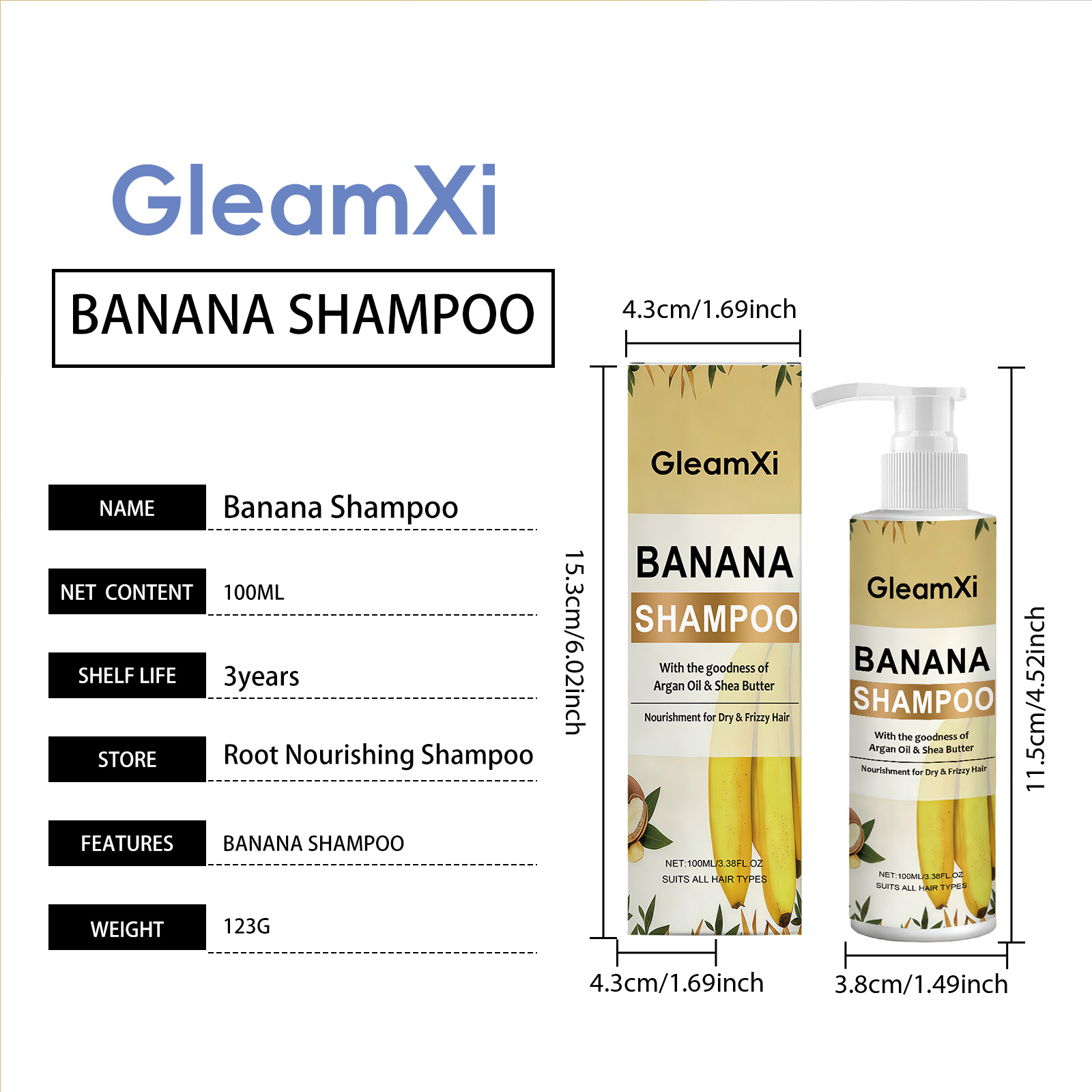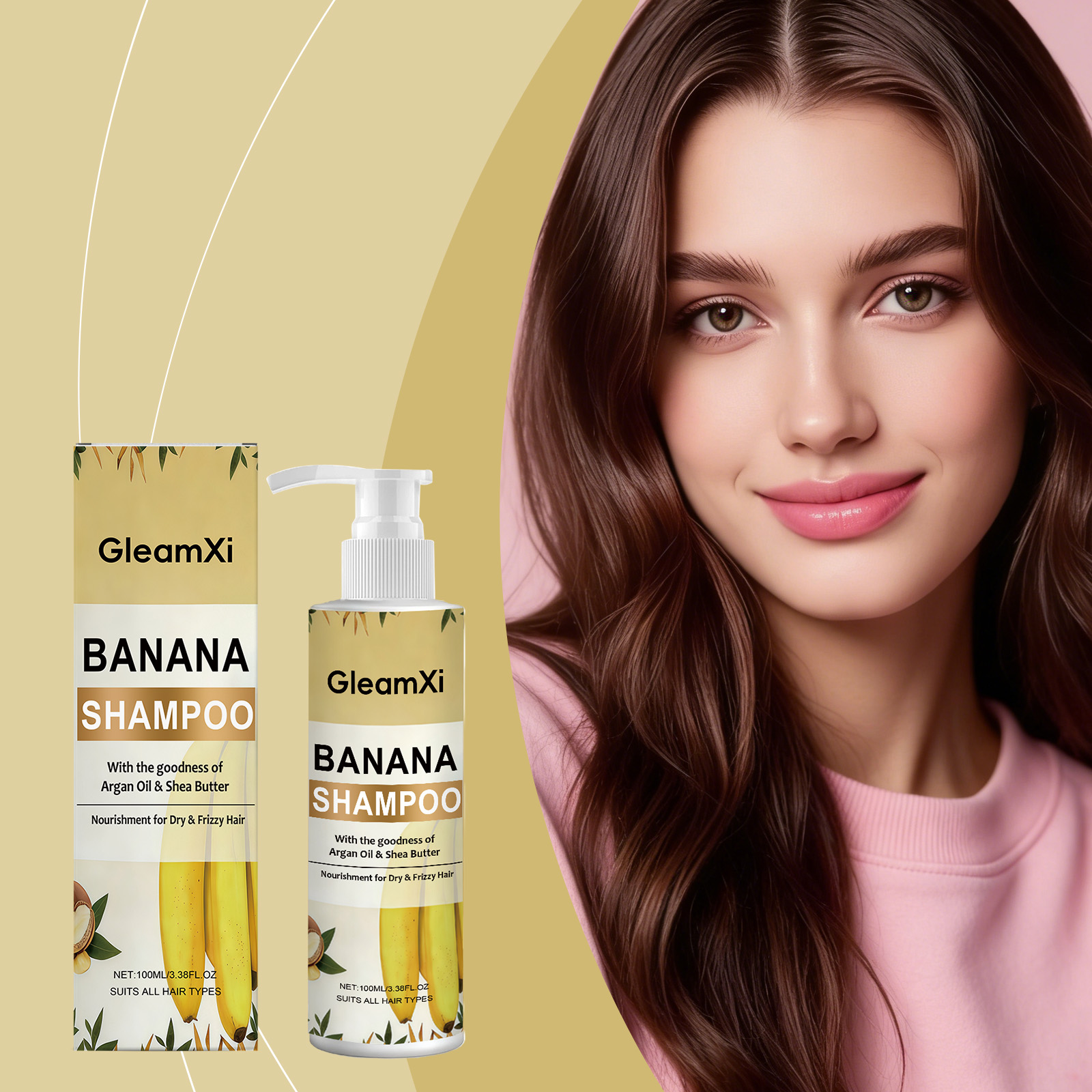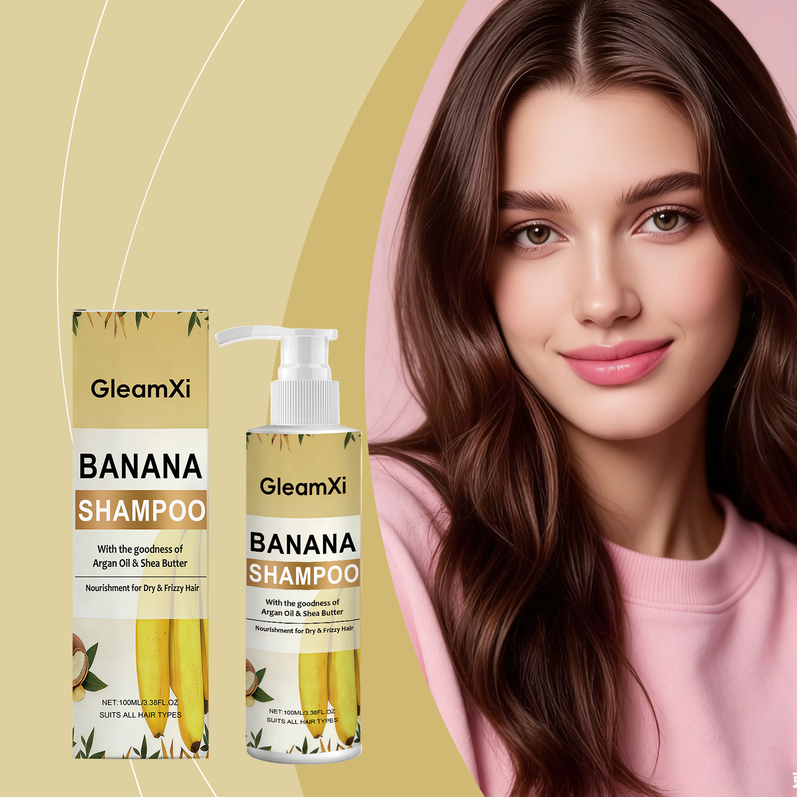GleamXi Banana Essence Shampoo, With A Mild Formula, Cleanses The Scalp, Volutes The Hair And Is A Refreshing Shampoo