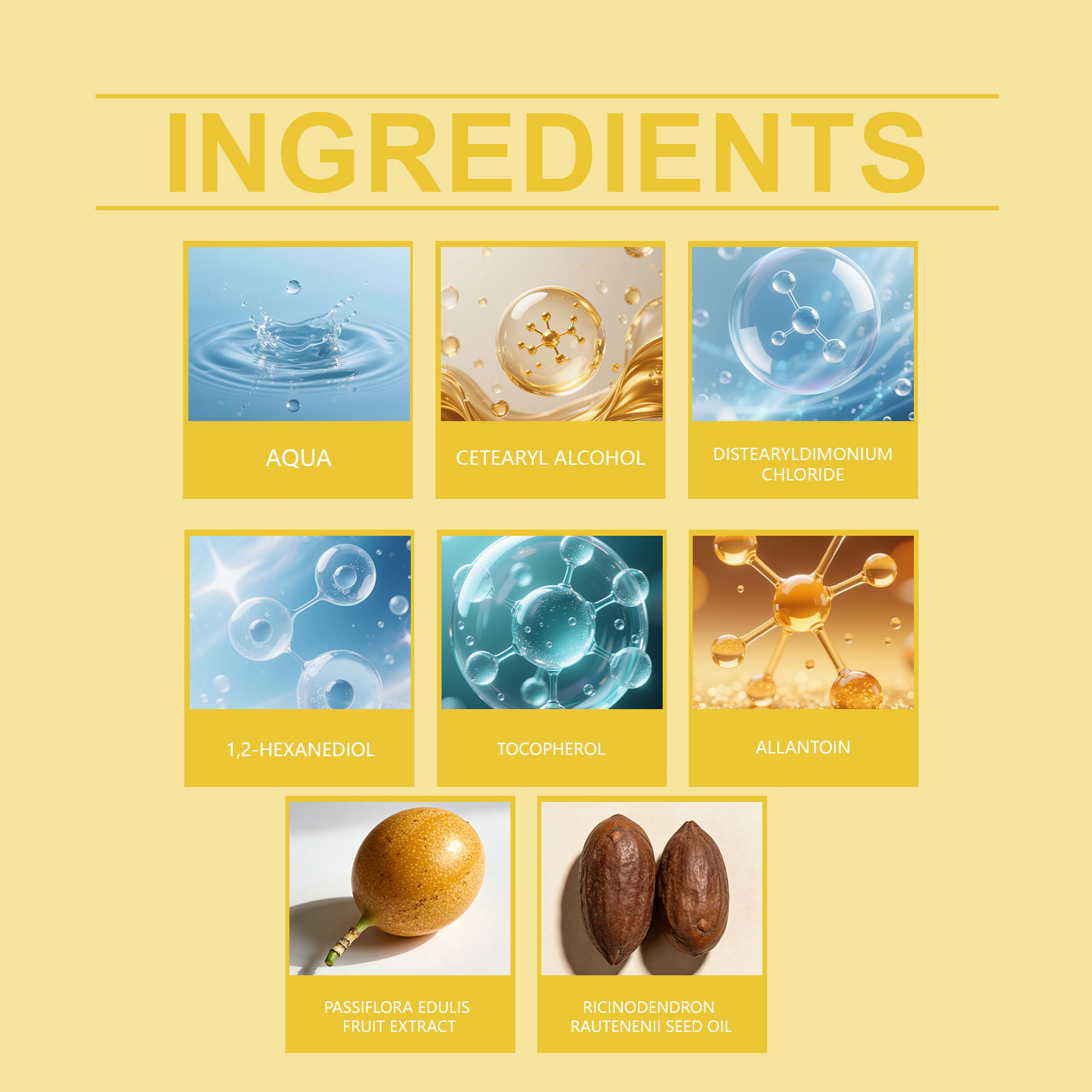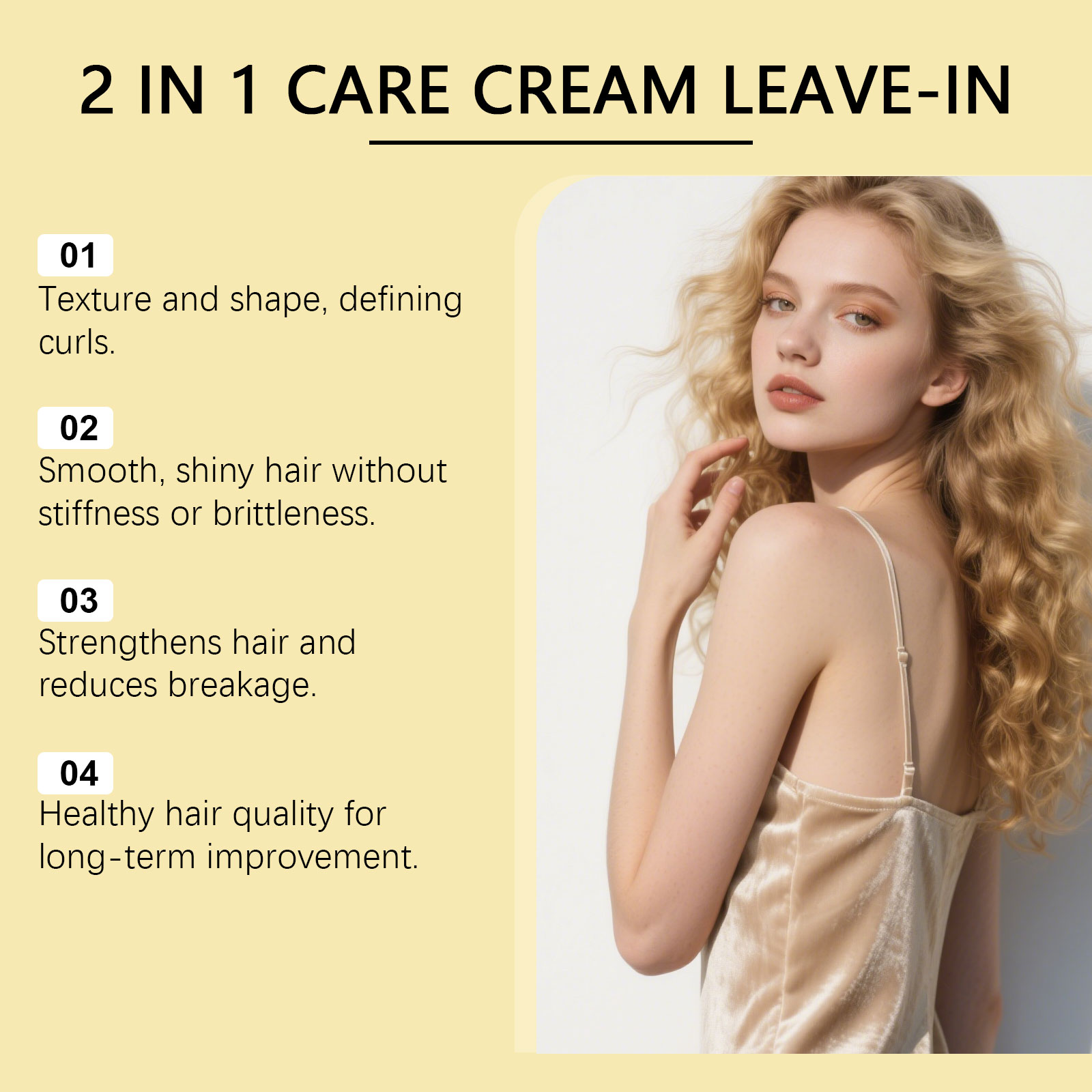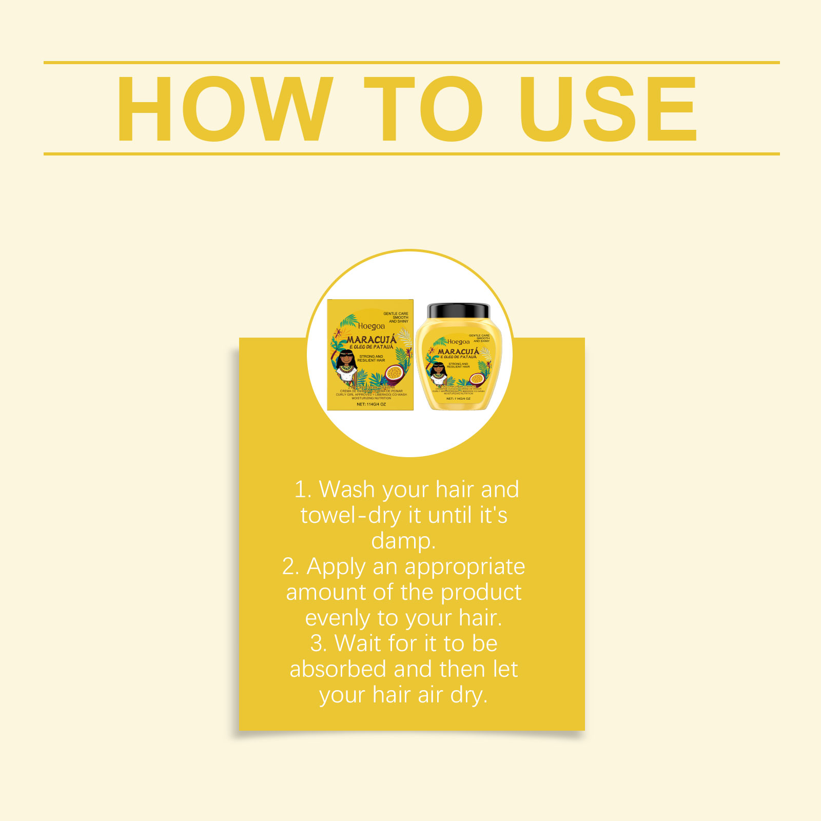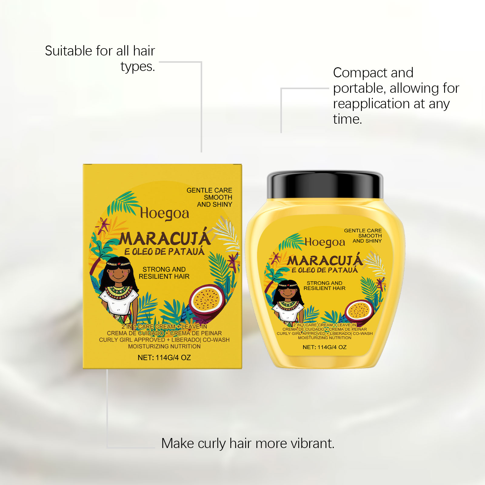 我们的百香果免洗护发霜,由尿囊素、鸡蛋果果提取物精心调配而成。专为精准定义所有卷发类型,打造顺滑、闪亮的外观设计。使用方法极为便捷:1.洗发并用毛巾擦干至微湿。2.将适量产品均匀涂抹于头发上。3.等待其被吸收,然后让头发自然风干。并且采用活性成分,能深入渗透发丝,强化其结构。