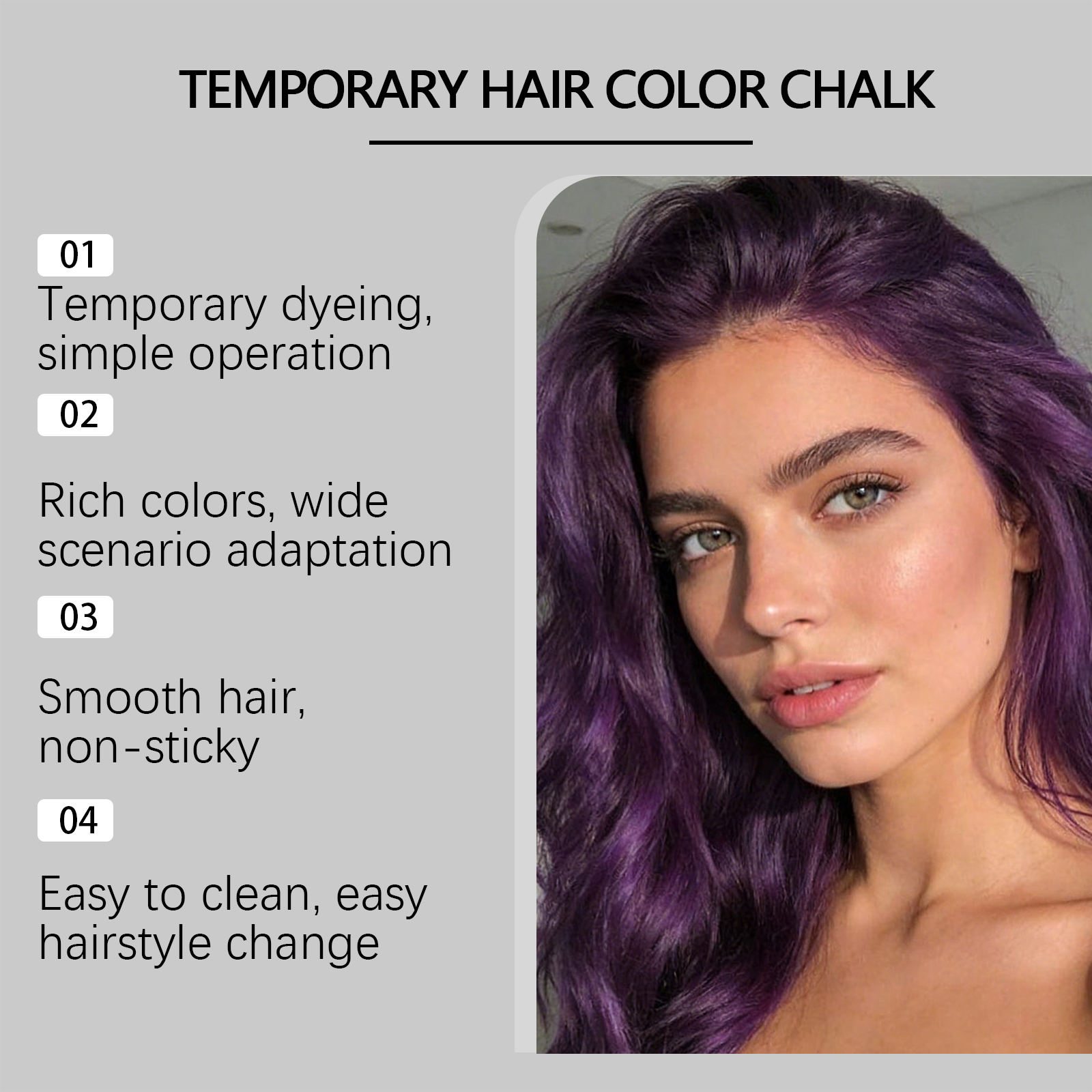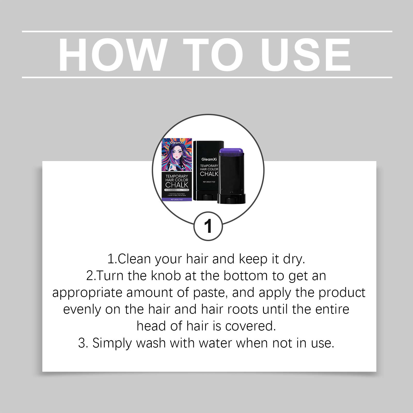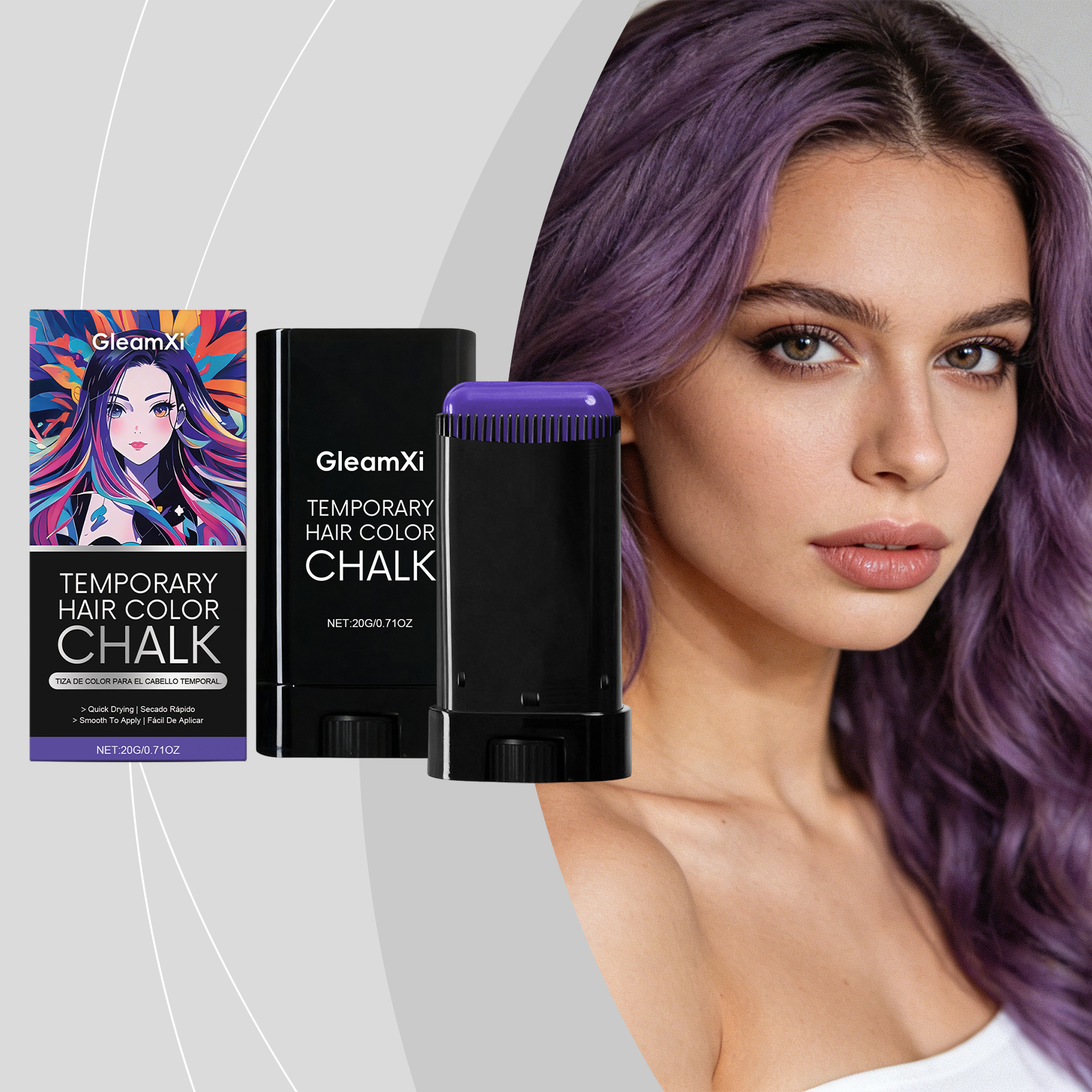 GleamXi Temporary Hair Dye Stick (Purple) For Party Temporary Styling, Cool And Shiny, Natural Color Display, Charming Portable Hair Care Stick