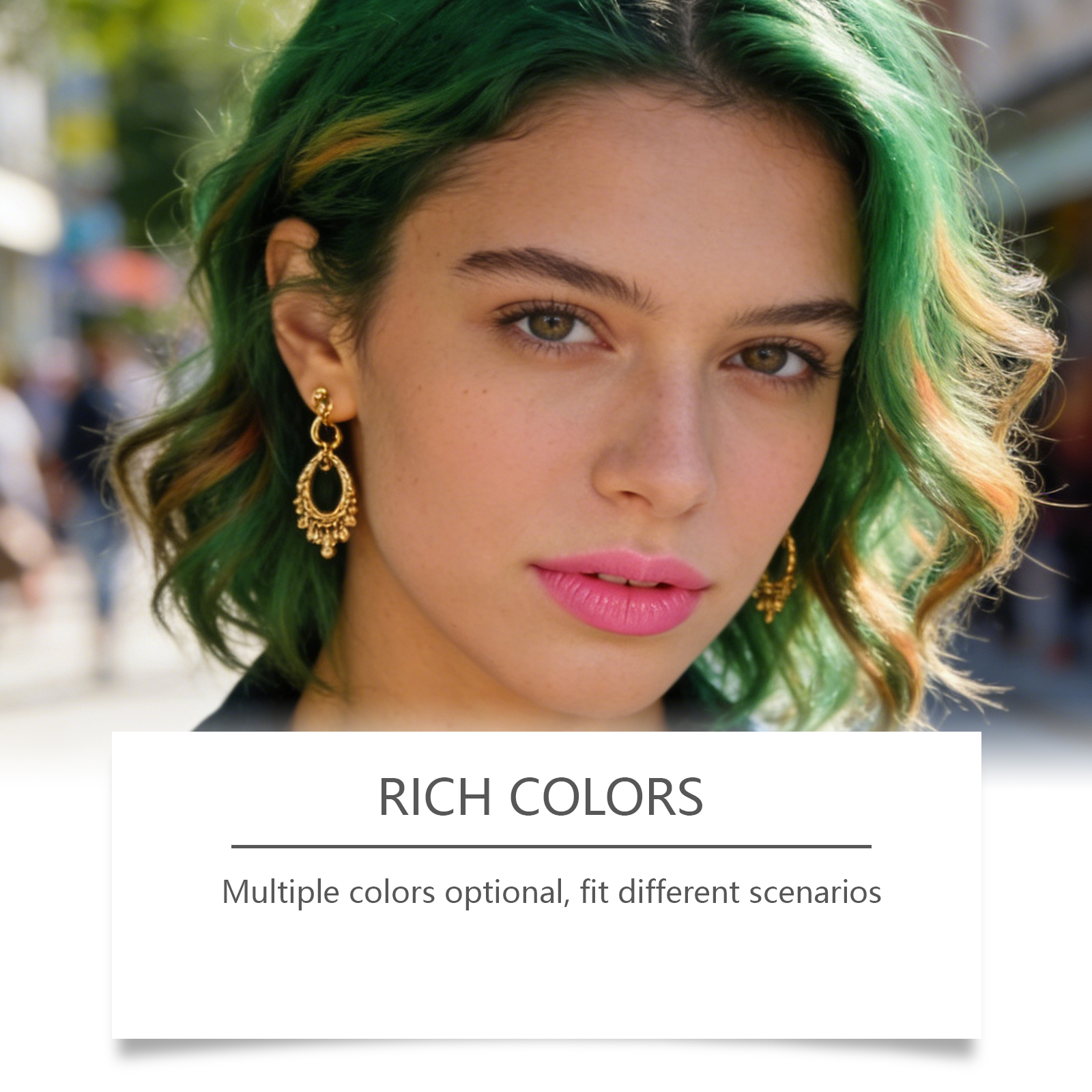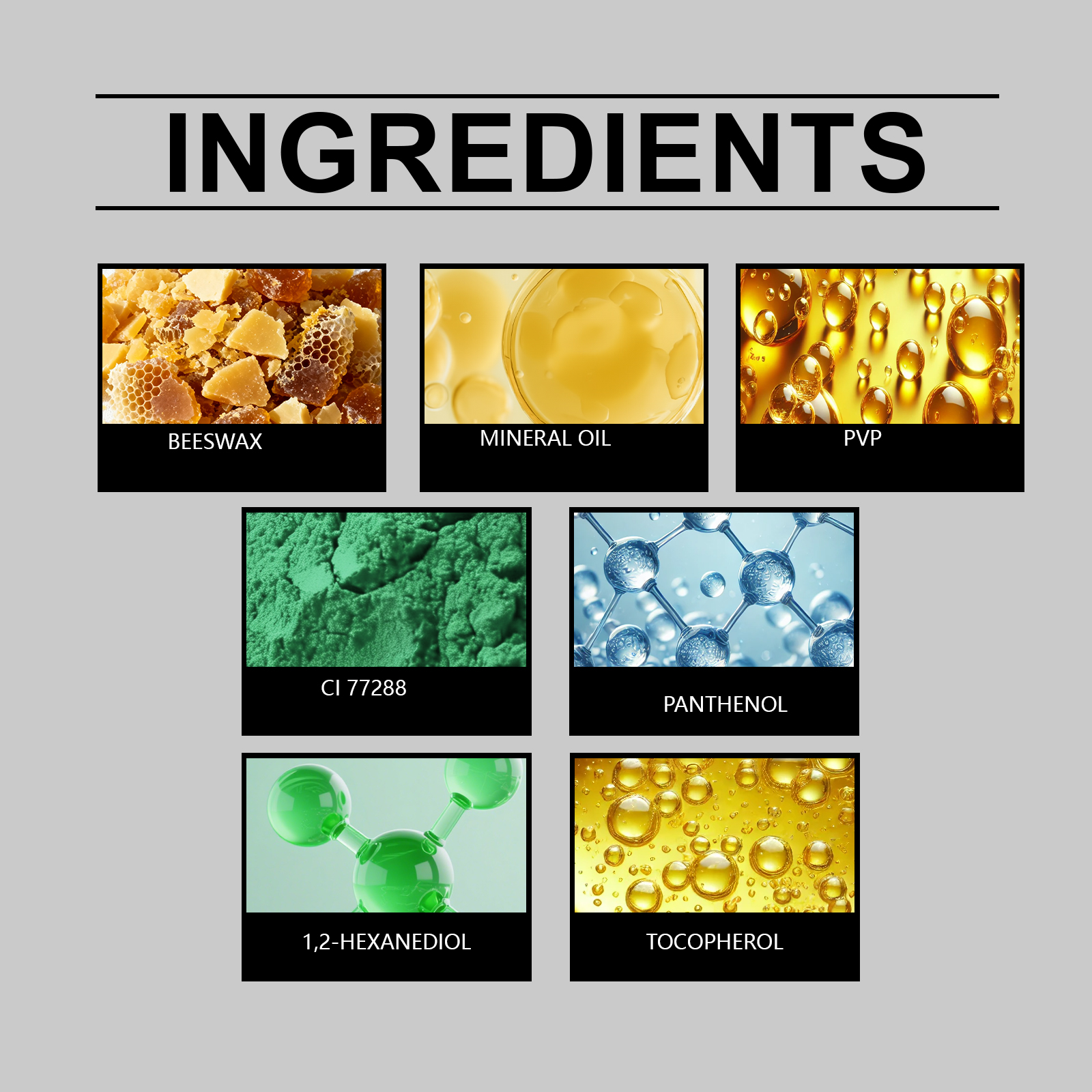 我们的临时染发棒(绿色),由1,2 - 己二醇、生育酚(维生素 E)精心调配而成。专为滋养头发并改善发质设计。使用方法极为便捷:1.清洁头发并保持干燥。2.旋转底部旋钮,以获取适量膏体,并均匀涂抹于头发及发根,直至覆盖全部头发生长区域。3.不使用时只需用水冲洗即可。并且非常方便更换发型。