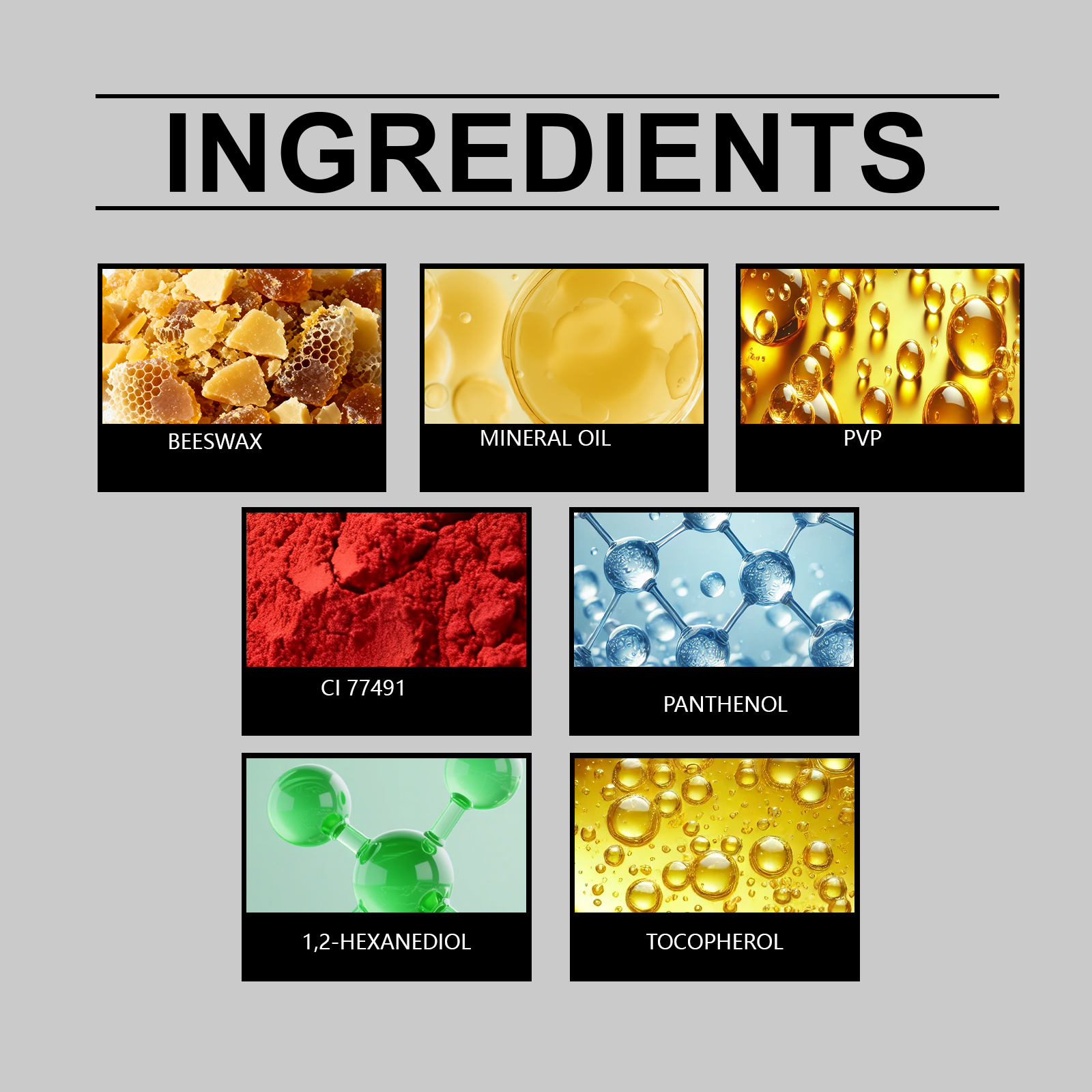 我们的临时染发棒(红色),由1,2 - 己二醇、生育酚(维生素 E)精心调配而成。专为滋养头发并改善发质设计。使用方法极为便捷:1.清洁头发并保持干燥。2.旋转底部旋钮,以获取适量膏体,并均匀涂抹于头发及发根,直至覆盖全部头发生长区域。3.不使用时只需用水冲洗即可。并且非常方便更换发型。