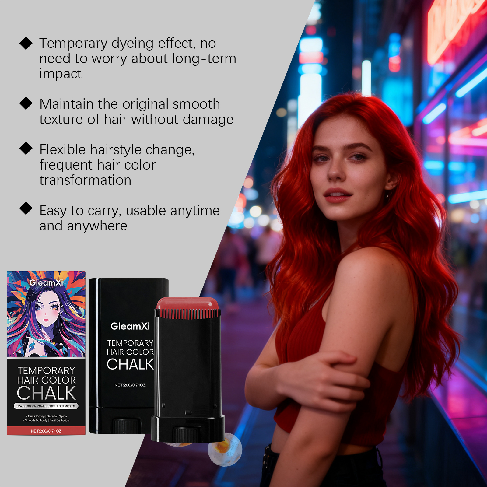 GleamXi Temporary Hair Dye Stick (Red) For Party Temporary Styling, Cool And Shiny, Natural Color Display, Charming Portable Hair Care Stick
