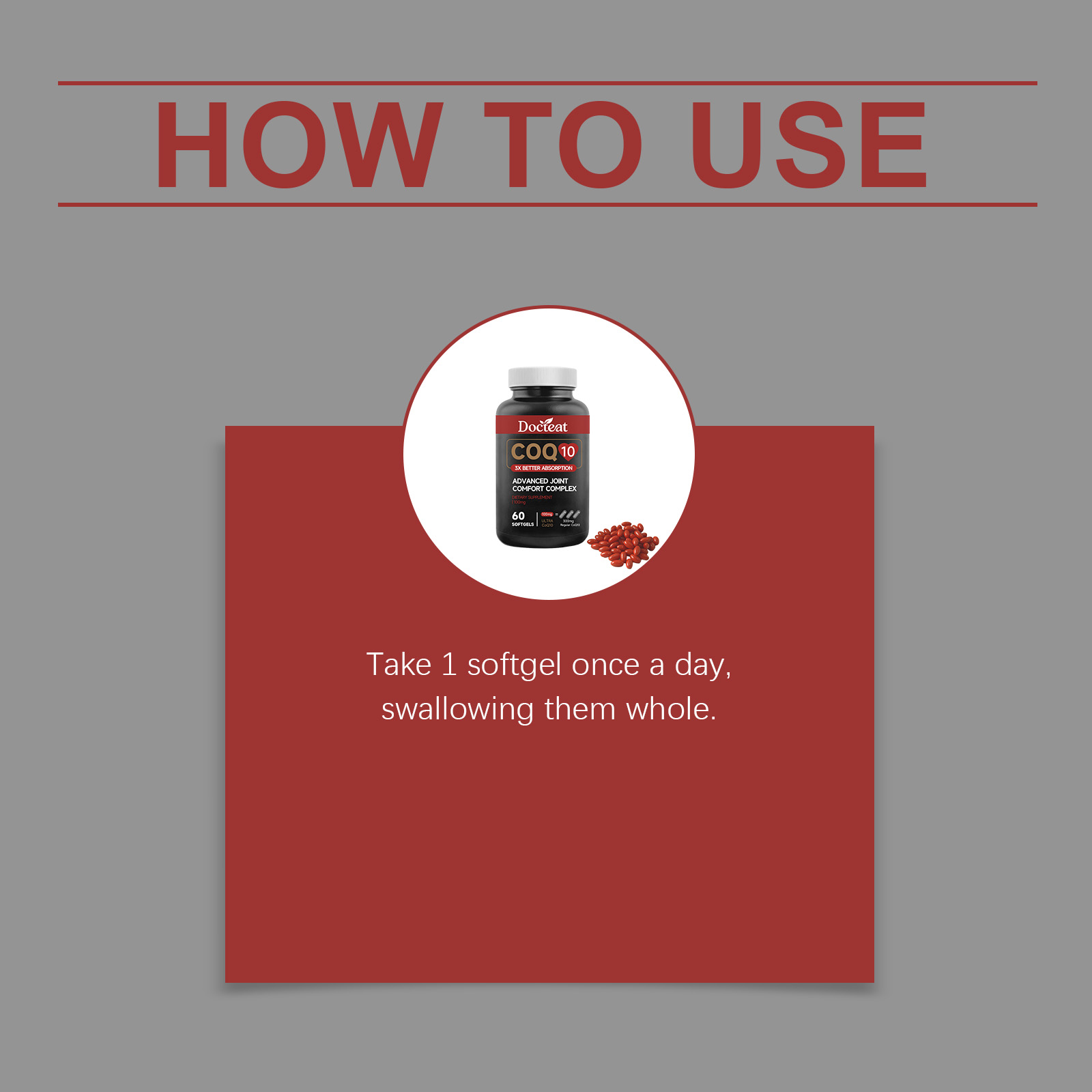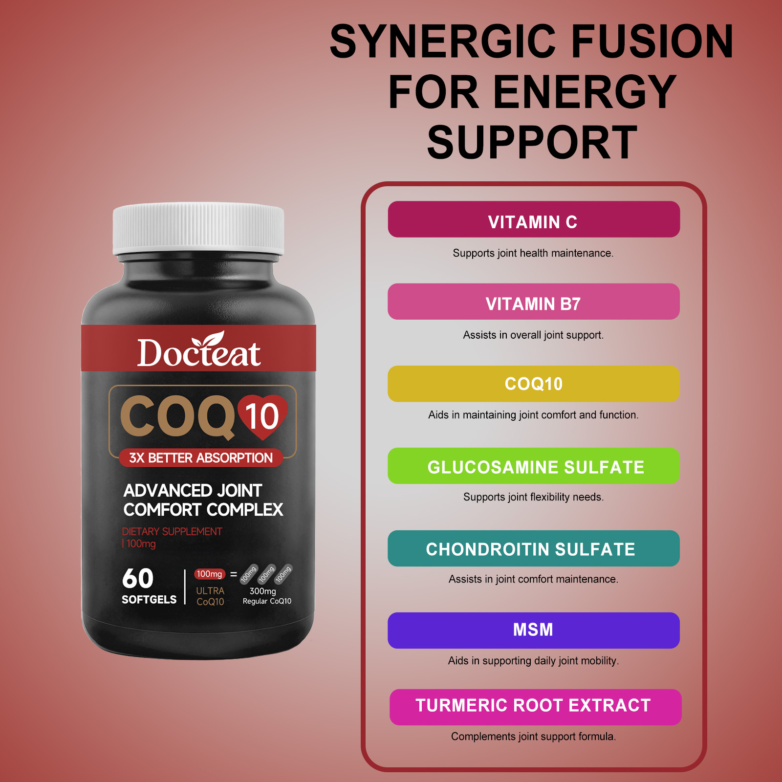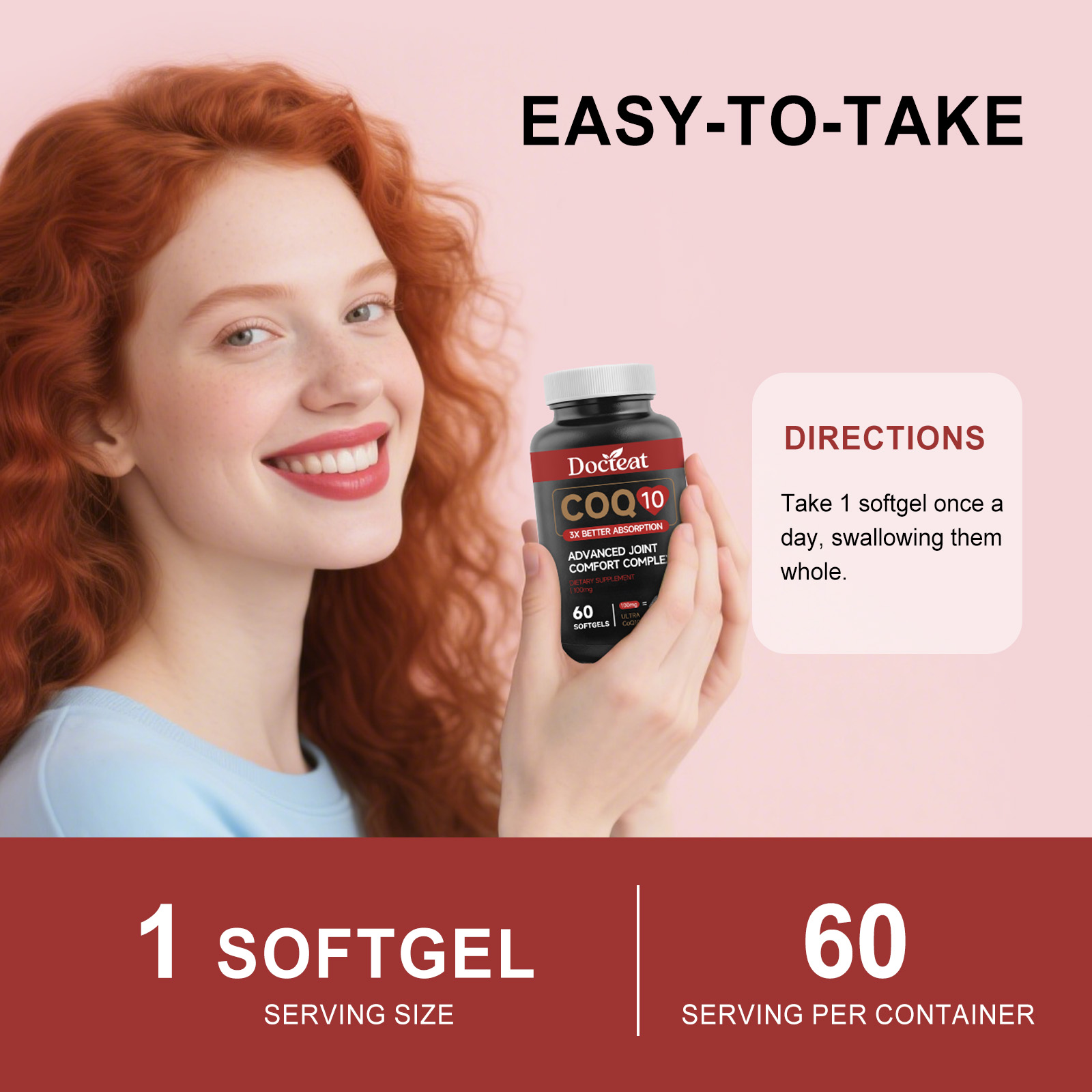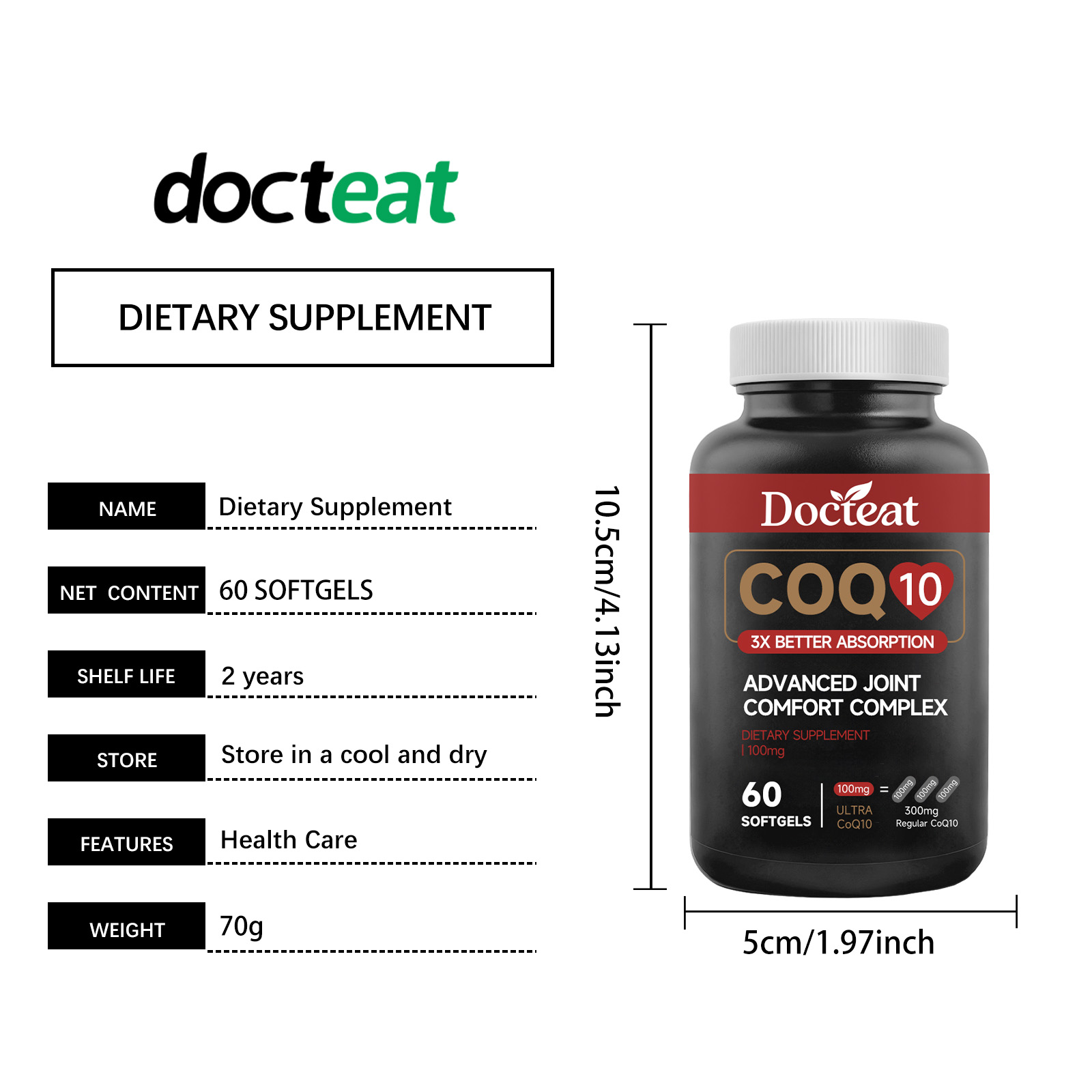 Docteat Coenzyme Q10 Soft Capsules, With A Mild Formula, Are A Daily Dietary Supplement For Joint Comfort And Vitality Enhancement