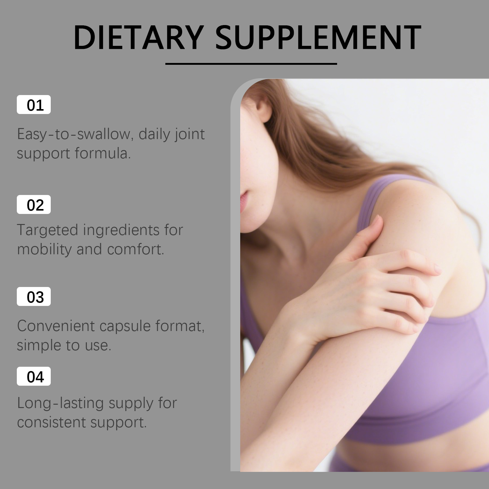 我们的辅酶Q10软胶囊,由维生素C、维生素B7精心调配而成。专为支持日常关节舒适与活动顺畅,助力维持关节灵活性适配日常活动设计。使用方法极为便捷:每天一次,一次1粒胶囊,吞服。并且它可以适配活跃生活方式,针对性关节支持,协助维持每日舒适的关节功能。