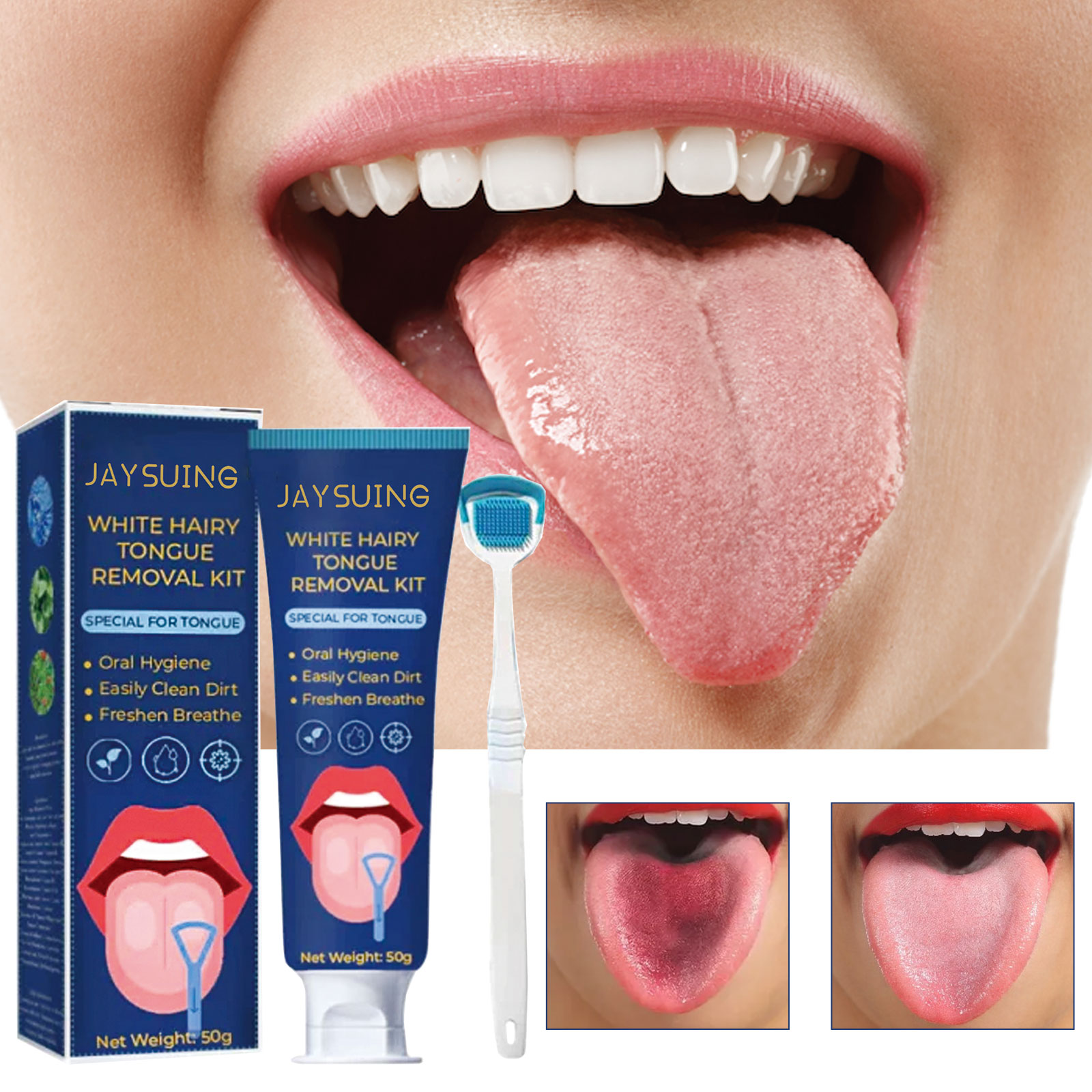 Jaysuing Tongue Coating Cleaning Set, Oral Care Remove Odors Fresh Breath Tongue Coating Cleaning Set