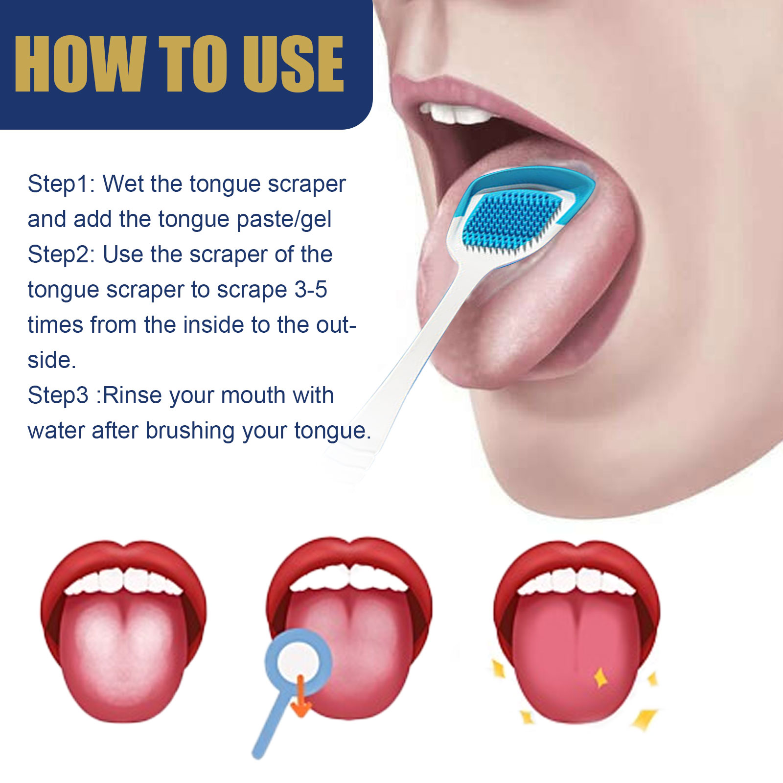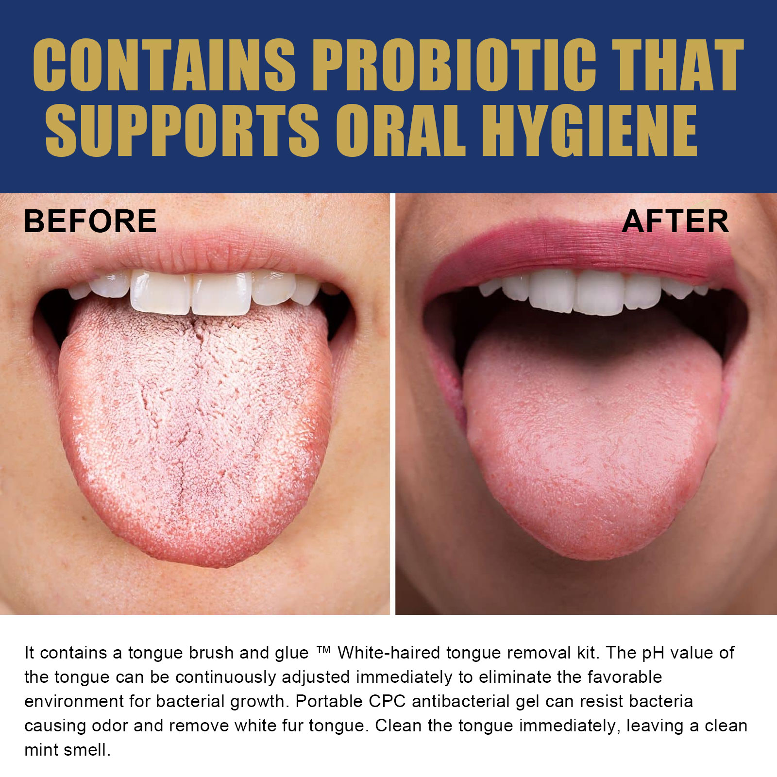 我们的舌苔清洁套装含有麦卢卡蜂蜜,益生菌,薄荷提取物。它可以不断调整舌头的pH值,以消除细菌生长的有利环境,能抵抗细菌产生异味,去除白毛舌。立即清洁舌头,留下干净薄荷味。它的使用方法很简单:将刮舌器弄湿,加入舌膏/凝胶。用刮舌器的刮板从内到外刮3-5次。刷完舌头后用水漱口。深层清洁舌苔,减少细菌滋生,容易清洁口腔污垢,不刺激,保持口腔卫生,有助于维持舌头的中性pH值和清除细菌堆积。