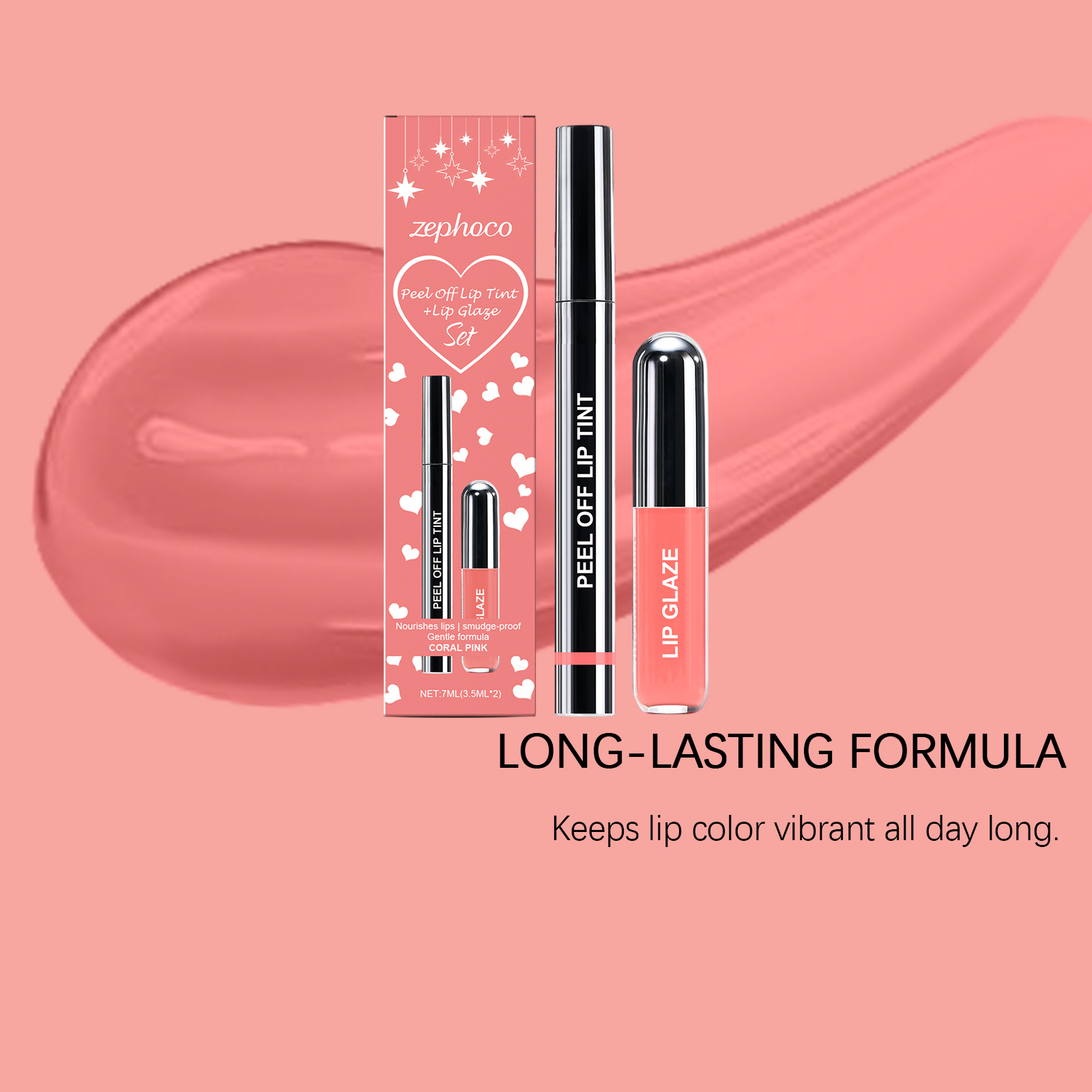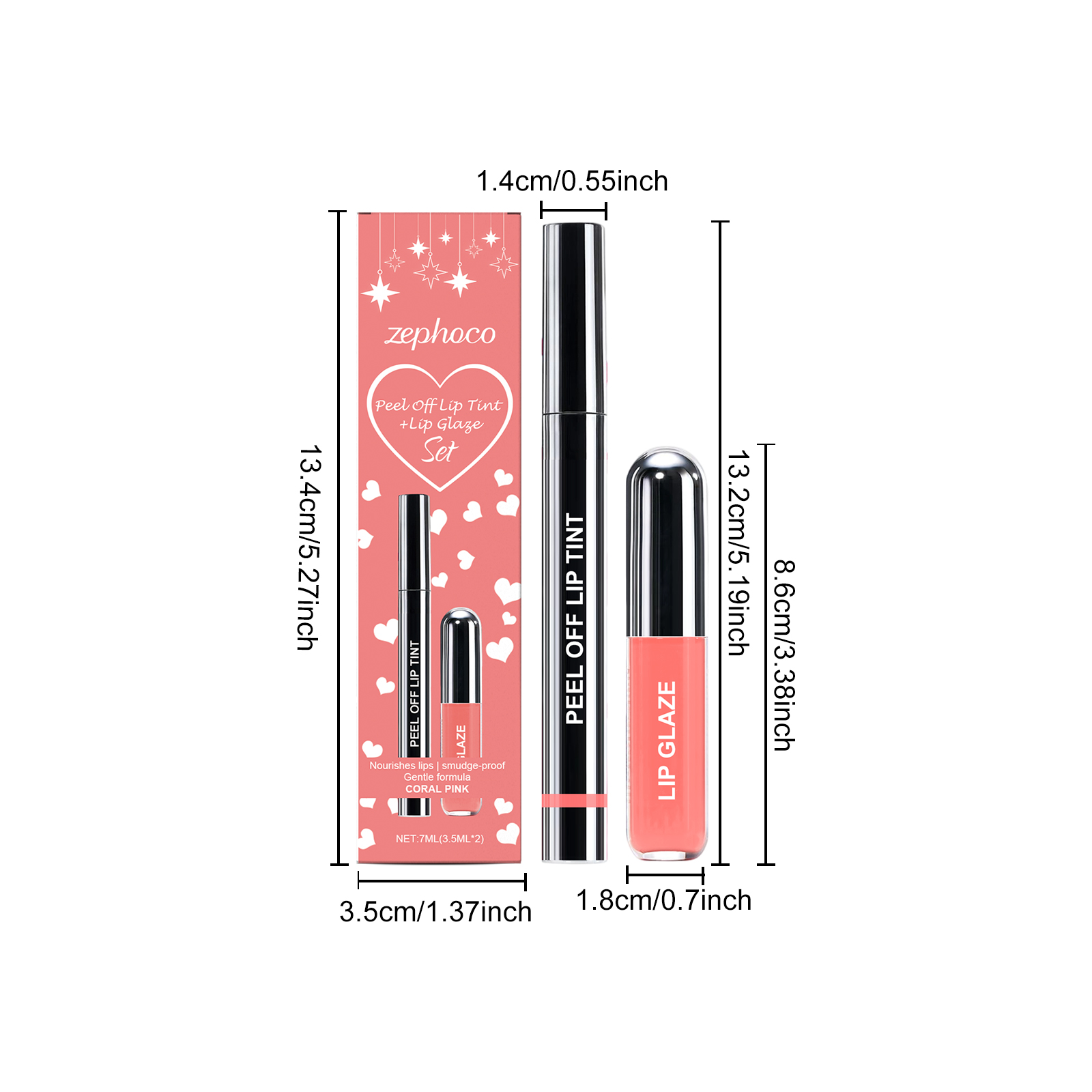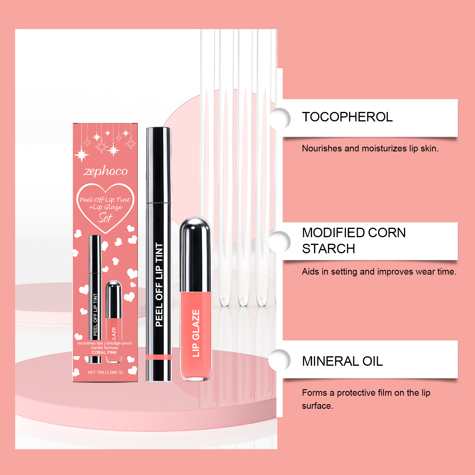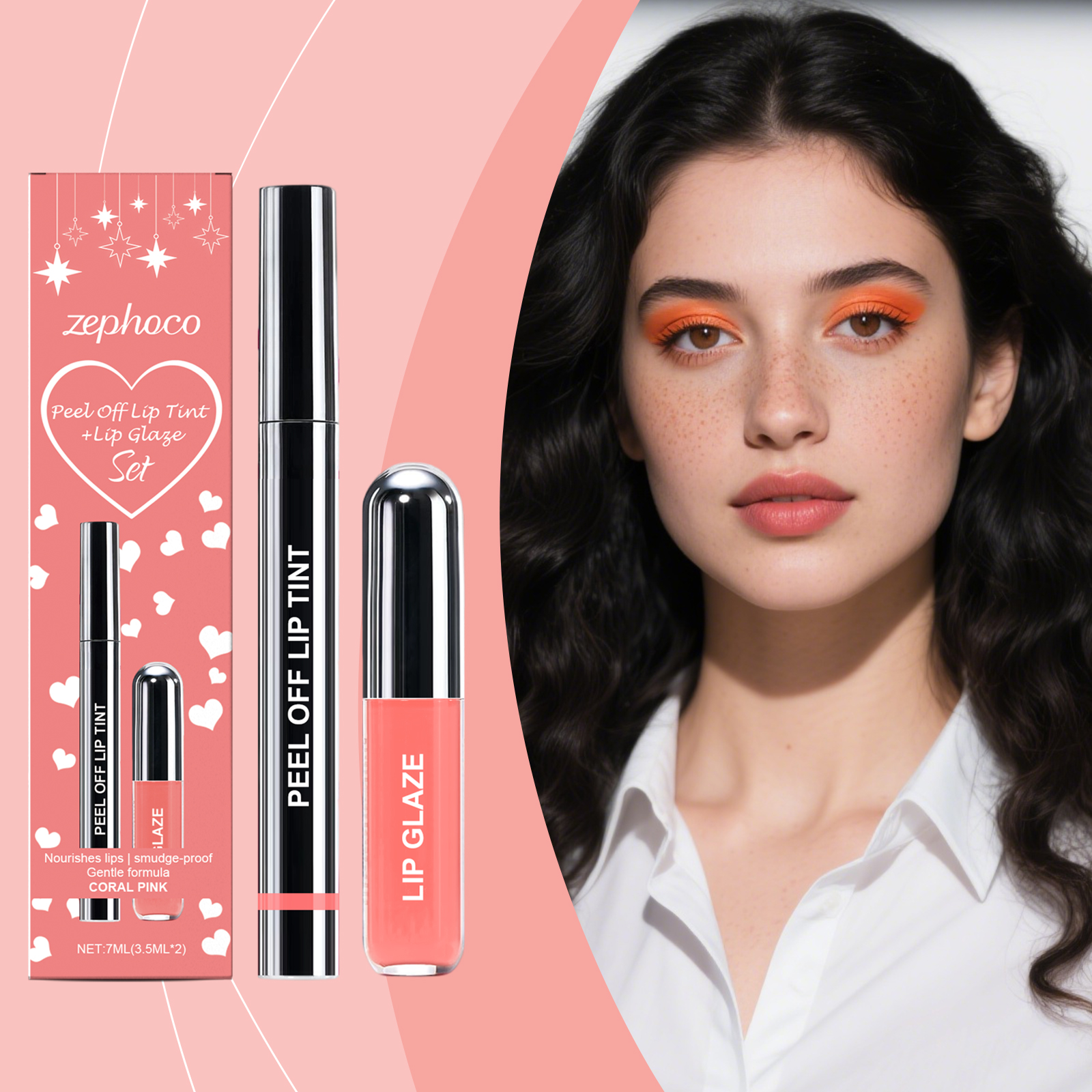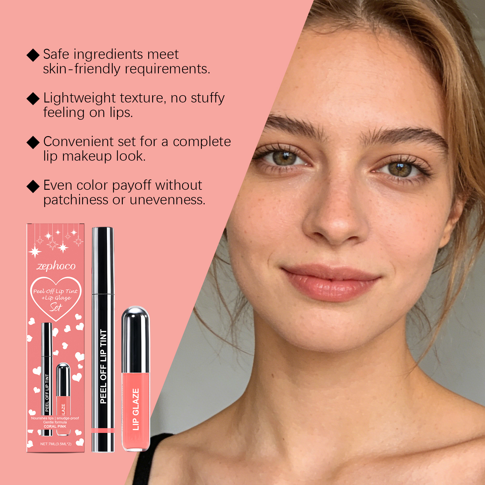 zephoco Coral Powder Lip Liner Pen Lip Gloss Set, Daily Application, Natural Color, Convenient Lip Makeup