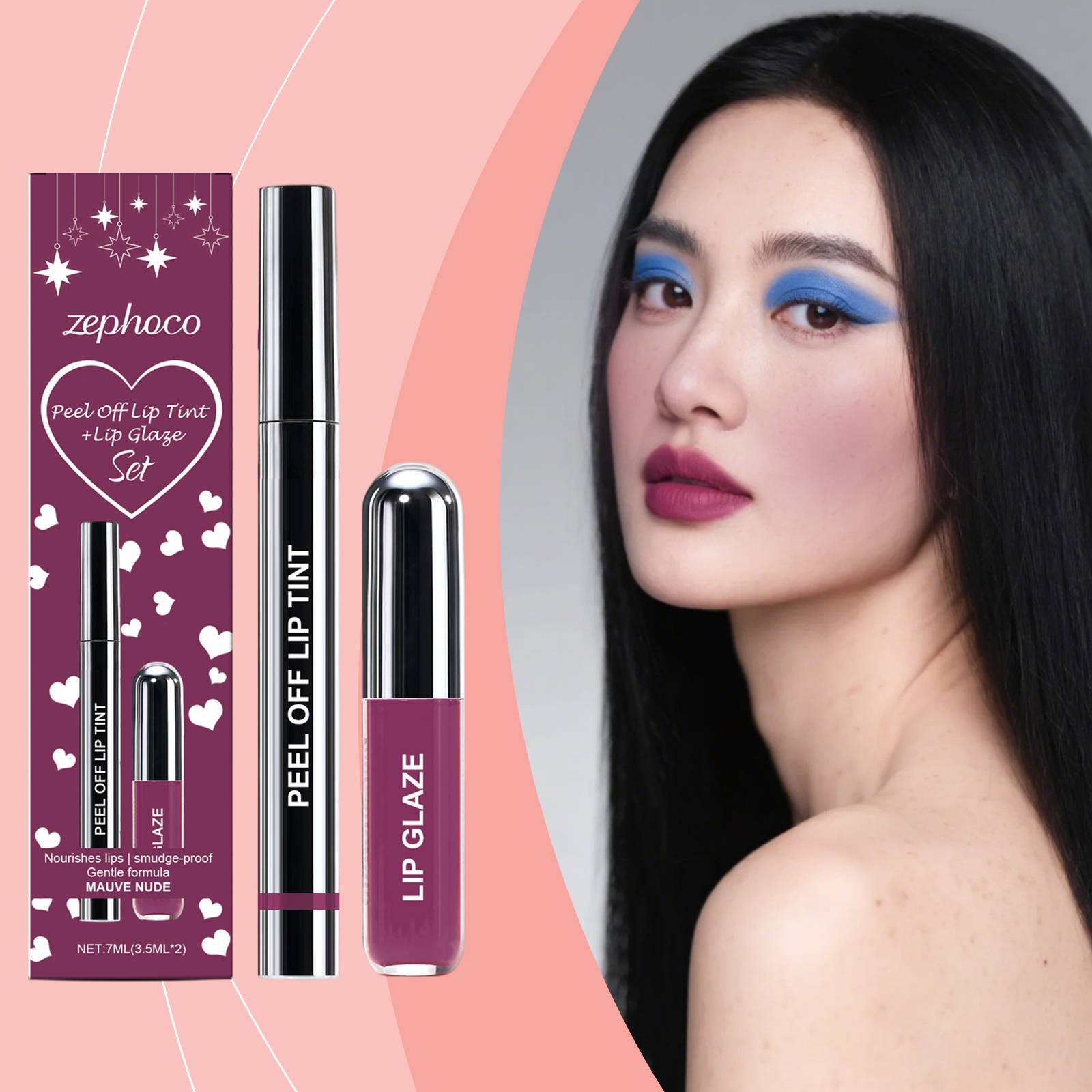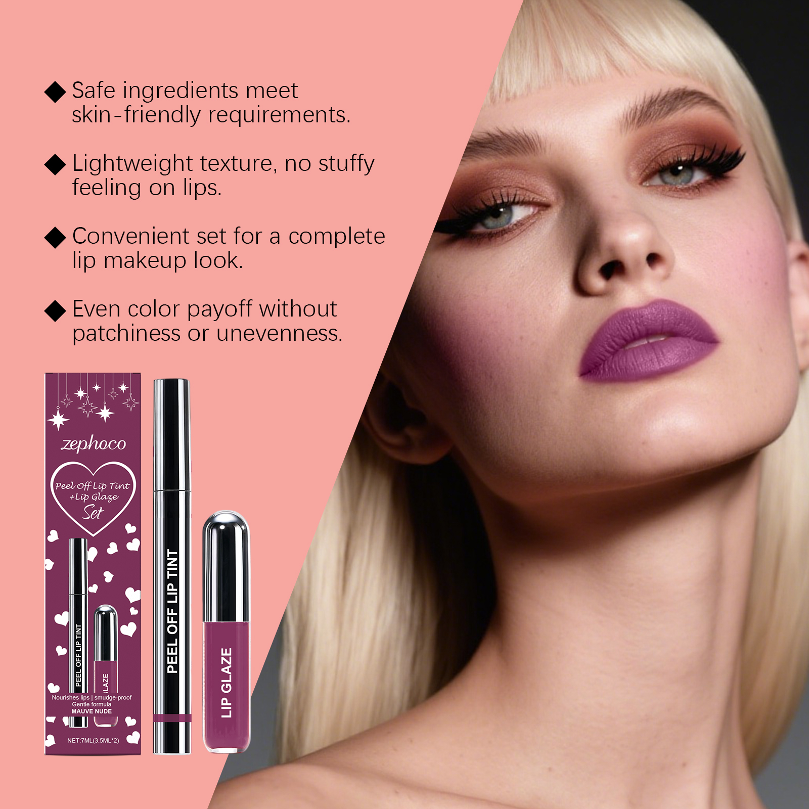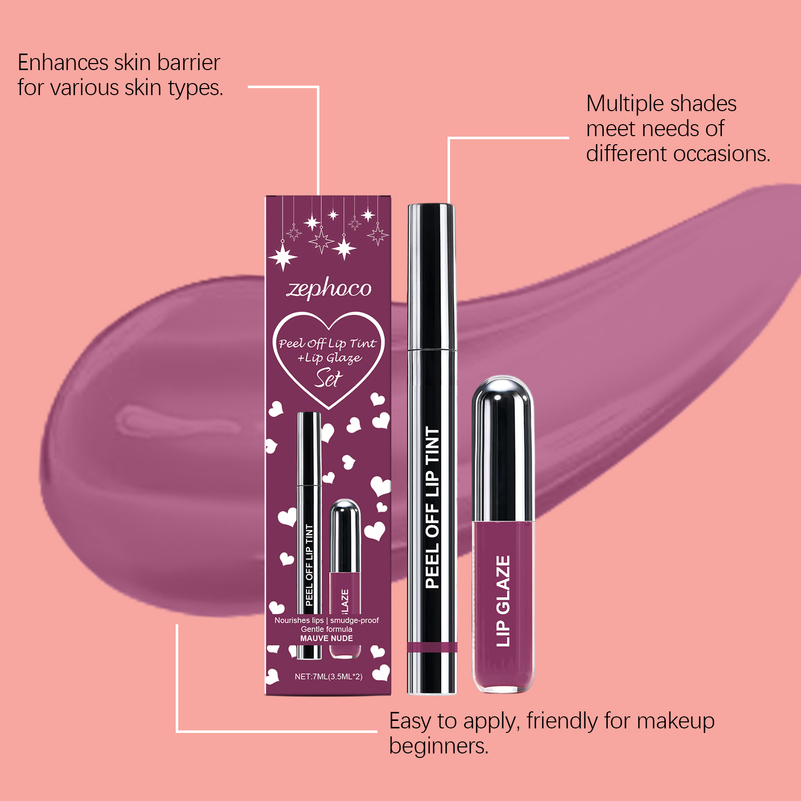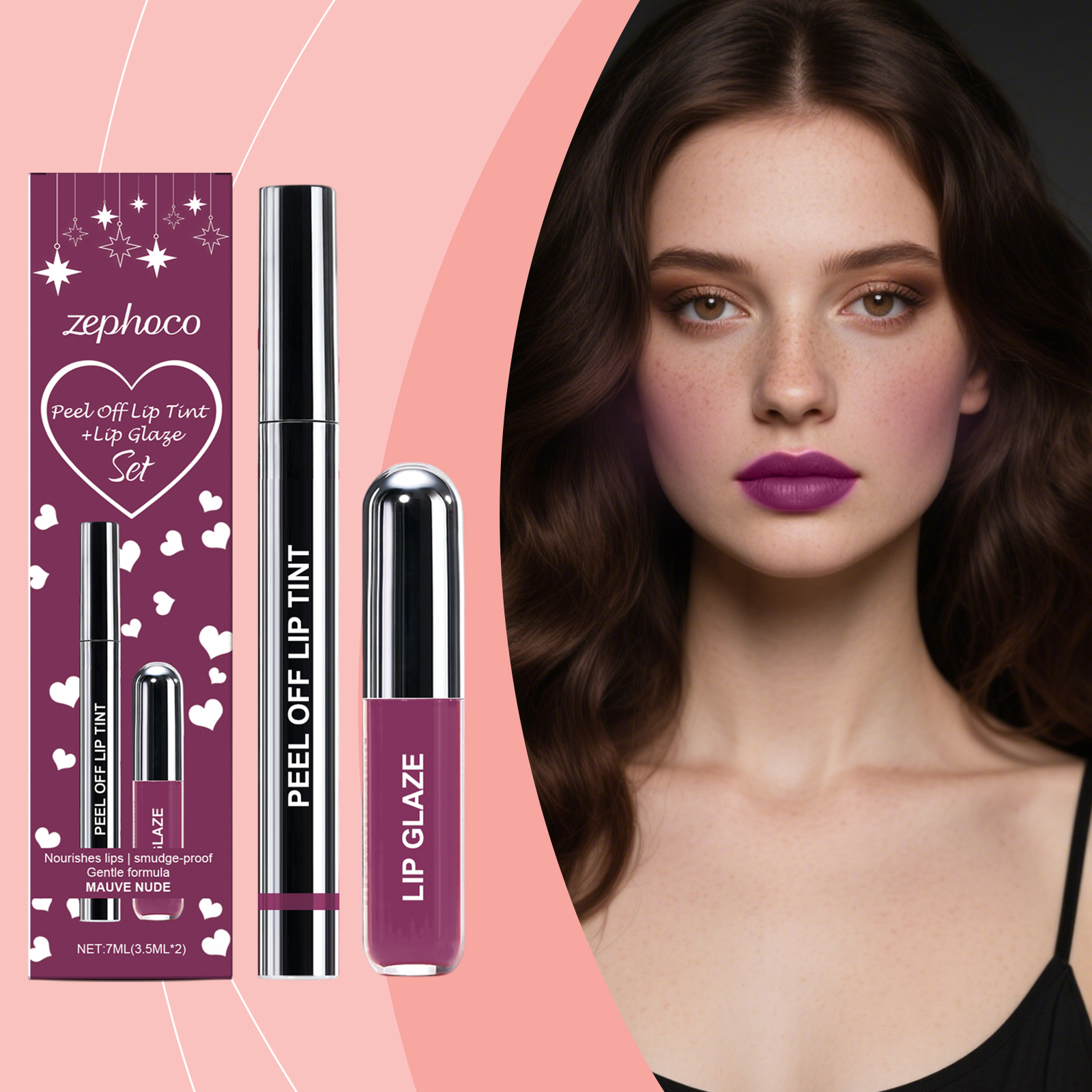 zephoco Purple-Red Peel-Off Lip Liner And Lip Gloss Set, Matte Texture, Gentle And Fashionable Lip Gloss