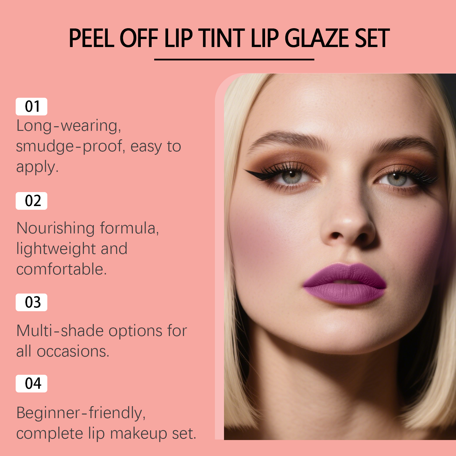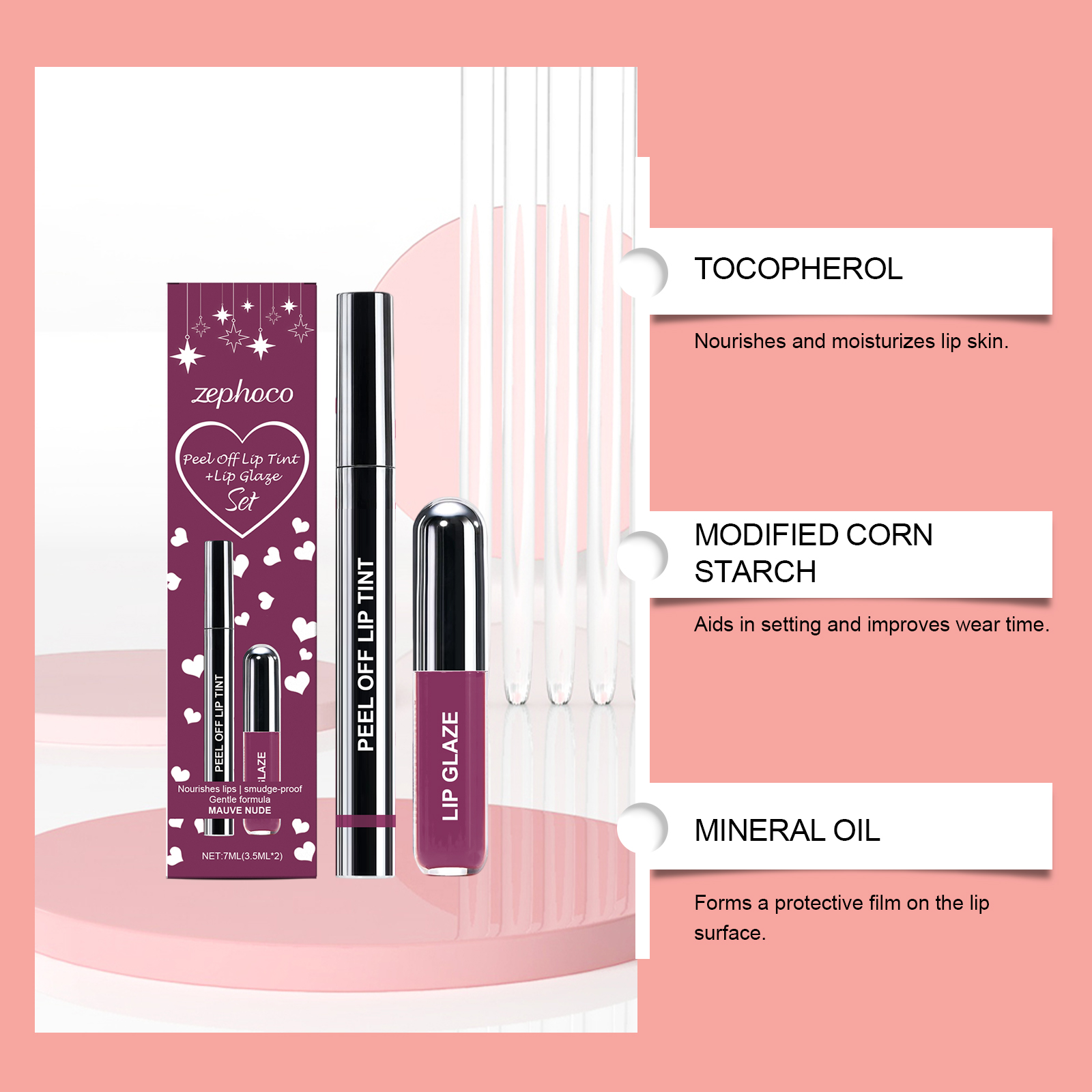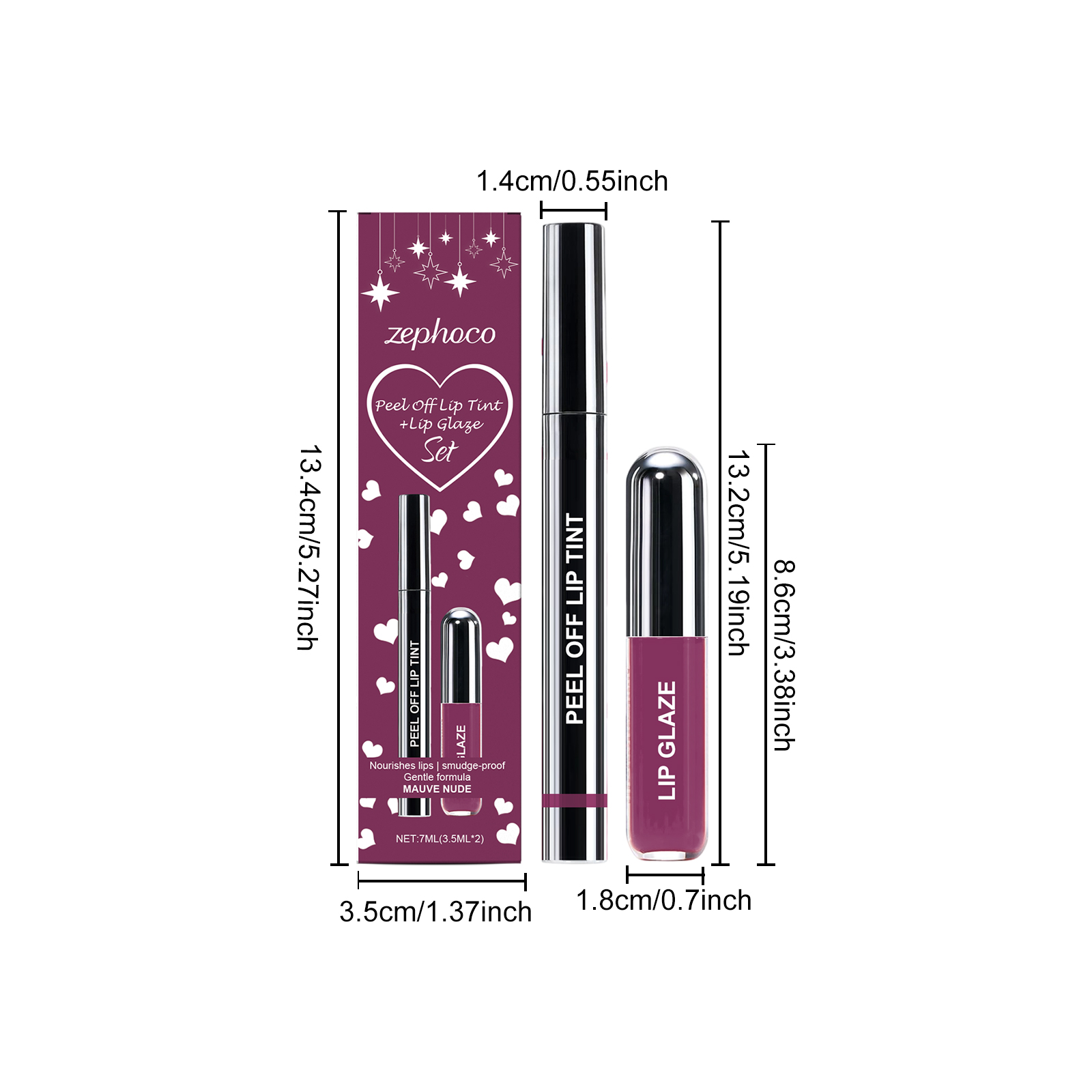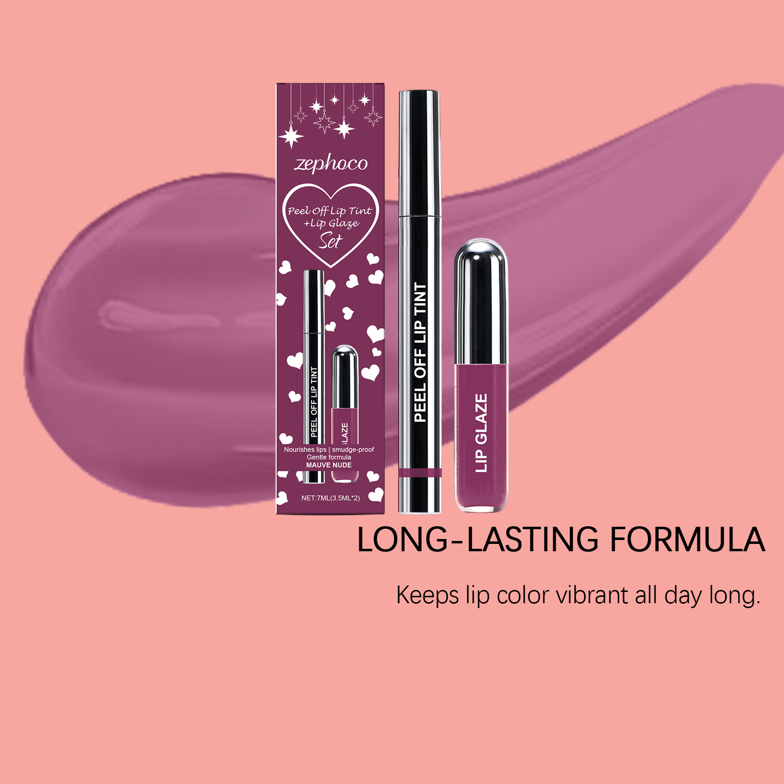 zephoco Purple-Red Peel-Off Lip Liner And Lip Gloss Set, Matte Texture, Gentle And Fashionable Lip Gloss