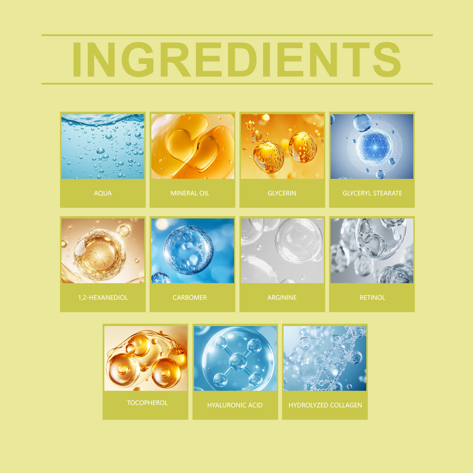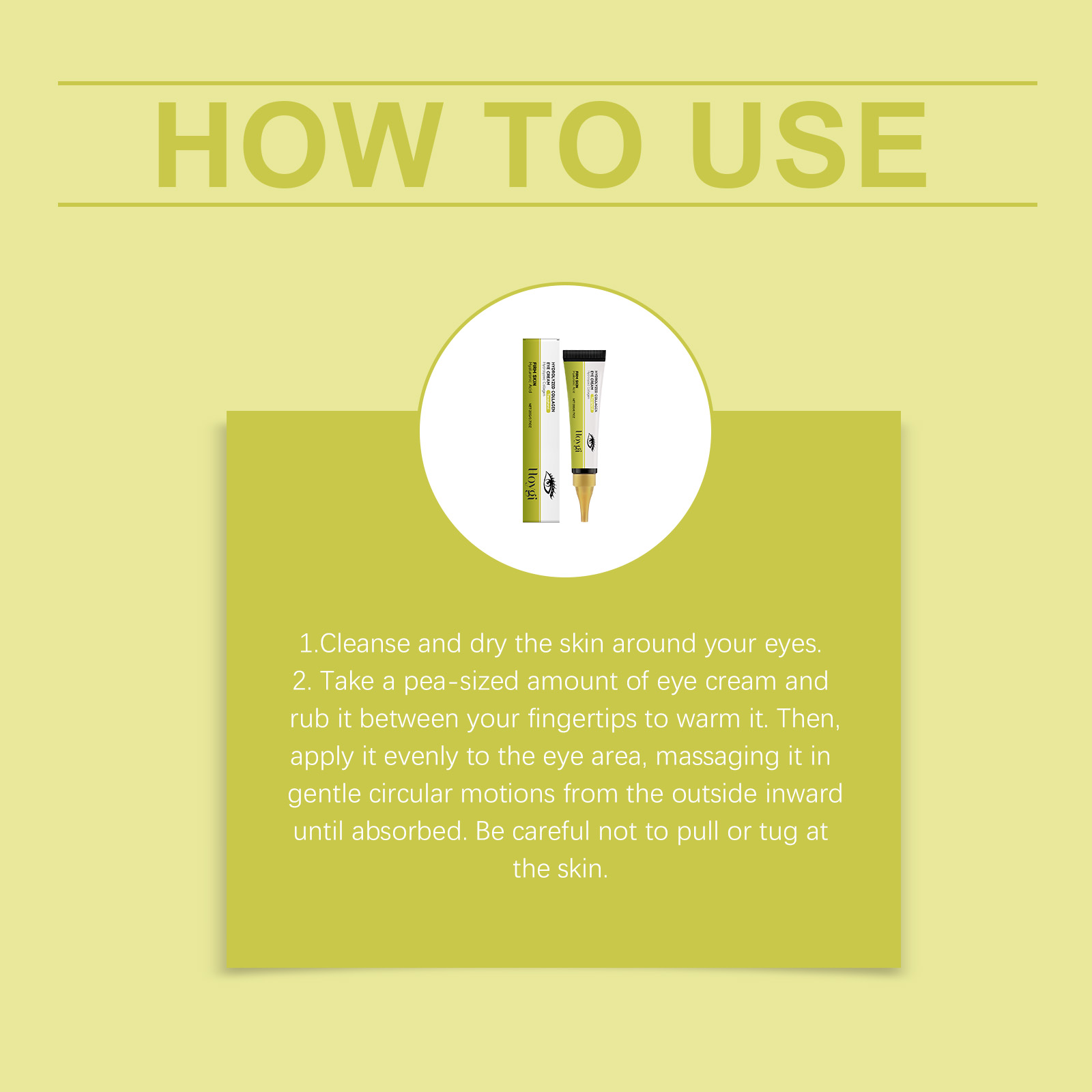 我们的视黄醇眼霜,由透明质酸、水解胶原蛋白精心调配而成。专为定义眼周平滑线条,适合日常护理需求设计。使用方法极为便捷:1.清洁并擦干眼周皮肤。2.取一粒豌豆大小的眼霜,用指尖将其搓热。然后均匀涂抹于眼部区域并以轻柔的圆周运动方式,从外向内轻轻按摩直至完全吸收。注意不要拉扯或牵动皮肤。并且可以减少眼部黑眼圈和疲劳迹象,改善整体肤色。