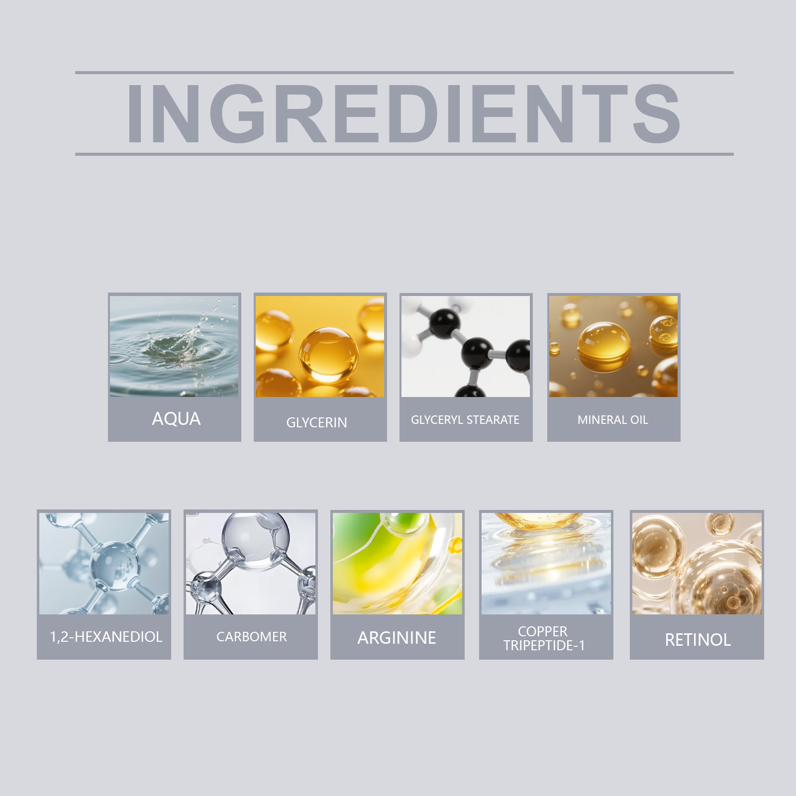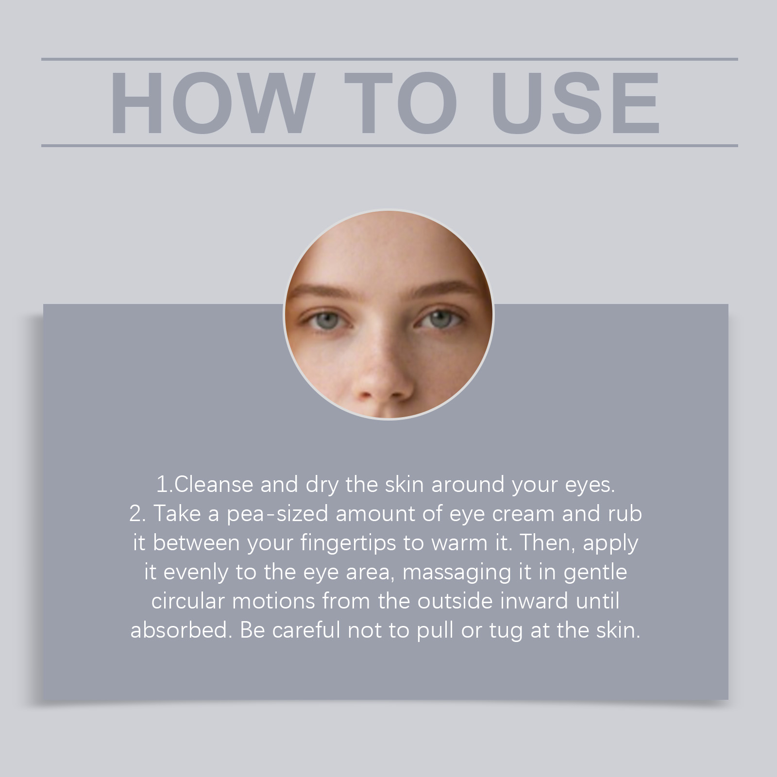 我们的视黄醇保湿眼霜,由精氨酸、视黄醇精心调配而成。专为缓解眼部暗沉,使眼周区域焕发光泽设计。使用方法极为便捷:1.清洁并擦干眼部周围的皮肤。2.取一粒豌豆大小的眼霜,用指尖将其搓热然后均匀涂抹于眼部区域,并以轻柔的圆周运动方式,从外向内轻轻按摩直至完全吸收。注意不要拉扯或牵动皮肤。并且可以长效保湿和滋润,缓解干燥和不适。