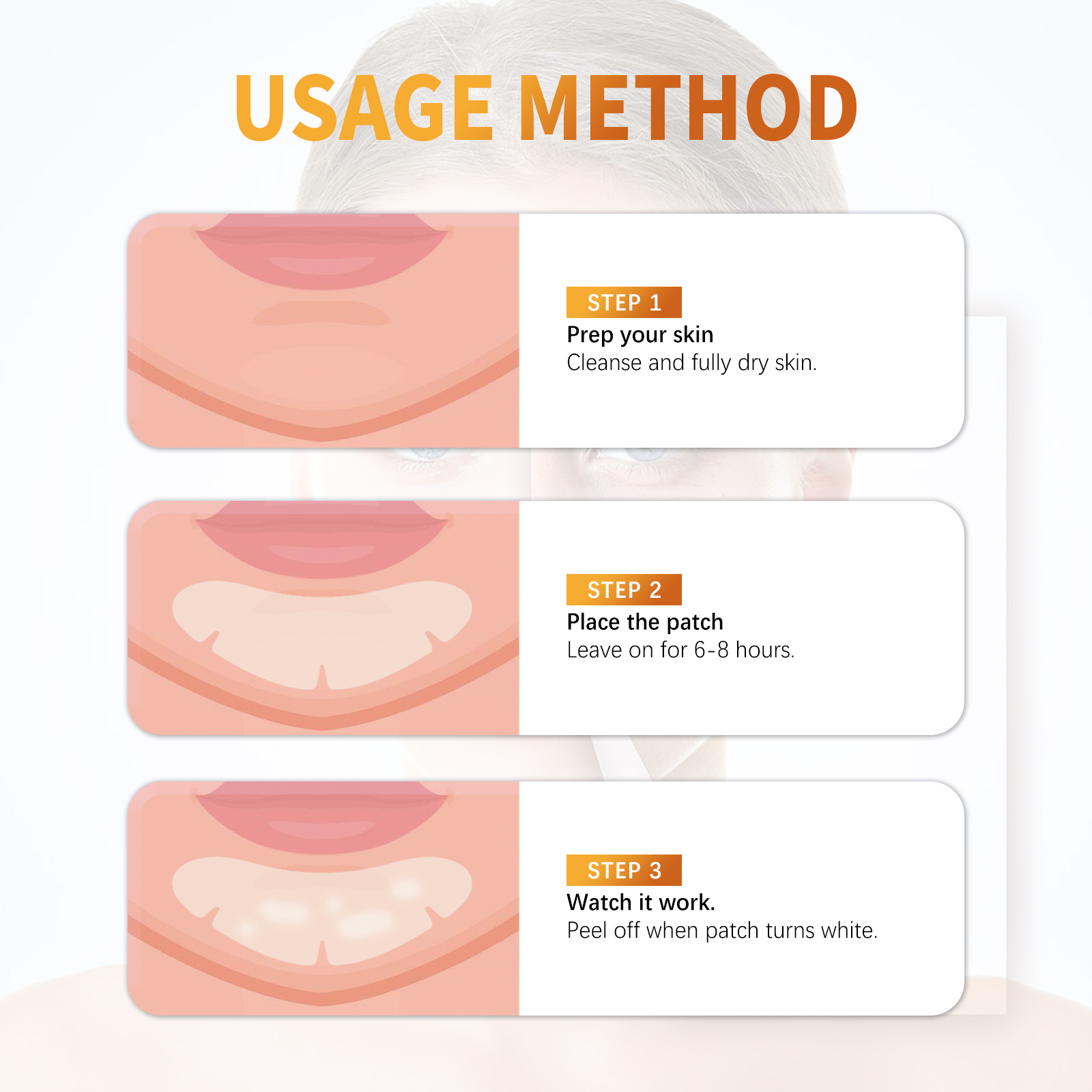 我们的下巴痘痘贴含有水胶体。它可以全覆盖的下巴贴片,吸收痘痘黏液,减少痤疮。继续保护皮肤·免受外部细菌侵害,祛痘快,吸收速度快。它的使用方法很简单:做好皮肤准备,清洁和完全干燥皮肤;放置贴片,静置6-8小时;当斑块变白时剥落。抚平痘痘,去除痘痘、粉刺,帮助吸收油脂杂质。
