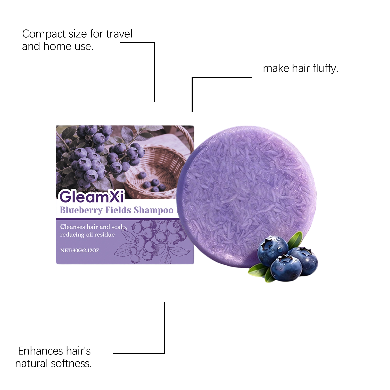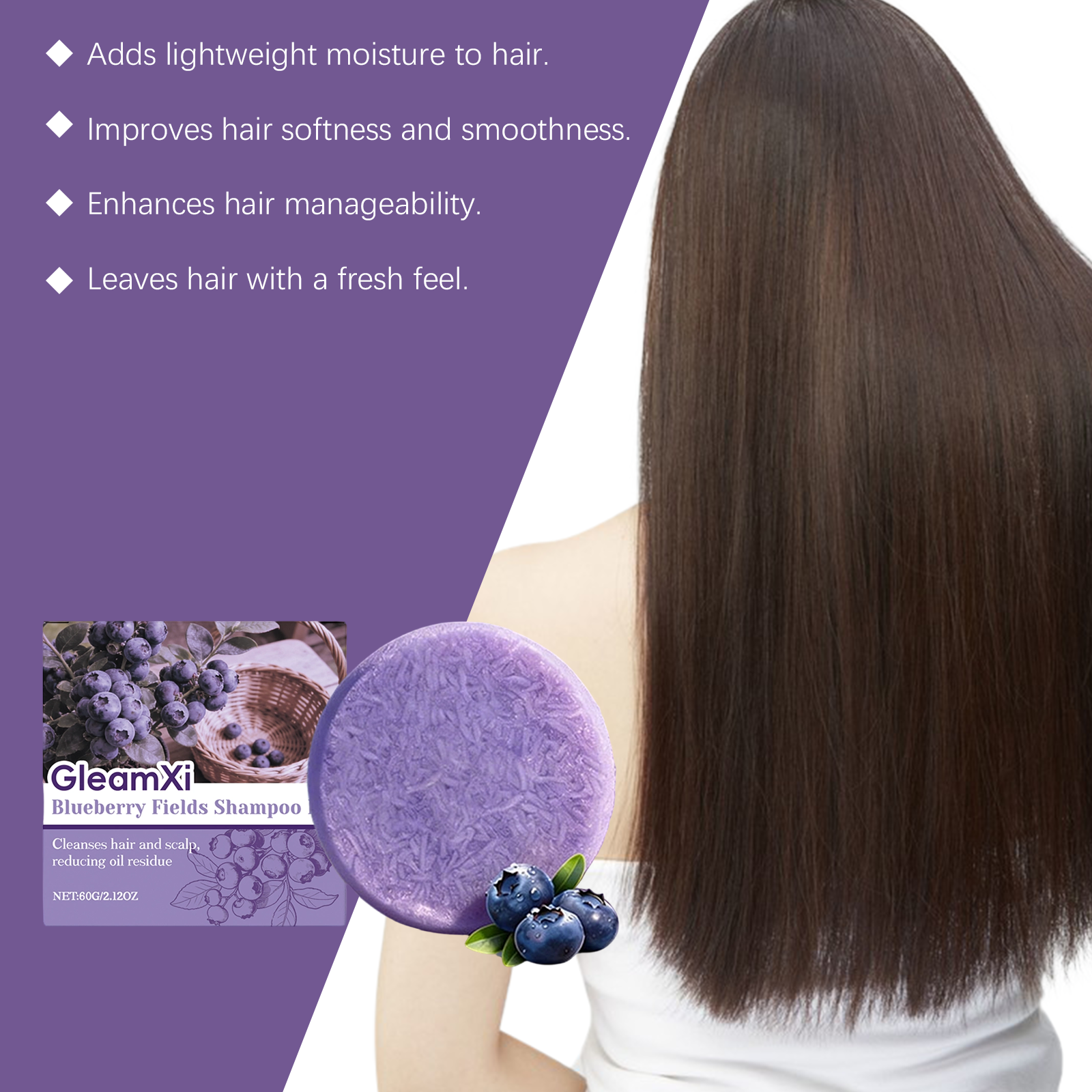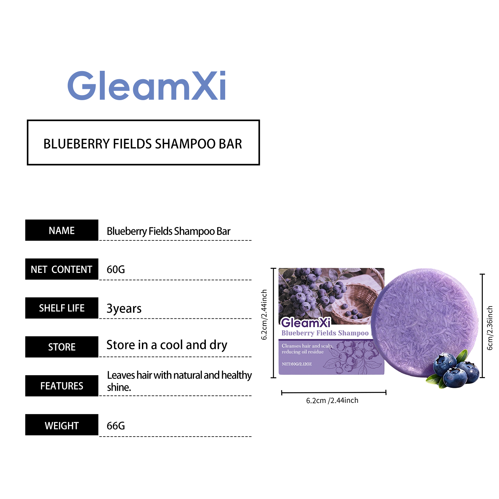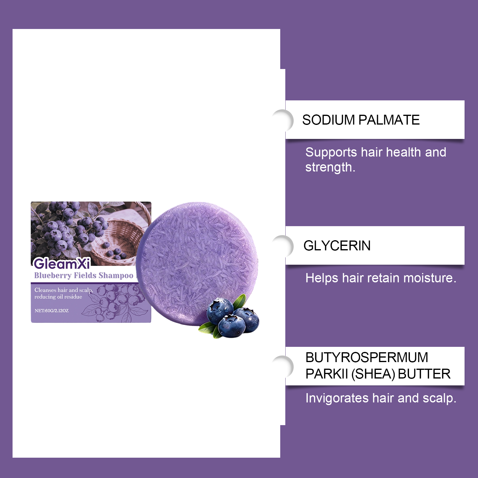 GleamXi Blueberry Country Shampoo Bar - Daily Gentle Cleansing For Scalp Care, Shiny Hair Shampoo