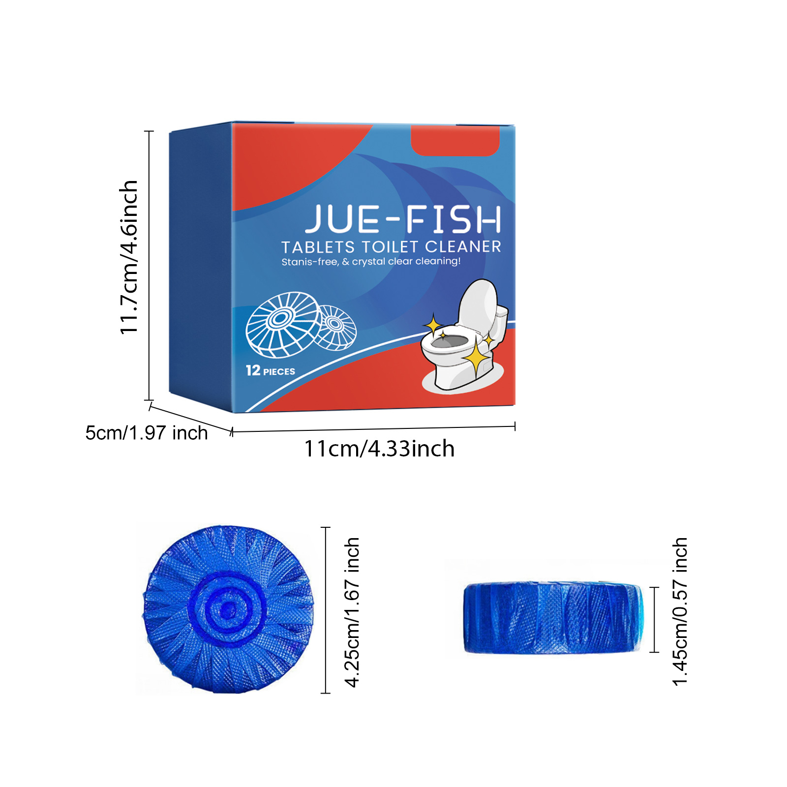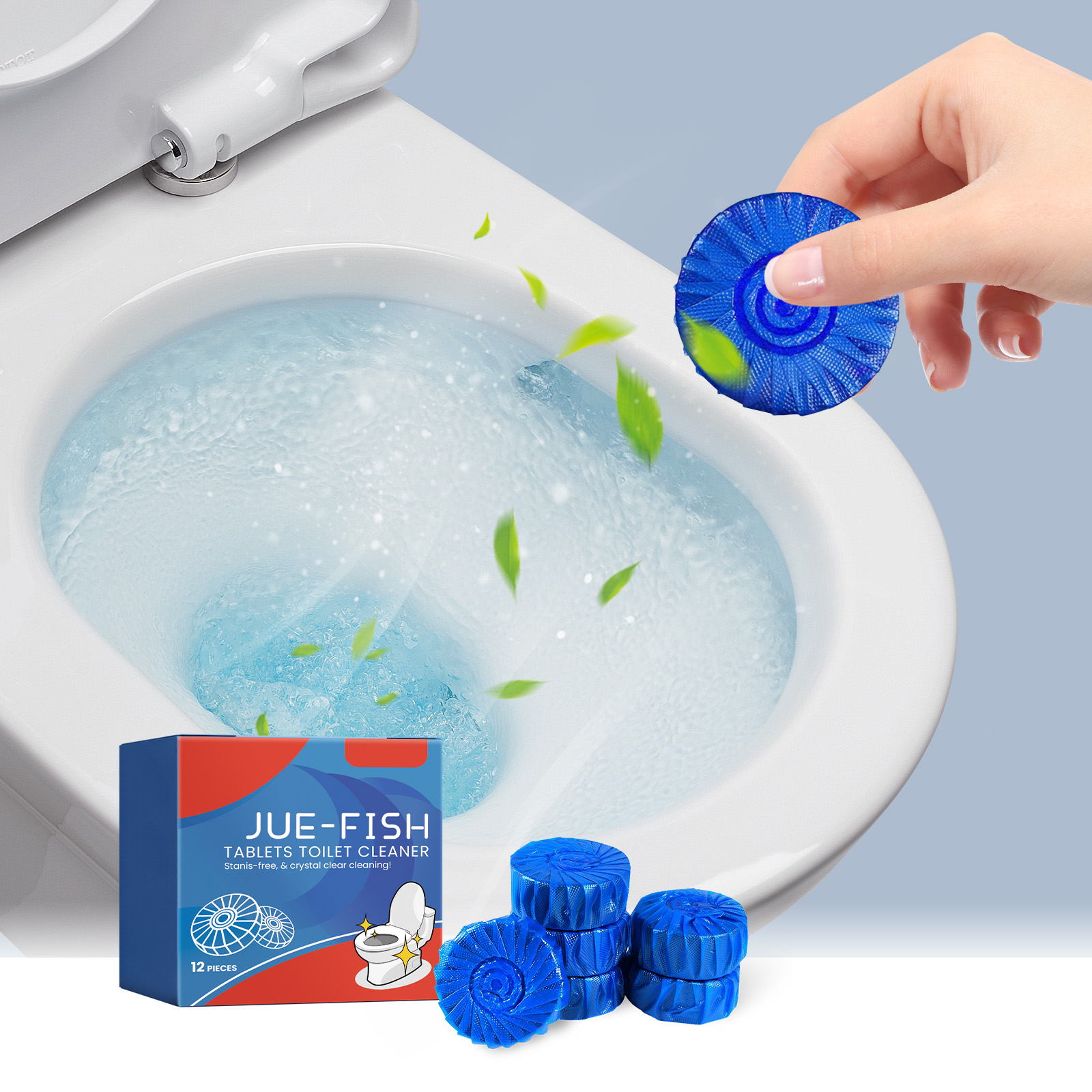 Jue-Fish Toilet Cleaner Tablet, Household Toilet Seat Cleaning, Descaling, Deodorizing, Spoiling, Scented Toilet Cleaning Tablets