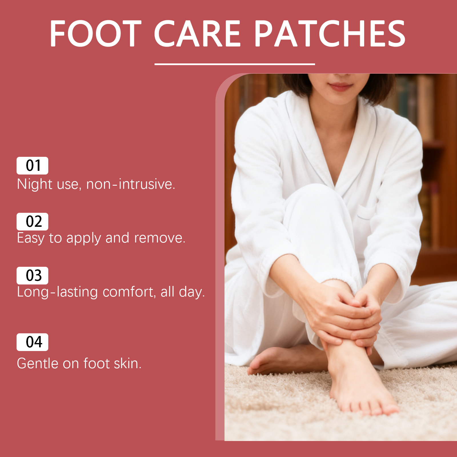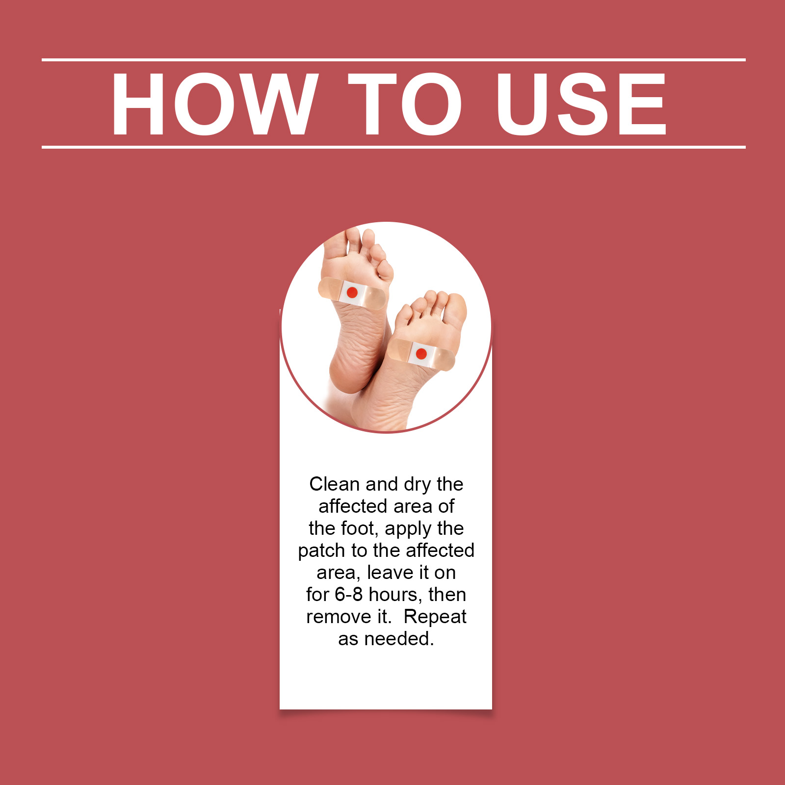 我们的足部护理贴,由水杨酸、互生叶白千层提取物精心调配而成。专为有效缓解足部疲劳设计。使用方法极为便捷:清洁并擦干脚部患处,将贴片贴于患处,保持6-8小时后取下。根据需要重复使用。并且可以减少不愉快的脚臭。