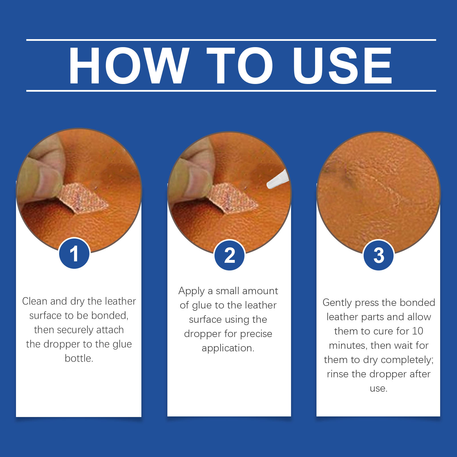 我们的皮革胶水,由叔丁基酚醛树脂, 氧化锌精心调配而成。专为确保皮革和织物牢固粘附,不易脱落设计。使用方法极为便捷:清洁并擦干待粘合的皮革表面,然后将滴管牢固地安装到胶水瓶上。使用滴管在皮革表面涂抹少量胶水,以实现精准粘合。轻轻按压粘合的皮革部分,让其固化10分钟,然后等待完全干燥;使用后冲洗滴管。并且它经过特殊配方处理后,具有强效防水性能,并能有效保护修复后的物品。
