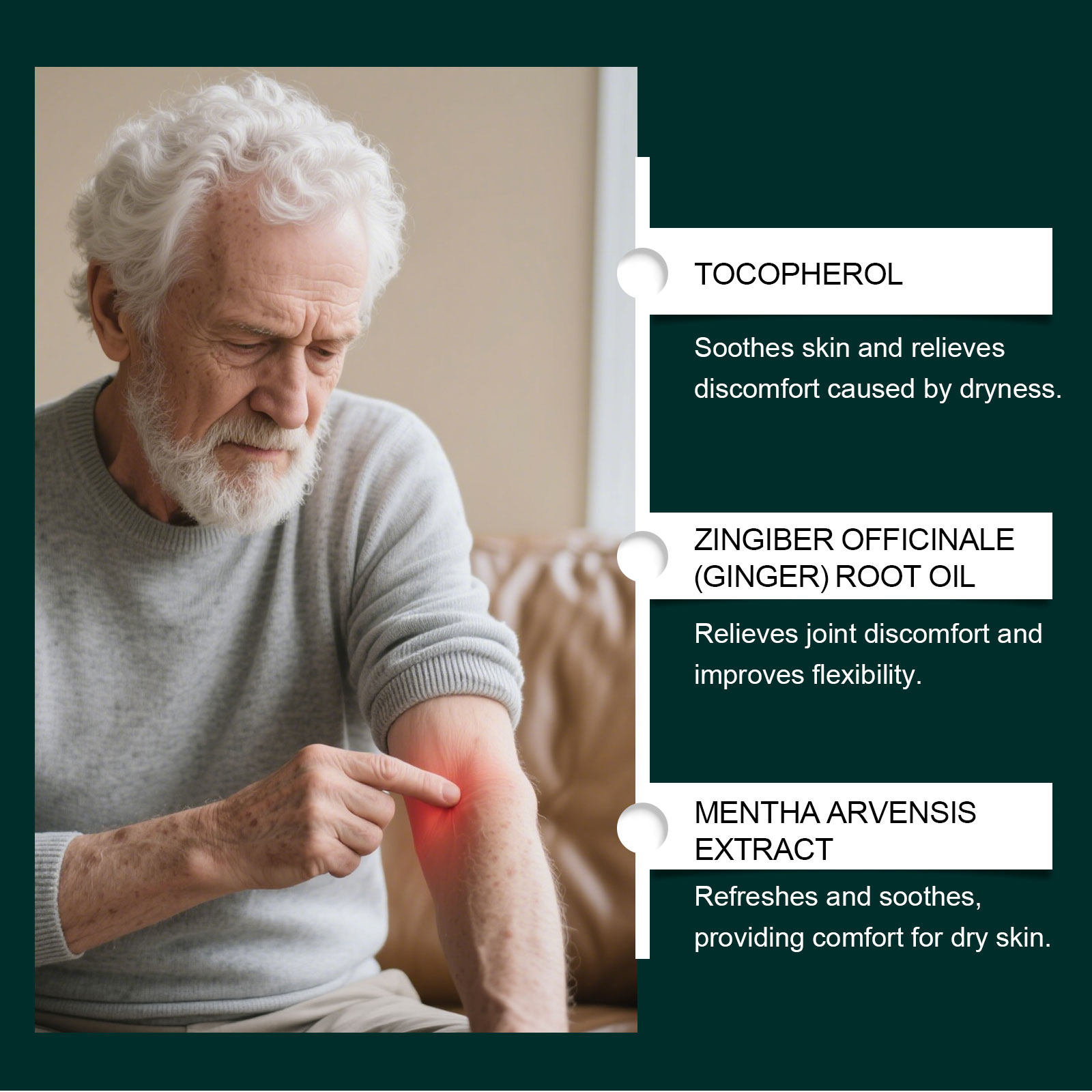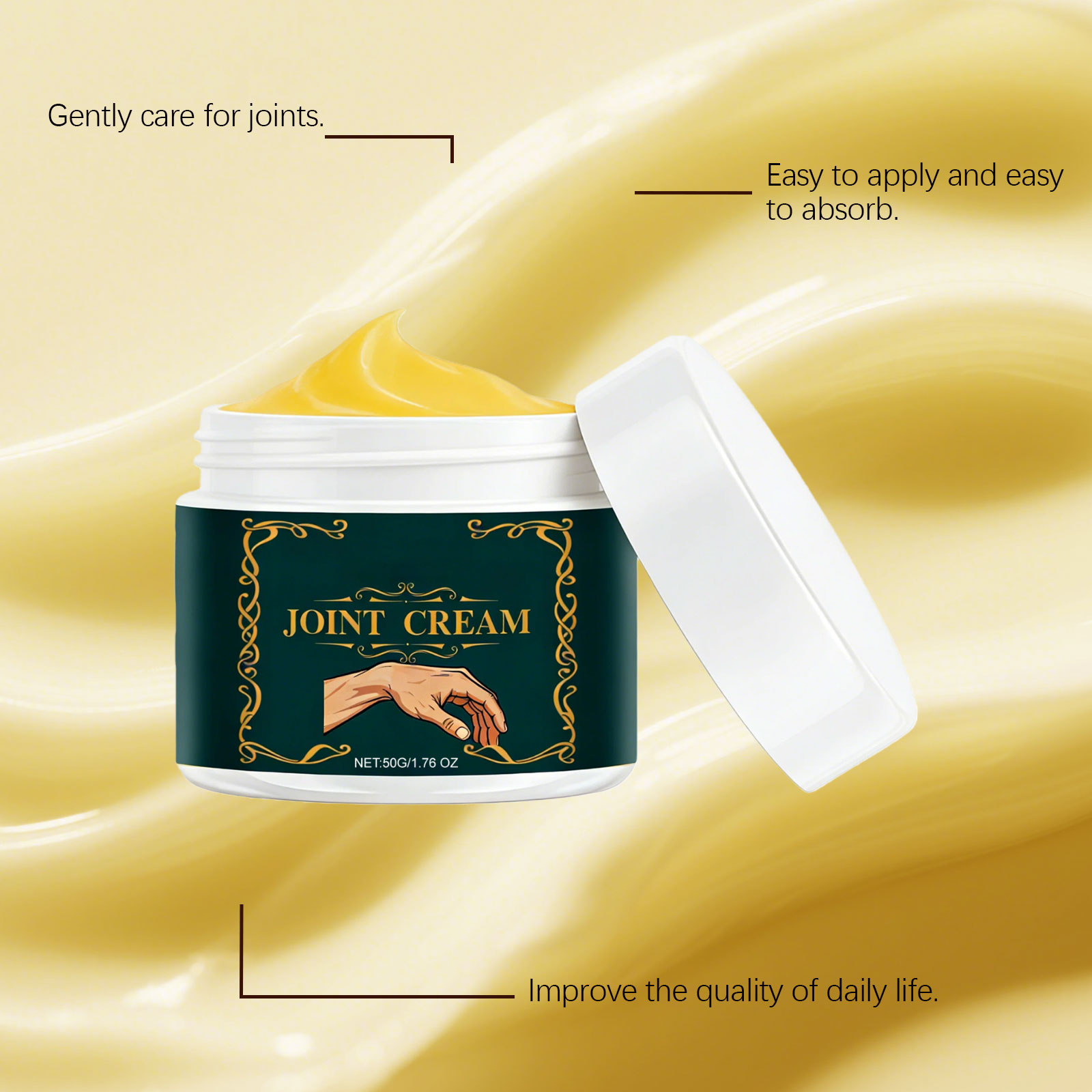 我们的关节护理霜,由田野薄荷提取物、姜根油精心调配而成。专为温和缓解关节不适设计。使用方法极为便捷:清洁并擦干皮肤,取适量本品涂抹于患处关节,并轻轻按摩至吸收。并且能帮助关节恢复灵活性。