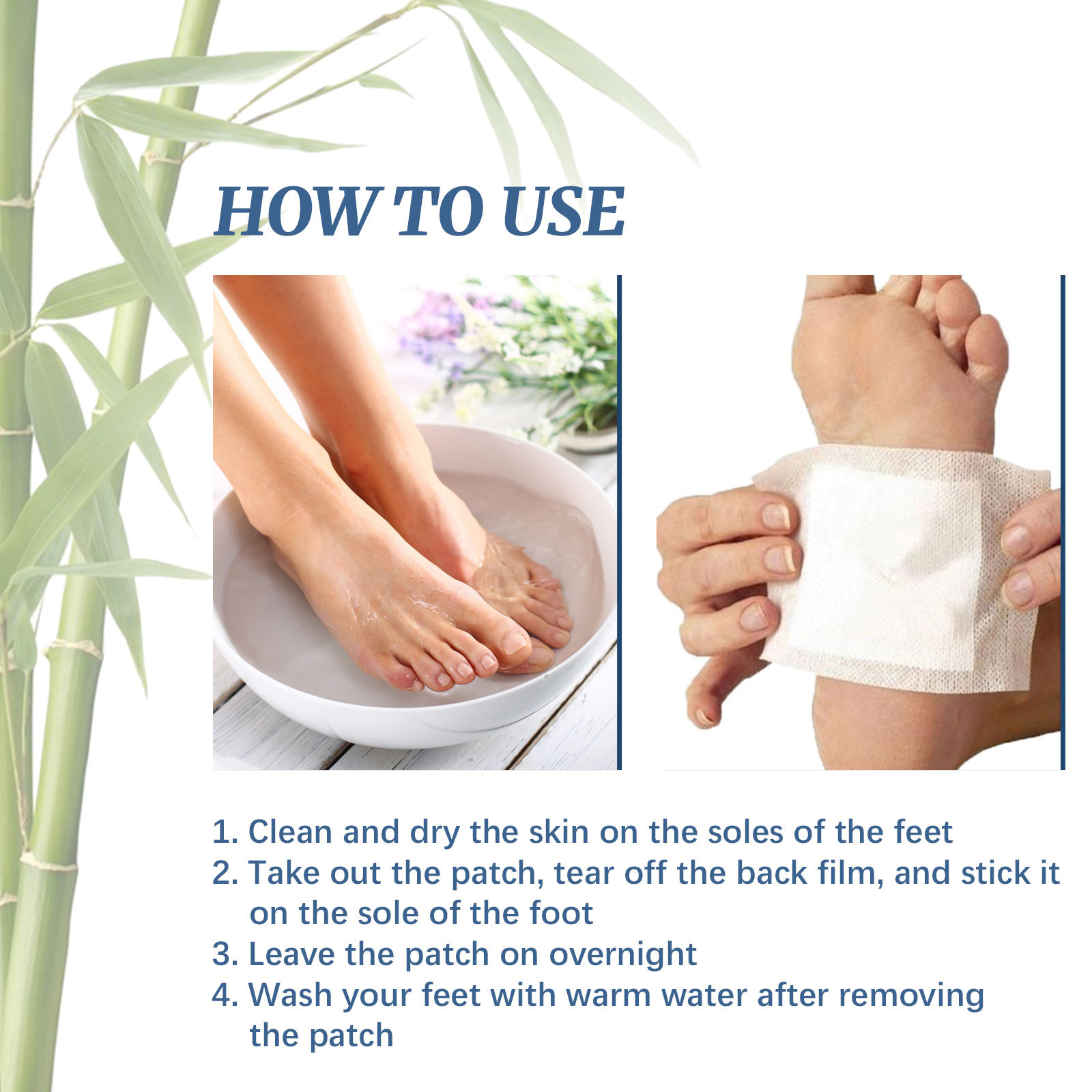我们的深层清洁足垫含有薄荷粉、枇杷叶、鱼腥草。它可以清洁并滋润脚底肌肤,减少异味,营造健康洁净的足部环境,适合各种肤质。它的使用方法很简单:首先清洁并擦干脚底皮肤,之后拿出贴片,撕掉背面贴膜,贴在脚底,把贴片贴一晚上,最后取下贴片后用温水洗脚,有利于减轻足部肿胀,缓解不适,缓解足部疲劳,放松整个身心,植物成分有助于排出体内杂质,加强体内循环,强身健体。
