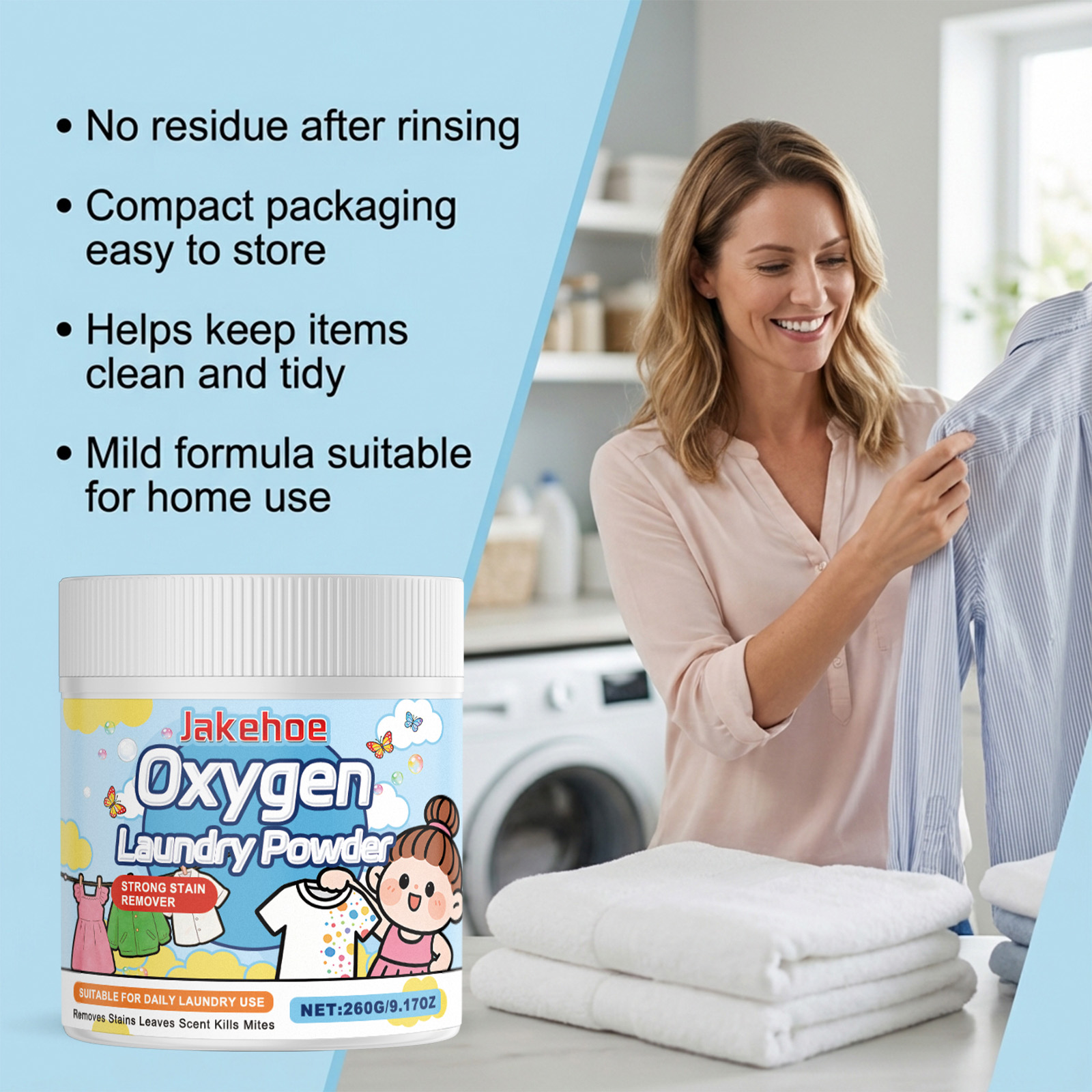 Jakehoe Laundry Detergent Powder With A Mild Formula Is A Daily Household Cleaning Powder For Removing Stains And Leaving A Fresh And Fragrant Scent
