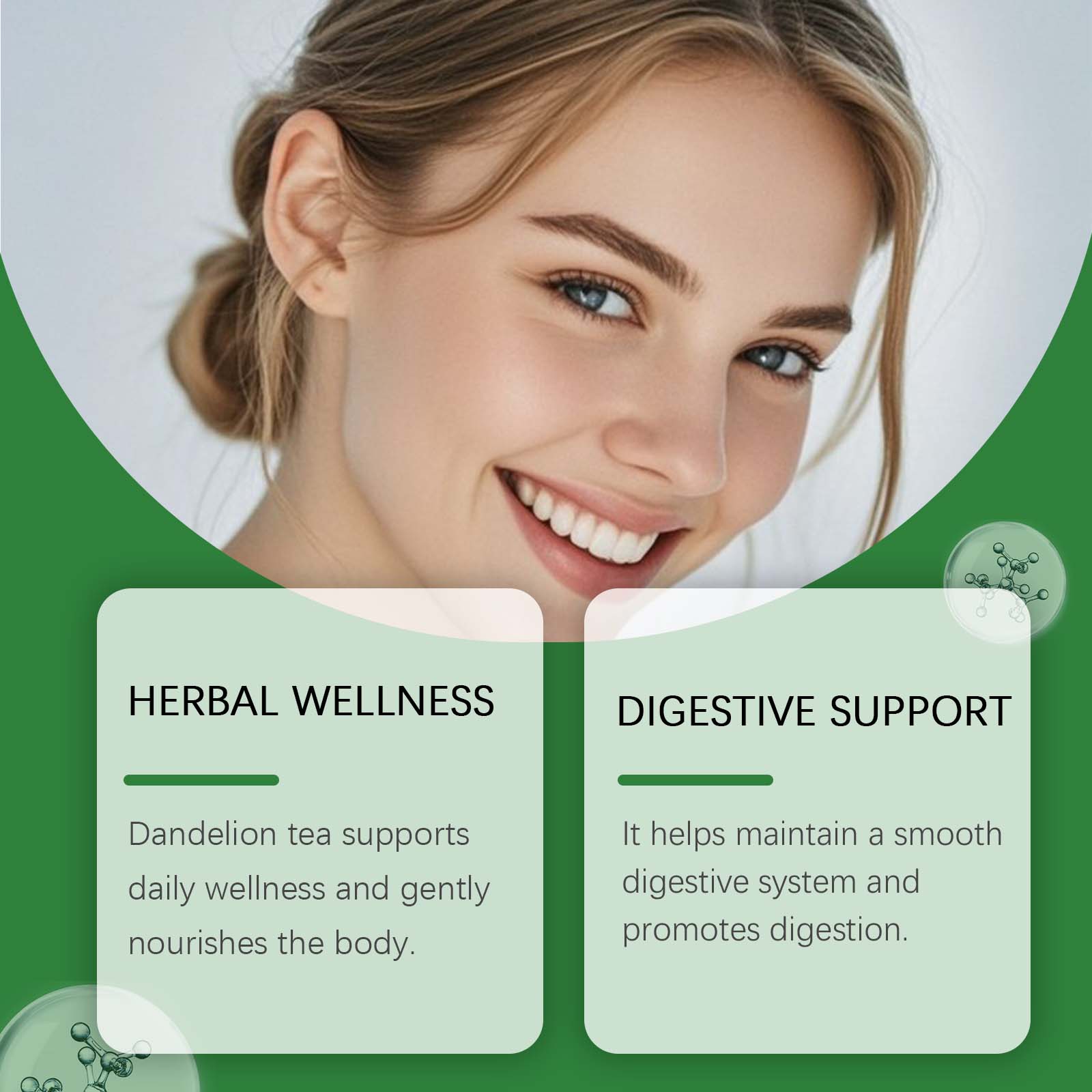我们的蒲公英叶根能量茶,由蒲公英叶、蒲公英根精心调配而成。专为支持日常健康并温和滋养身体设计。使用方法极为便捷:打开盒子,将茶包放入杯中。将水煮至约90℃,倒入杯中浸泡茶包。浸泡3-5分钟,享受芳香茶。并且它有助于维持顺畅的消化系统并促进消化。