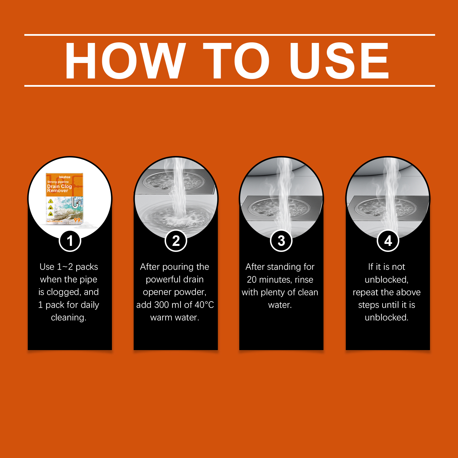 Jakehoe Pipe cleaning powder - Cleans and removes grease from kitchen and bathroom drains, eliminates odors, prevents blockages, and keeps the area fresh daily.