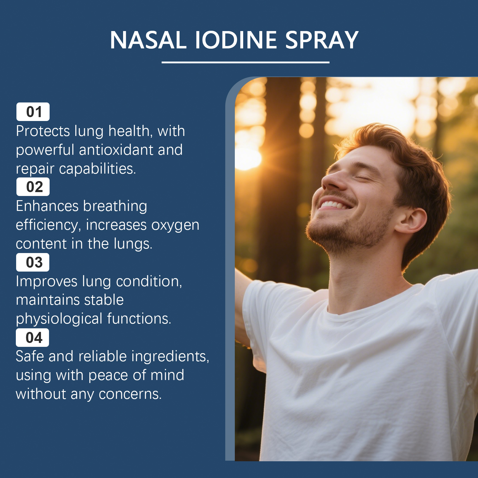 我们的鼻部护理喷雾剂,由甘油、氯化钠精心调配而成。专为肺部提供抗氧化修复,增强健康防御线设计。使用方法极为便捷:清洁并保持鼻腔干燥,均匀摇晃产品,打开瓶盖将喷嘴插入鼻孔,轻轻按压喷雾1-2次。并且可以增加氧气供应和效率,使呼吸更顺畅、更轻松。