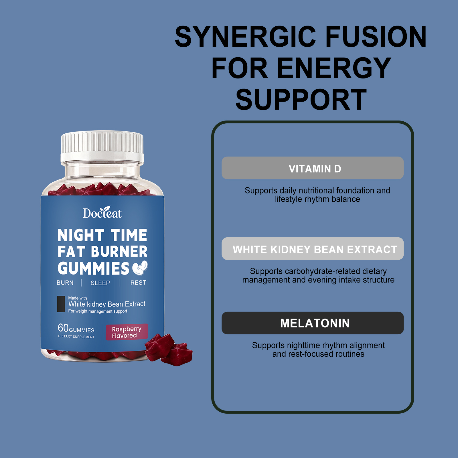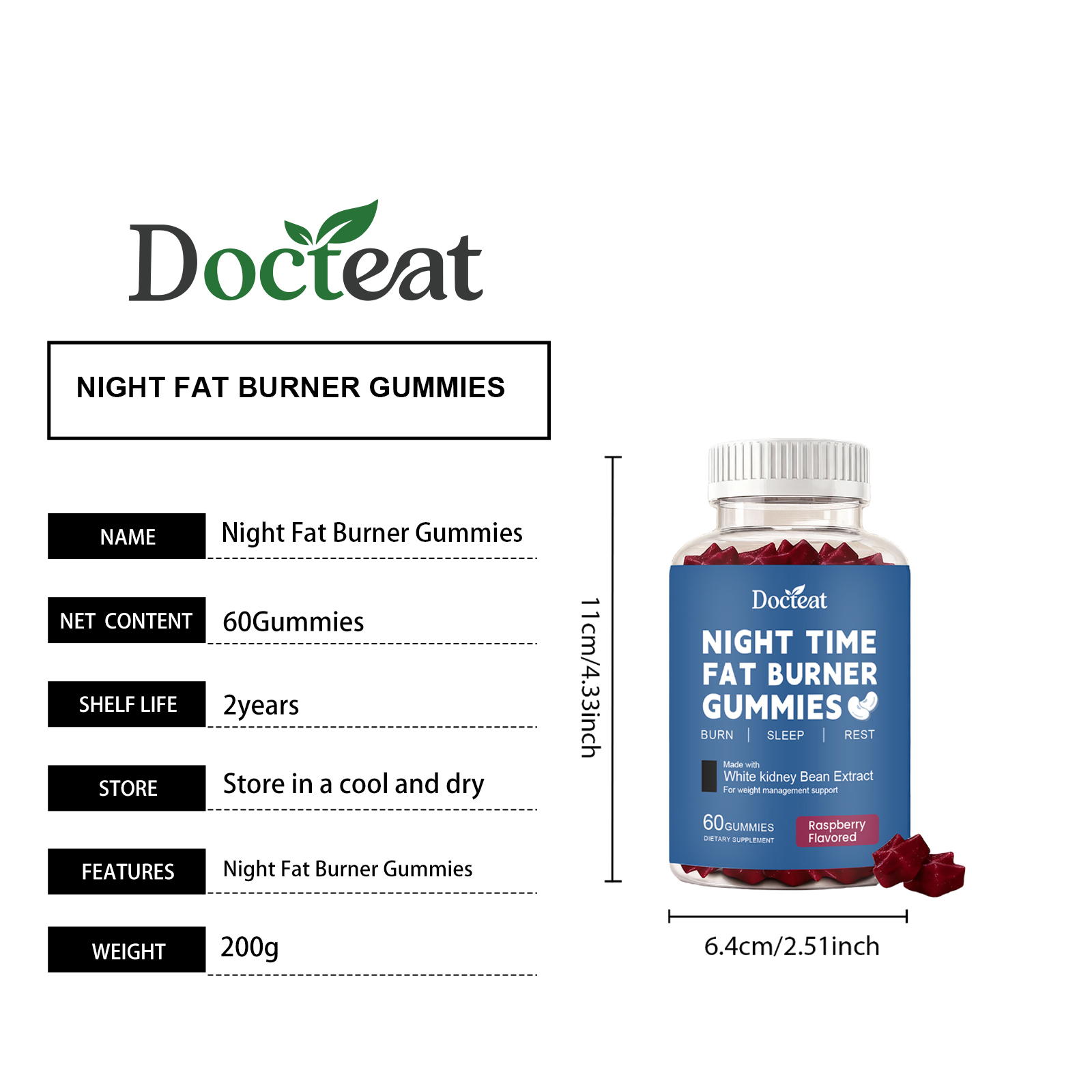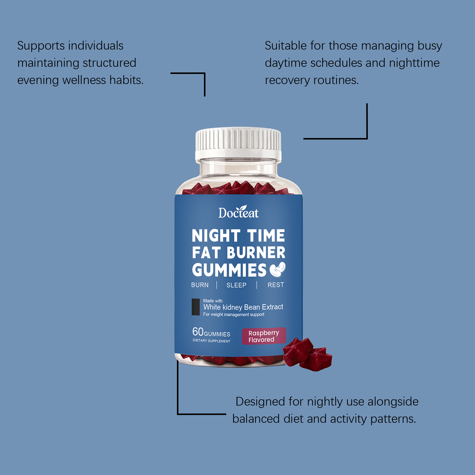 Docteat Night Care Gummy Candies, Daily Dietary Supplementation, Light Body Shape, Comfortable Posture, Sleep Nutrition Gummy Candies