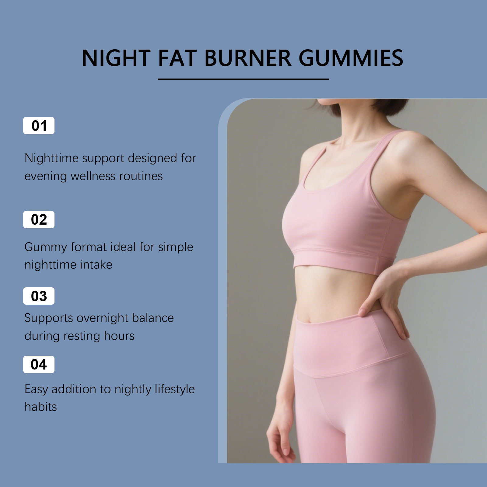 我们的夜间护理软糖,由维生素D、白芸豆提取物精心调配而成。专为支持日常营养基础与夜间生活节律管理设计。使用方法极为便捷:每日服用一次,一次 2 粒软糖。并且它可以支持夜间作息节律与休息阶段的规律性。