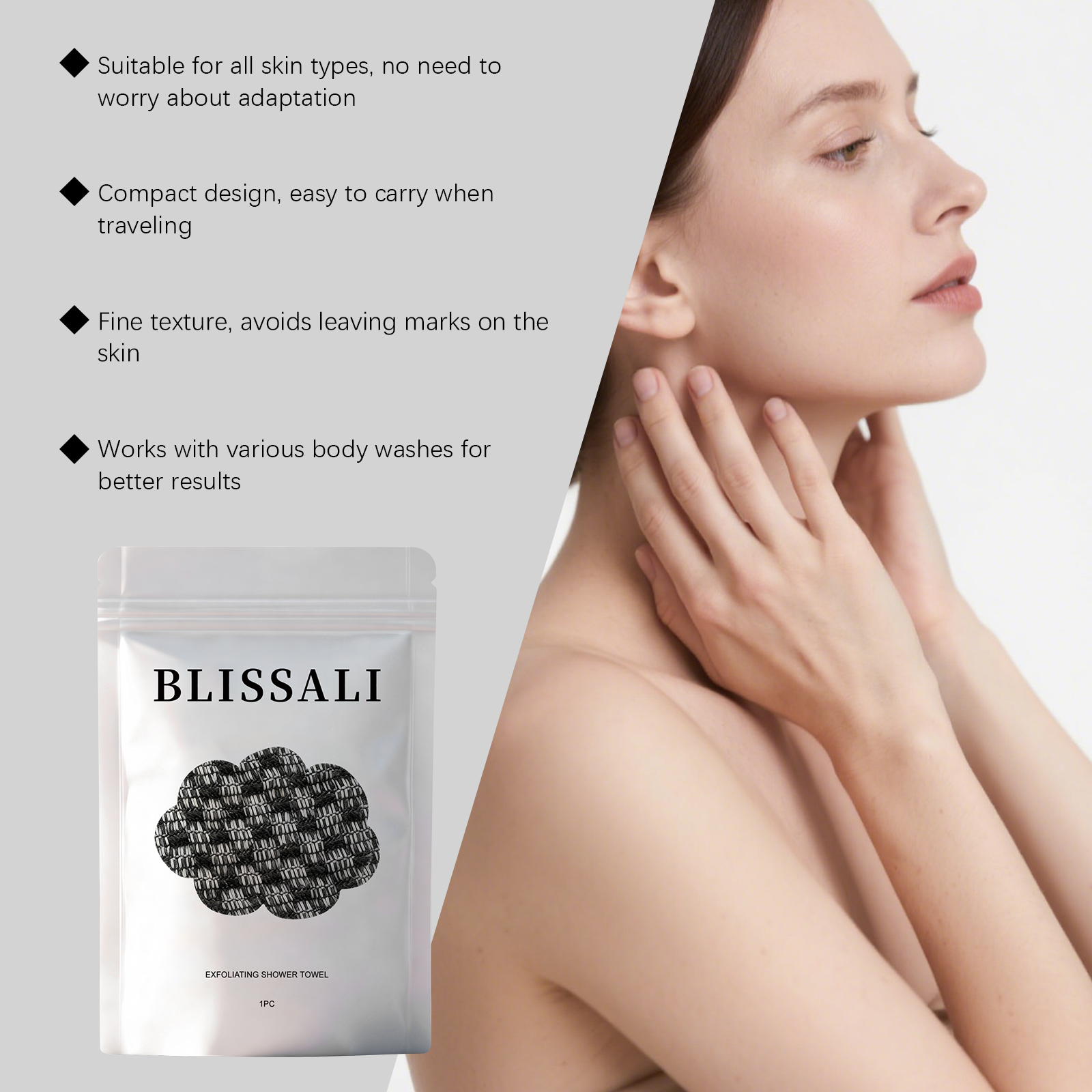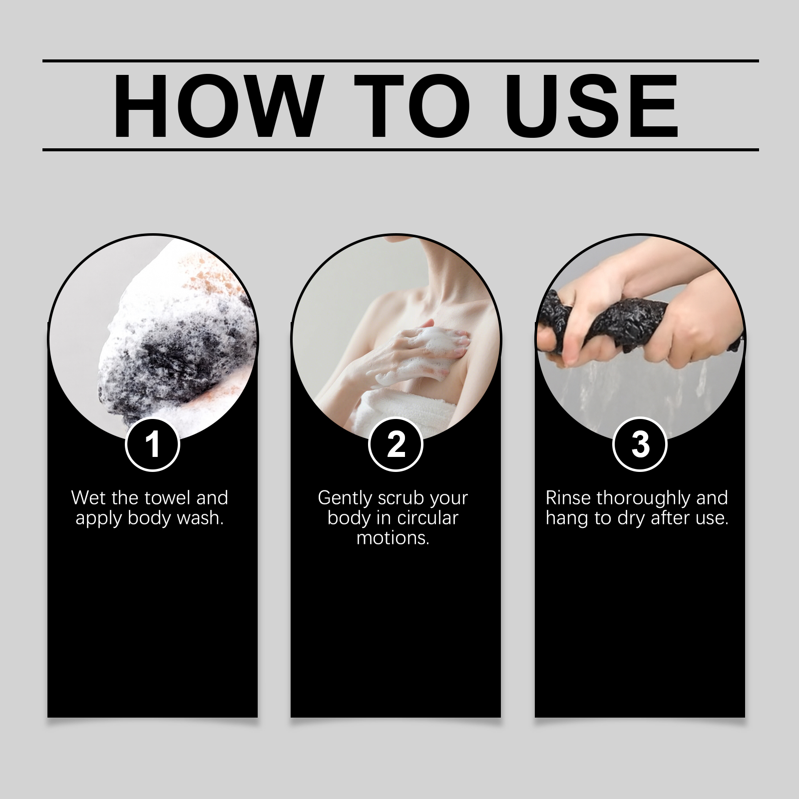 我们的身体清洁浴巾,由涤纶,碳纤维精心制作而成。专为去除身体杂质设计。使用方法极为便捷:将毛巾打湿并涂抹沐浴露。以打圈方式轻柔搓洗身体。使用后彻底冲洗并悬挂晾干。并且不伤皮肤,触感温和。