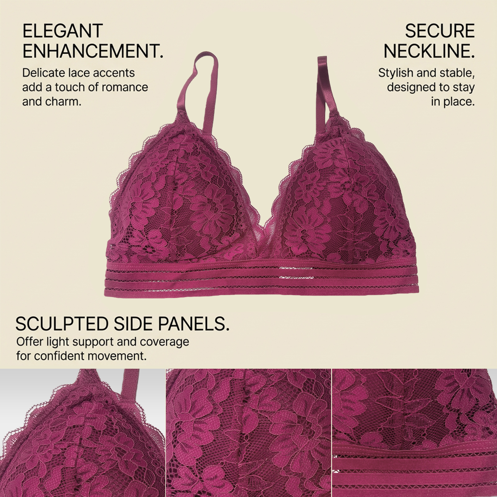 我们的蕾丝薄款聚拢内衣,由90%聚酰胺、10%氨纶精心制作而成。专为时尚且稳固,设计确保贴合不移位设计。并且它的精致蕾丝点缀增添一抹浪漫与魅力。