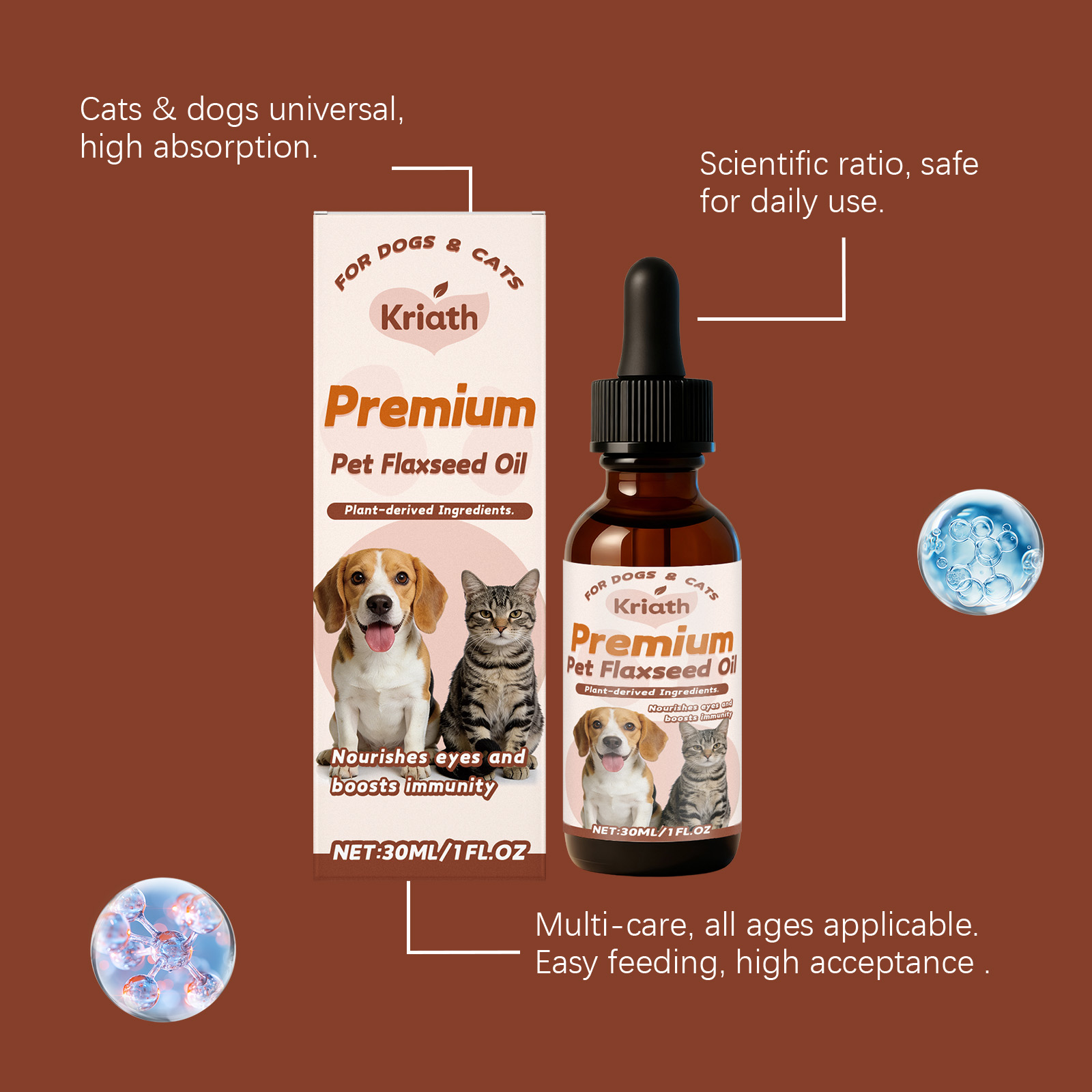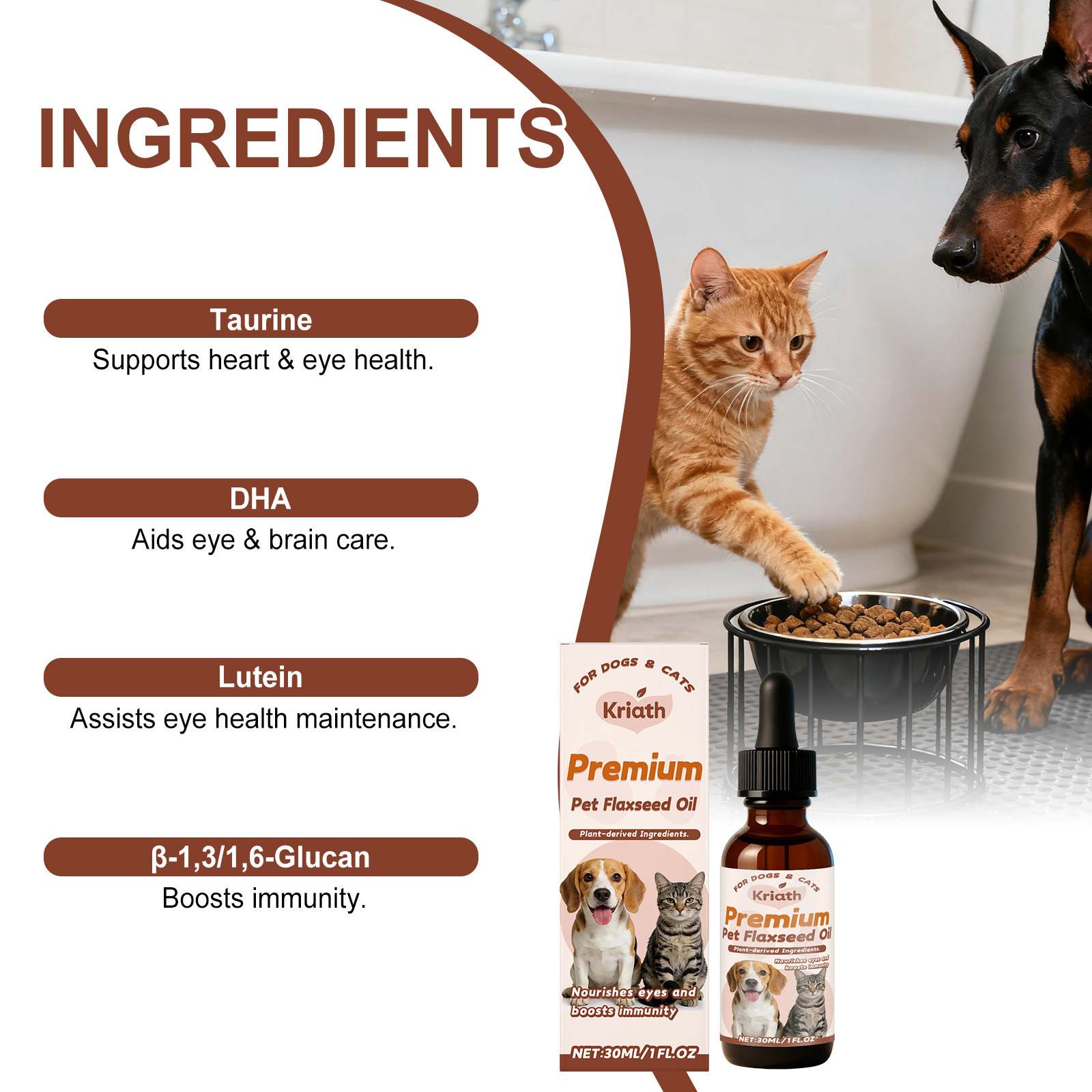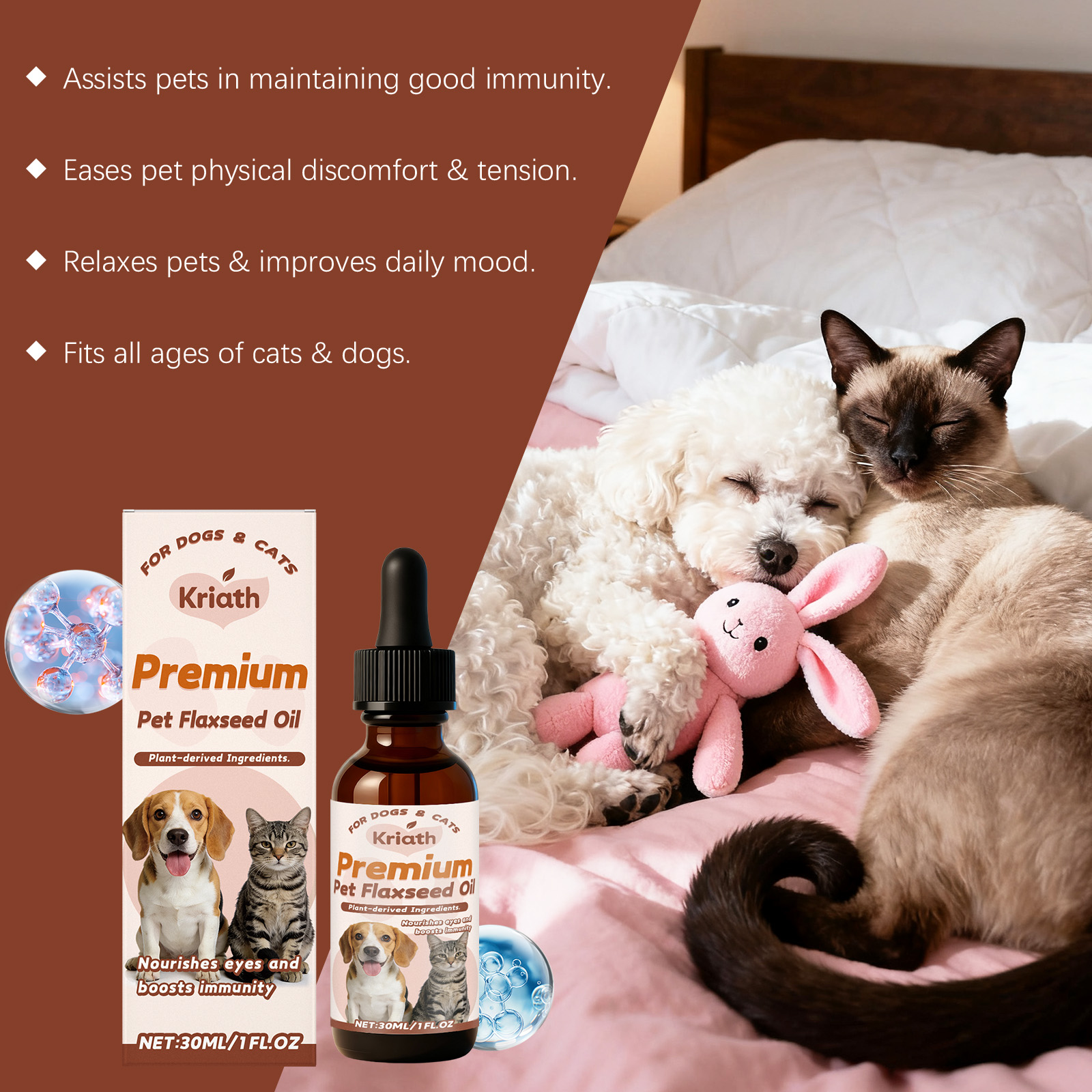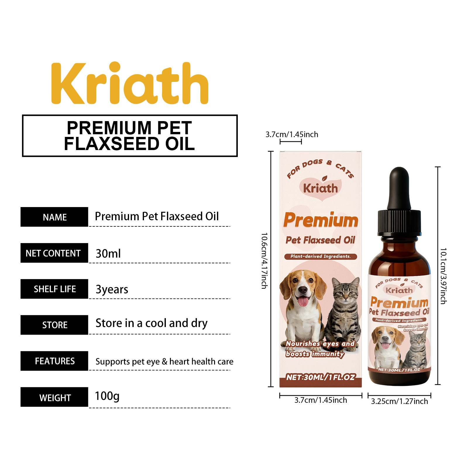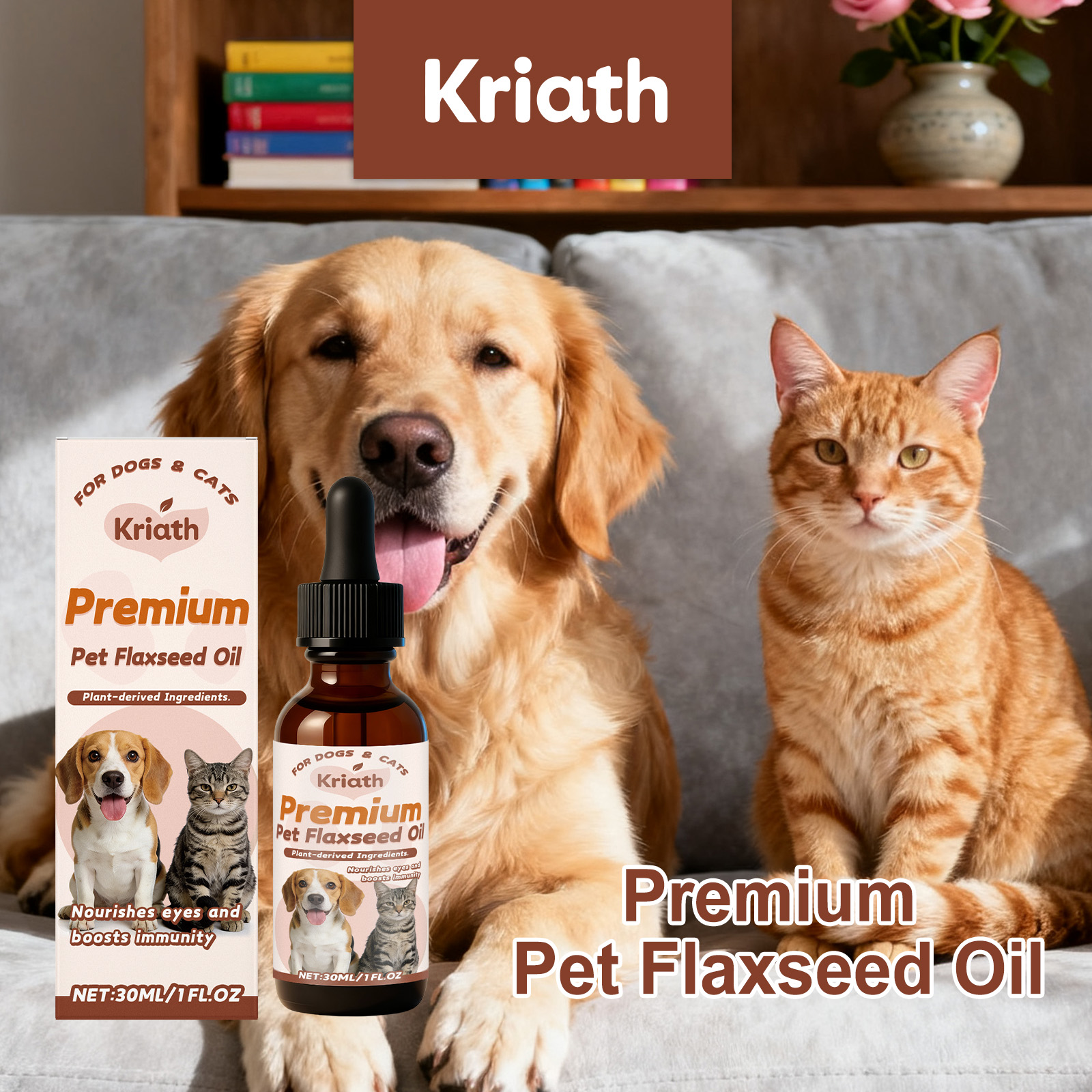 Kriath Pet Flaxseed Oil Nutrient Liquid, A Universal Comfort Care Liquid For Dogs And Cats