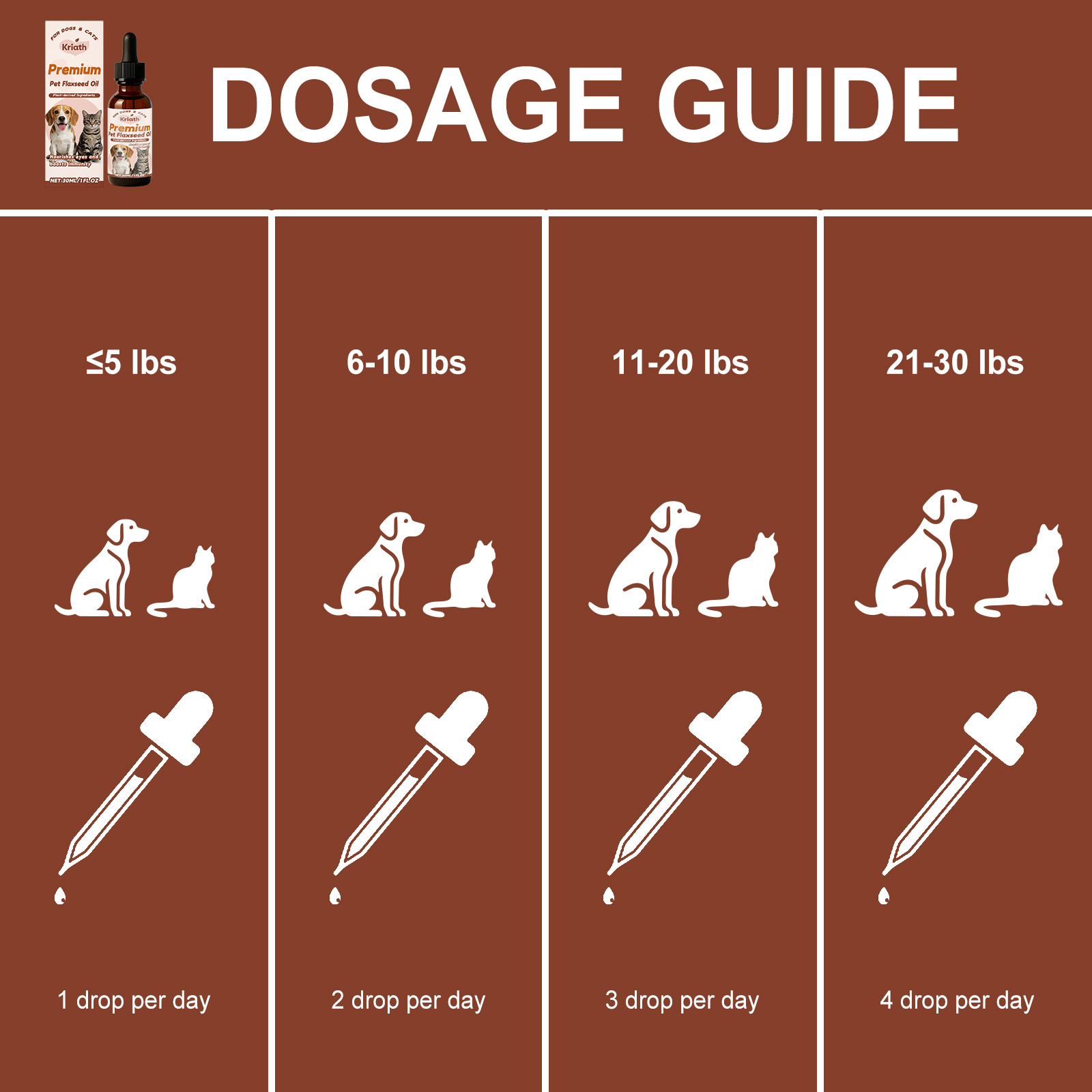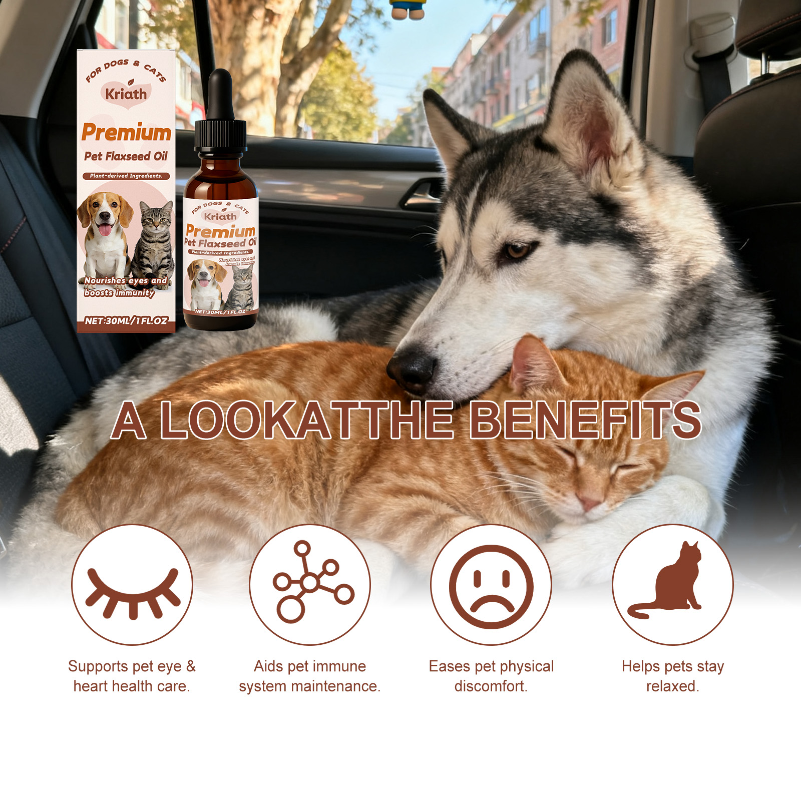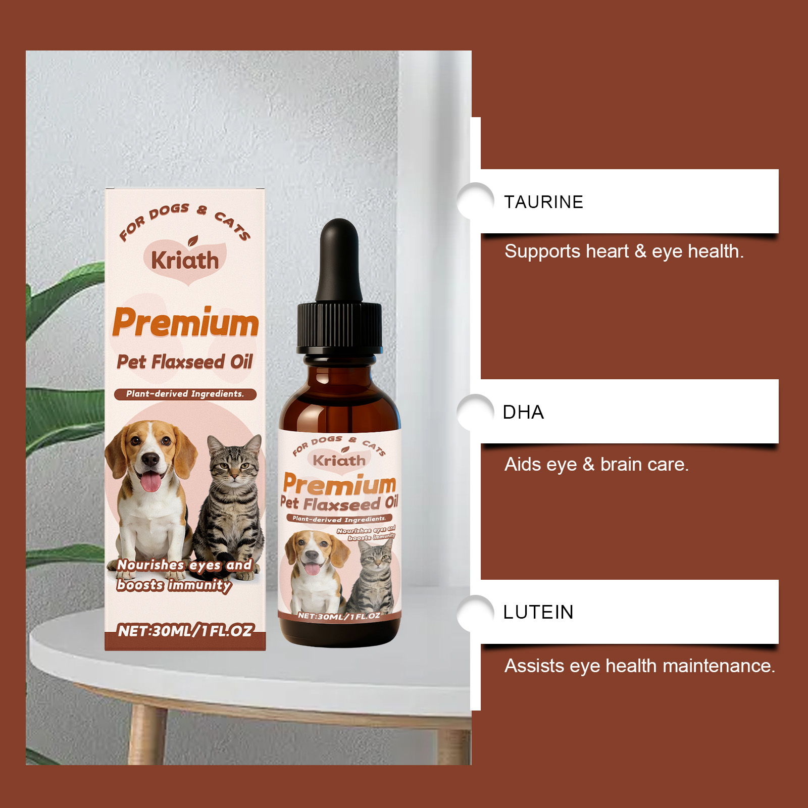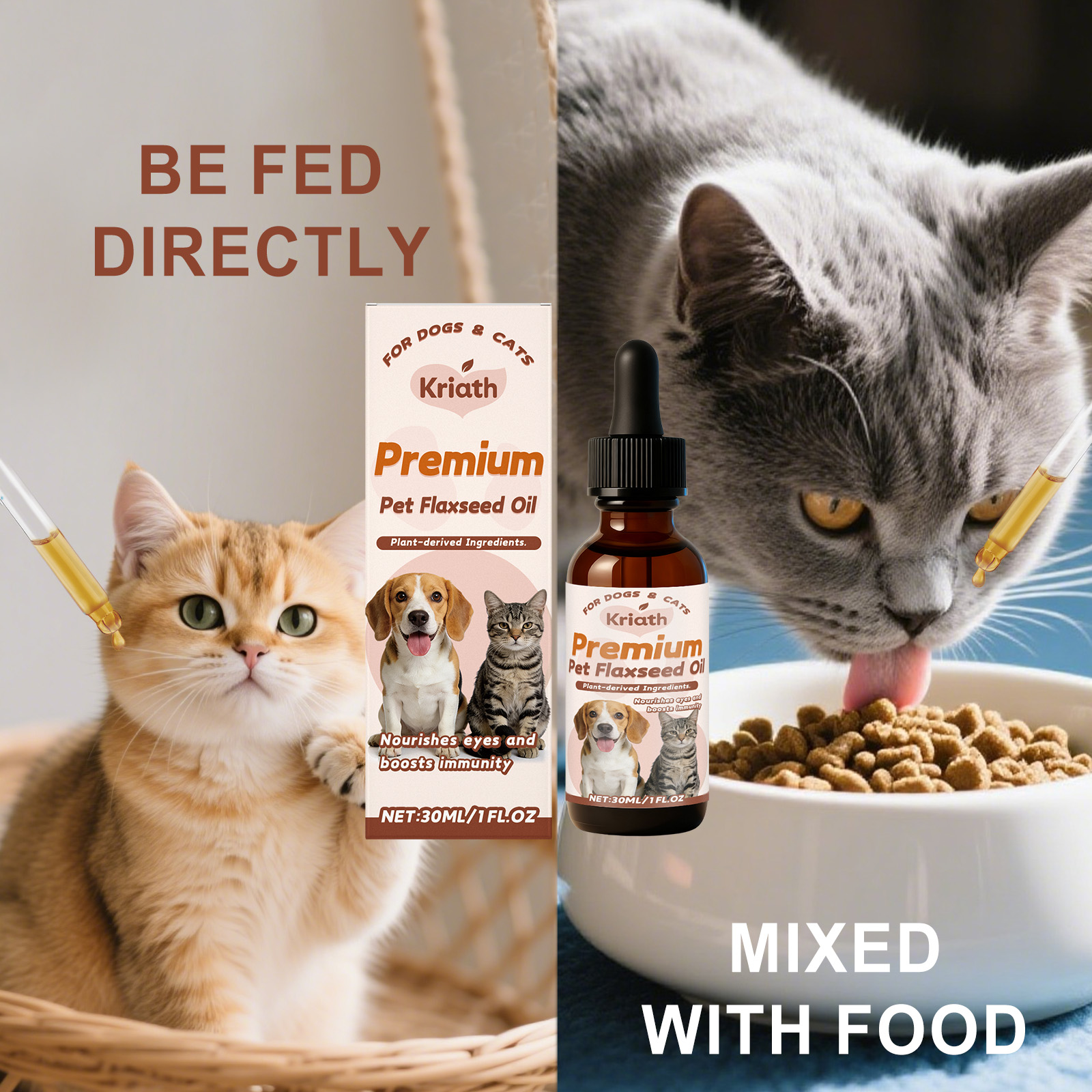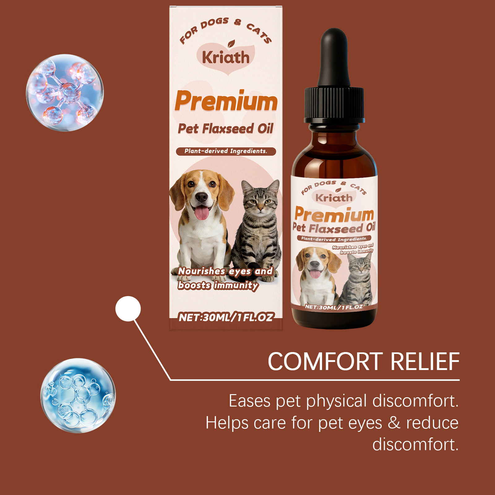 Kriath Pet Flaxseed Oil Nutrient Liquid, A Universal Comfort Care Liquid For Dogs And Cats