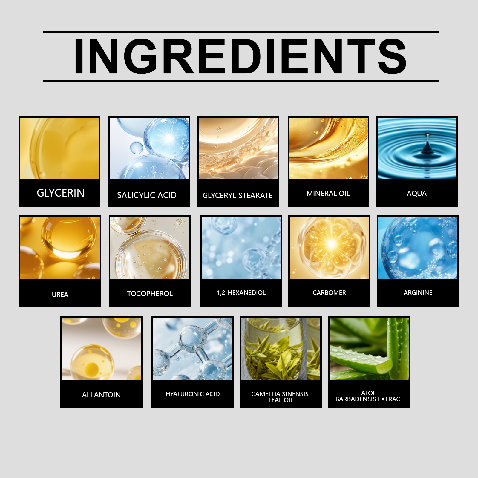 我们的保湿乳霜,由尿素、矿油精心调配而成。专为有助于净化和去除皮肤角质,去除干燥、开裂、粗糙和老化的皮肤,让手足部肌肤恢复平滑设计。使用方法极为便捷:1.清洁肌肤并保持干燥。2.取适量本品均匀涂抹在足部、腿部、手部等部位肌肤。3.轻柔按摩促进吸收即可。并且它能够滋润肌肤,让肌肤保持水润状态,减少皮肤鸡眼和皲裂的情况,采用温和成分,适合所有肤质人群使用。