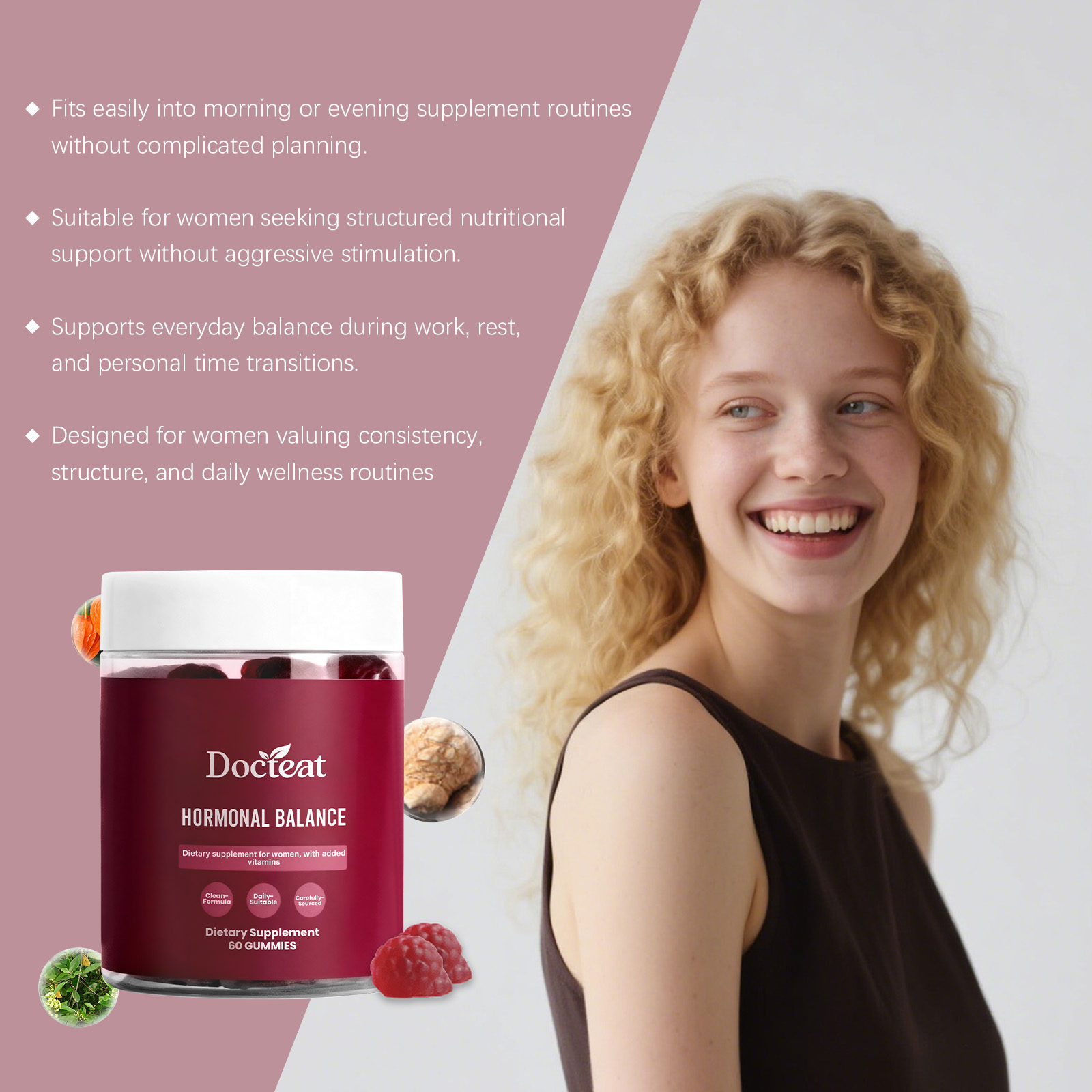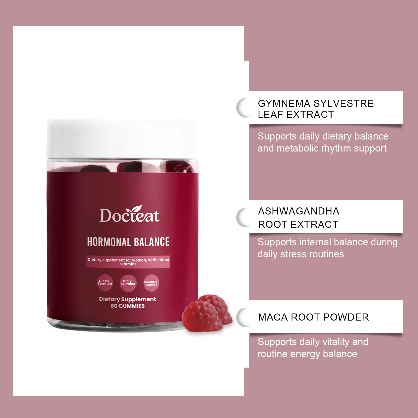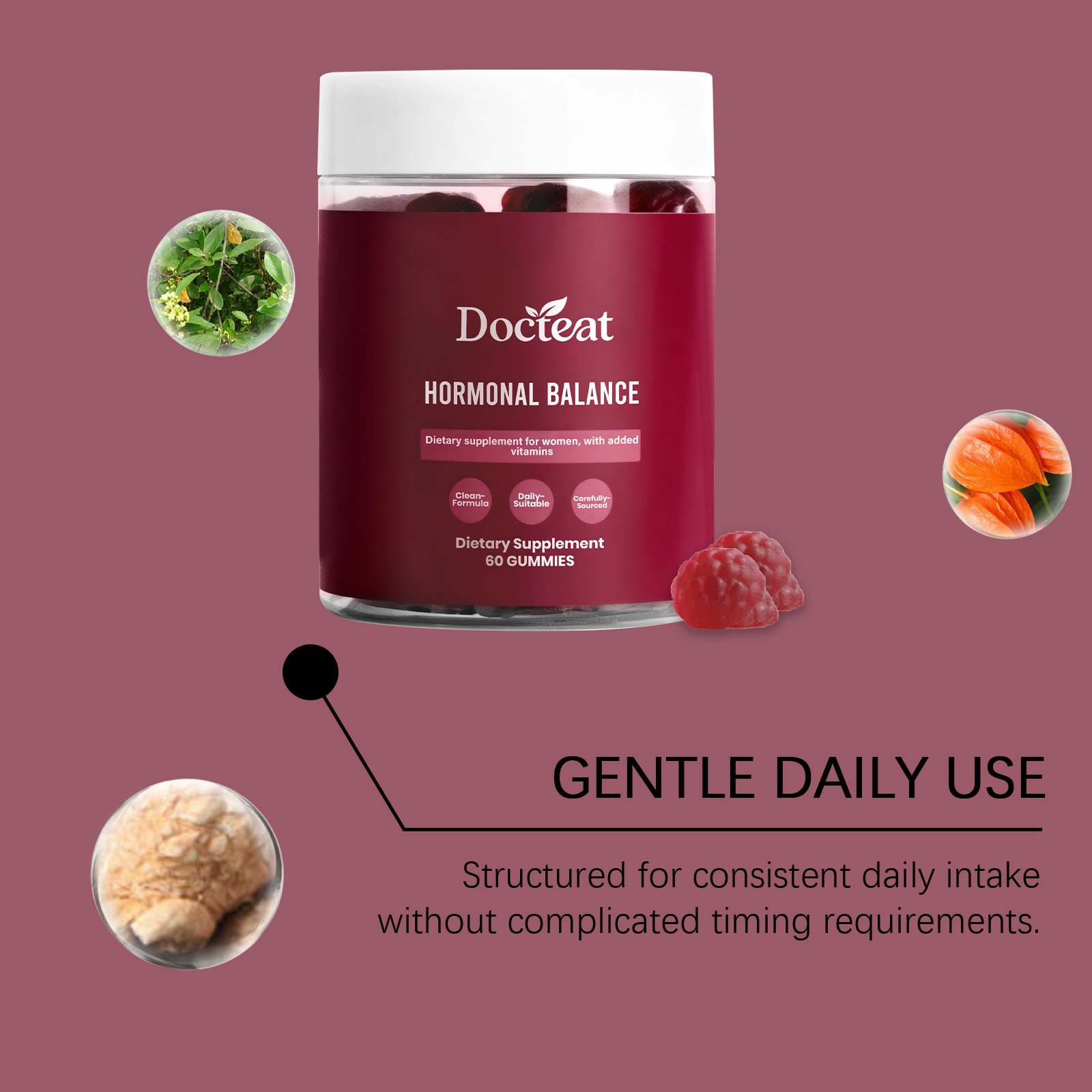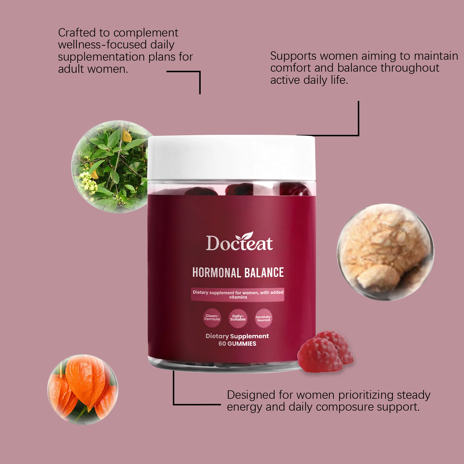 Docteat Women's Balance Support Gummy, A Daily Supplement For Balancing Internal Stress And Boosting Vitality