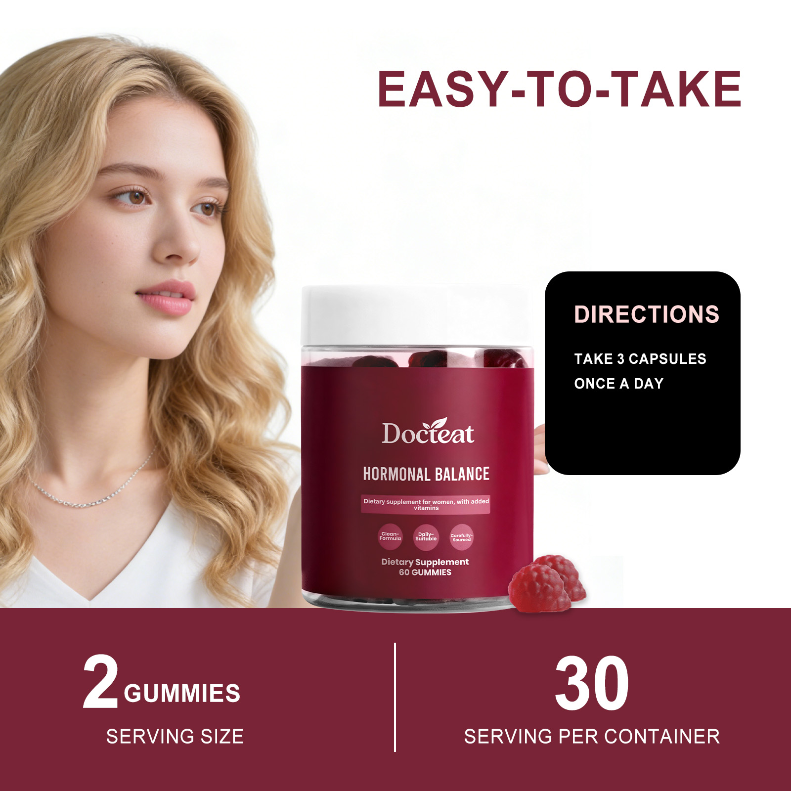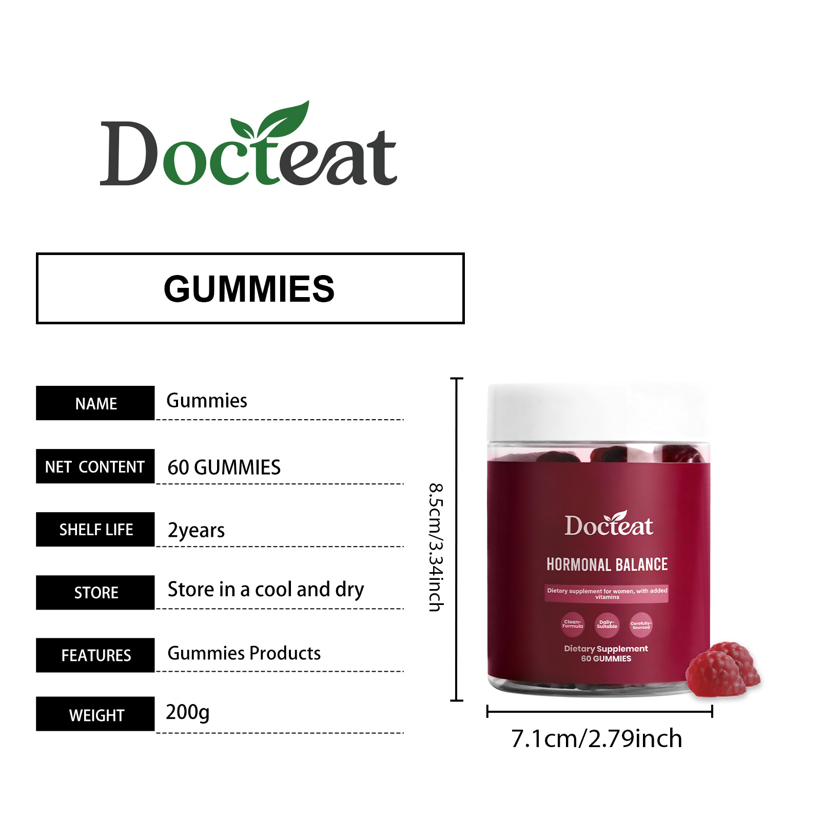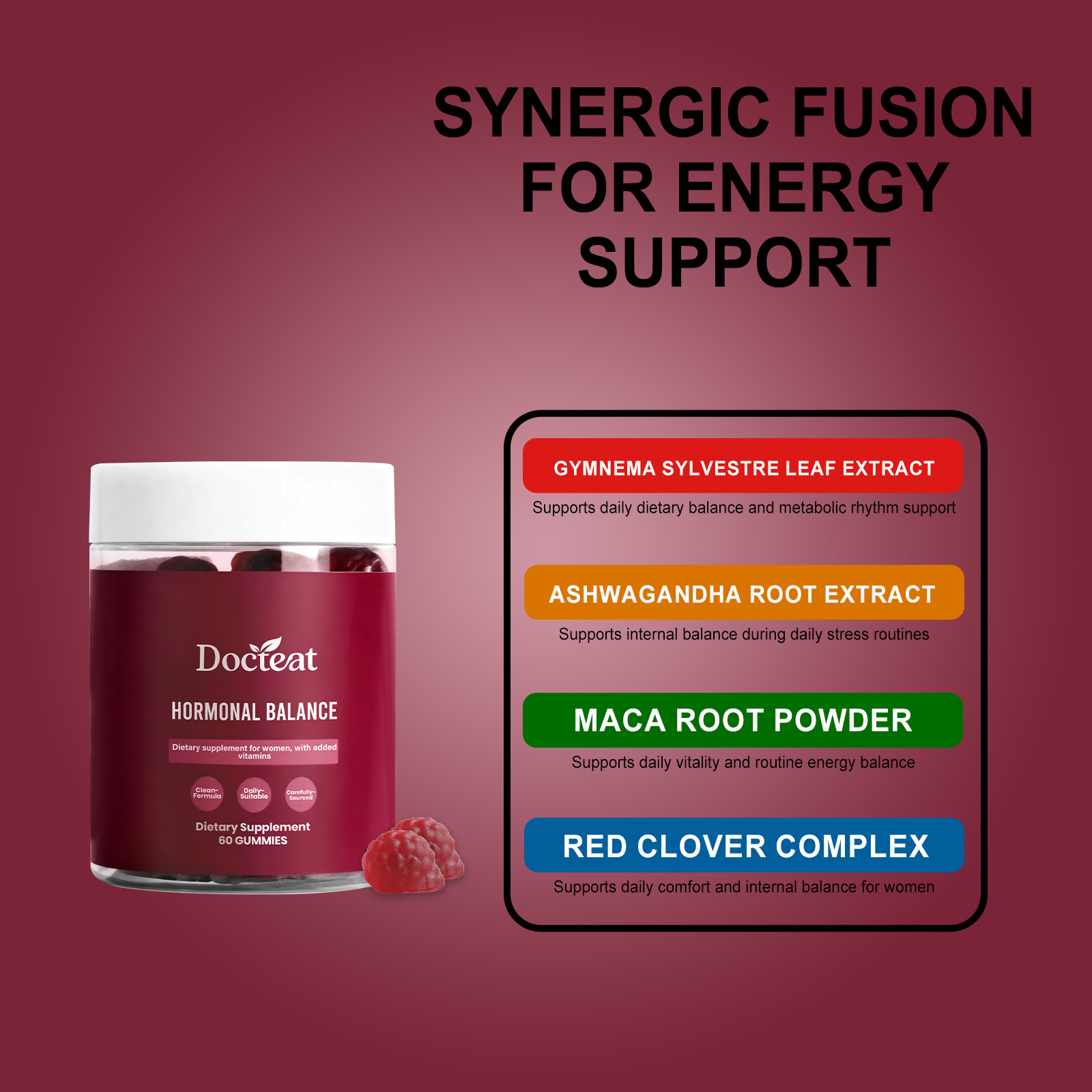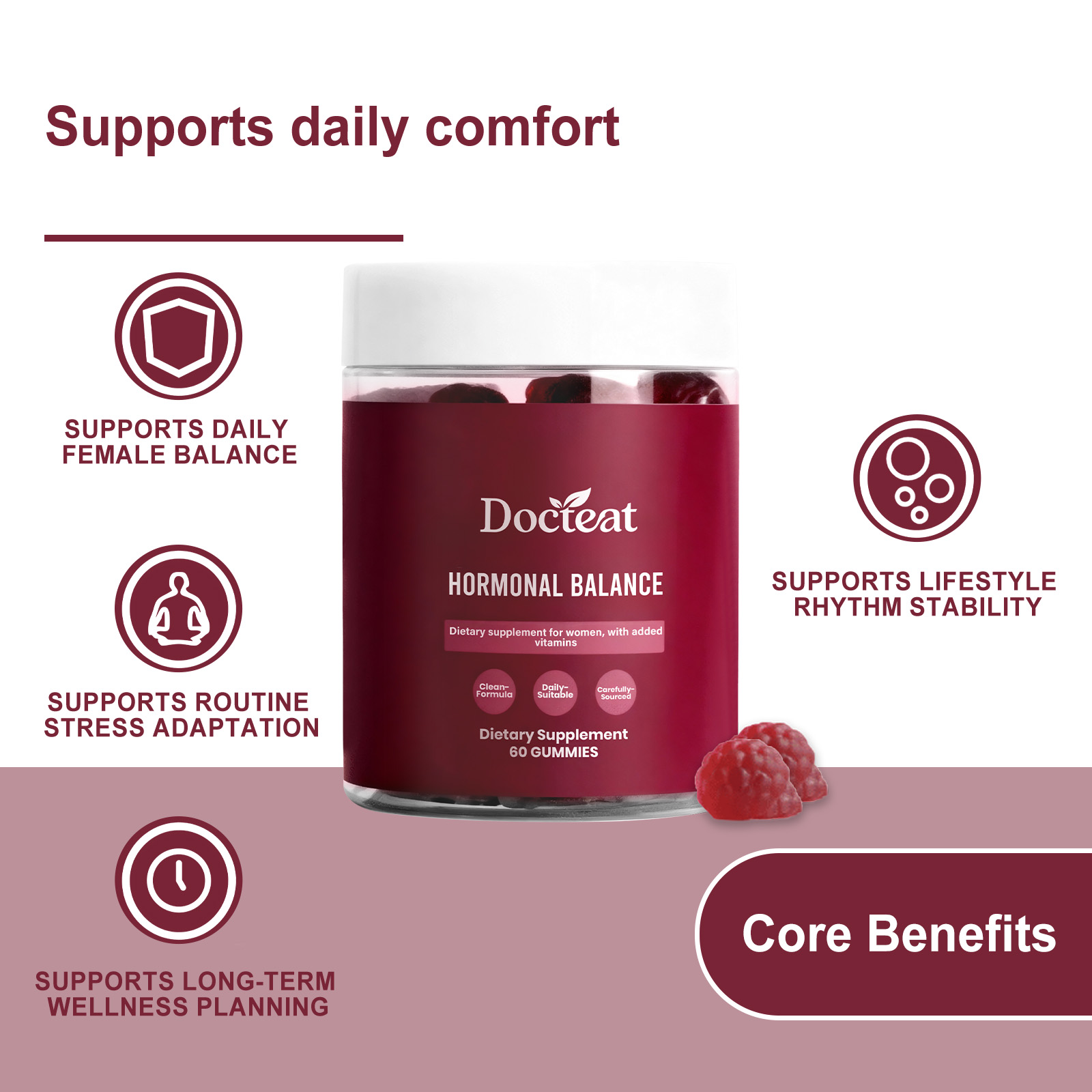 Docteat Women's Balance Support Gummy, A Daily Supplement For Balancing Internal Stress And Boosting Vitality