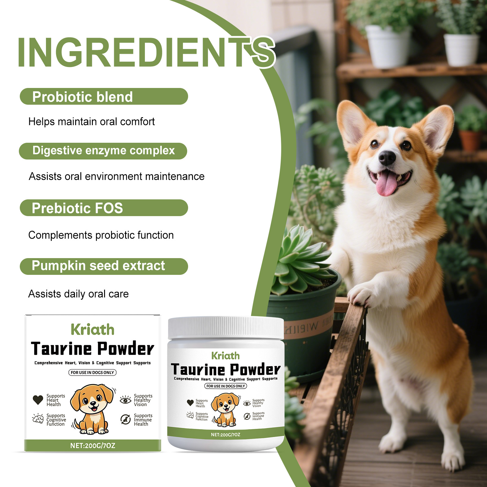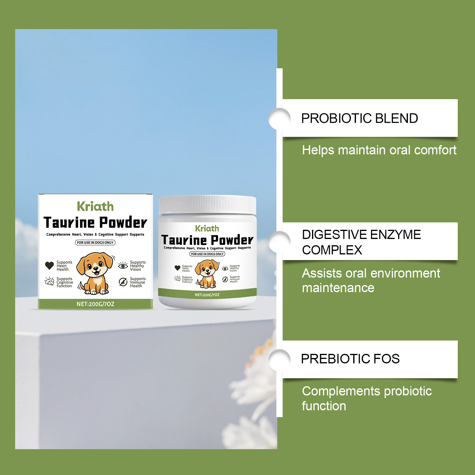Kriath Dog Food Uses Taurine Powder. The Formula Is Gentle And Helps Provide Comfortable Daily Nutrition Care For Dogs' Bodies.